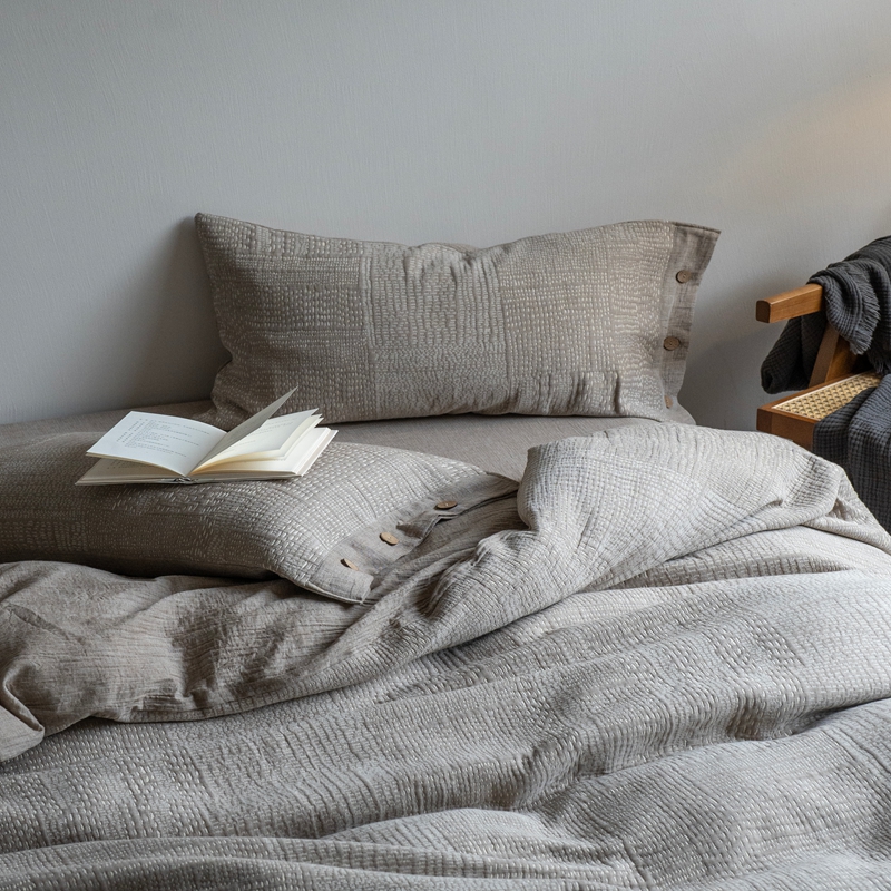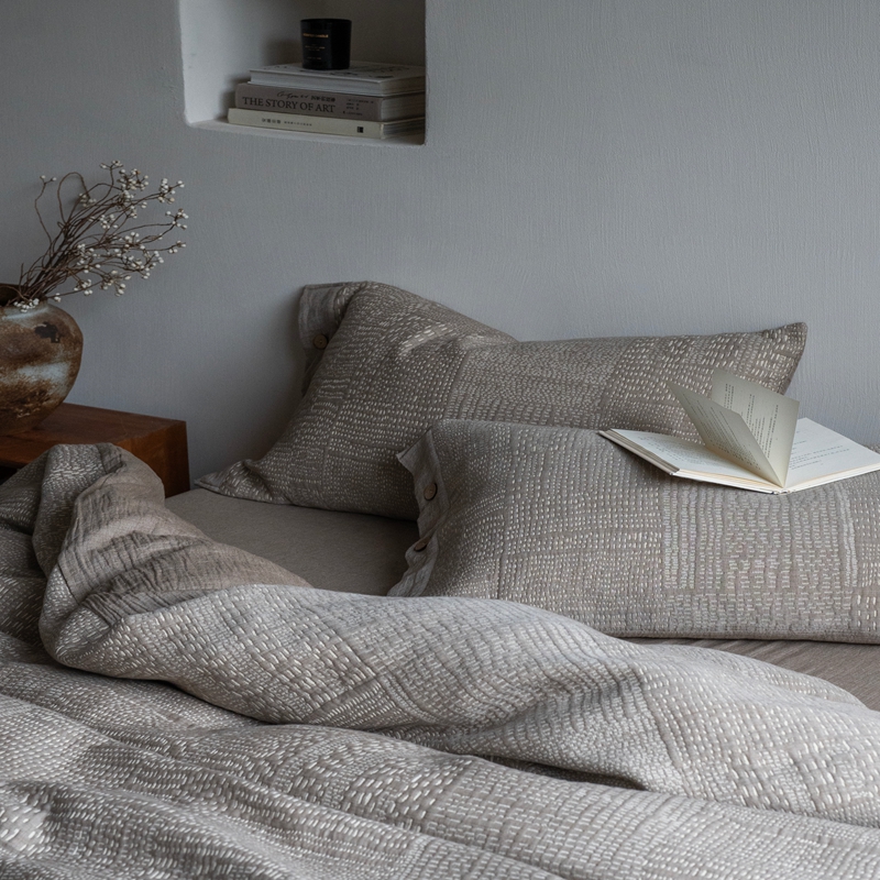 (总)璞素2025新款全棉色织三层纱床盖三件套-落雪,落雪白,落雪灰,落雪咖