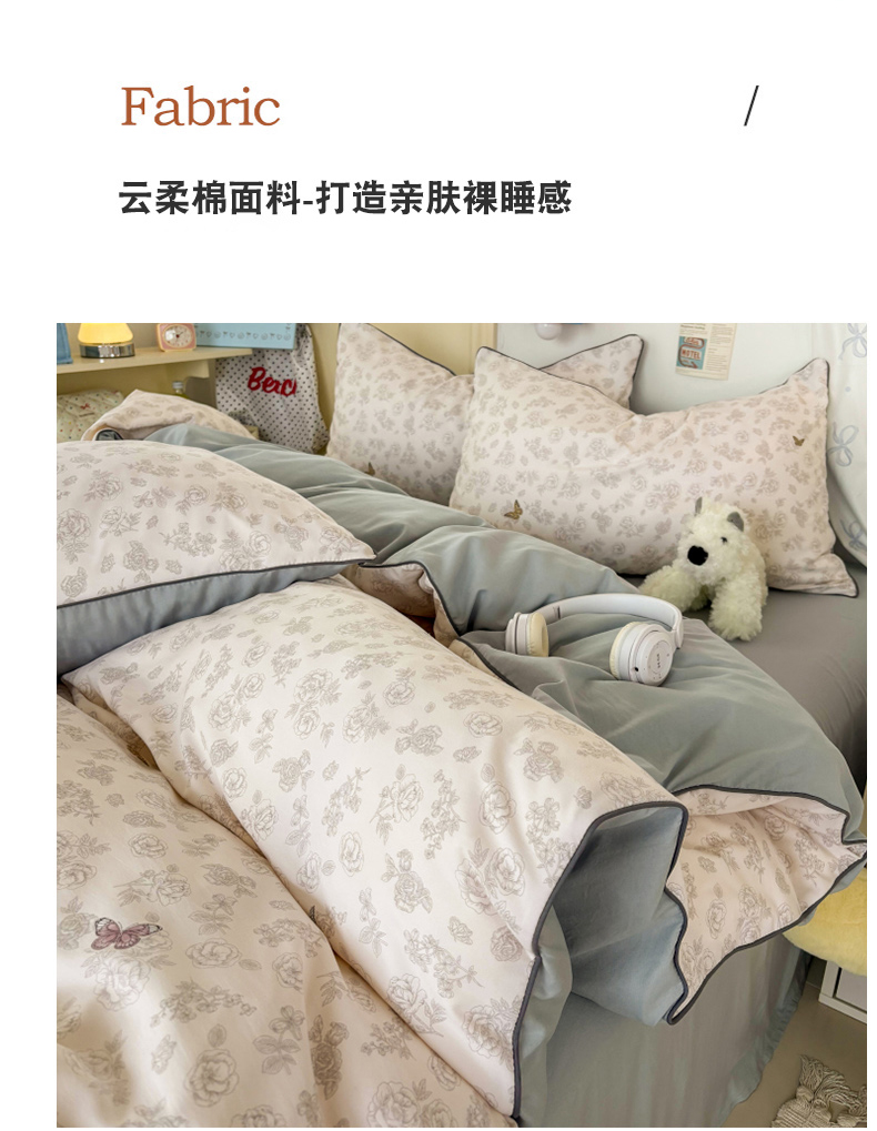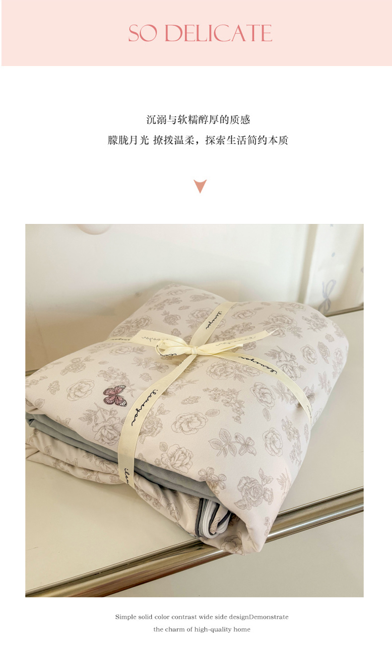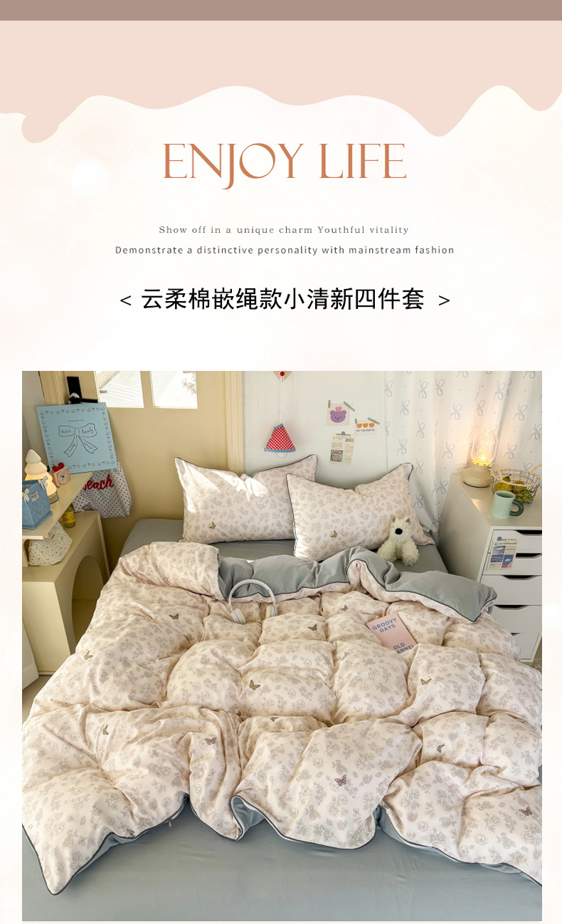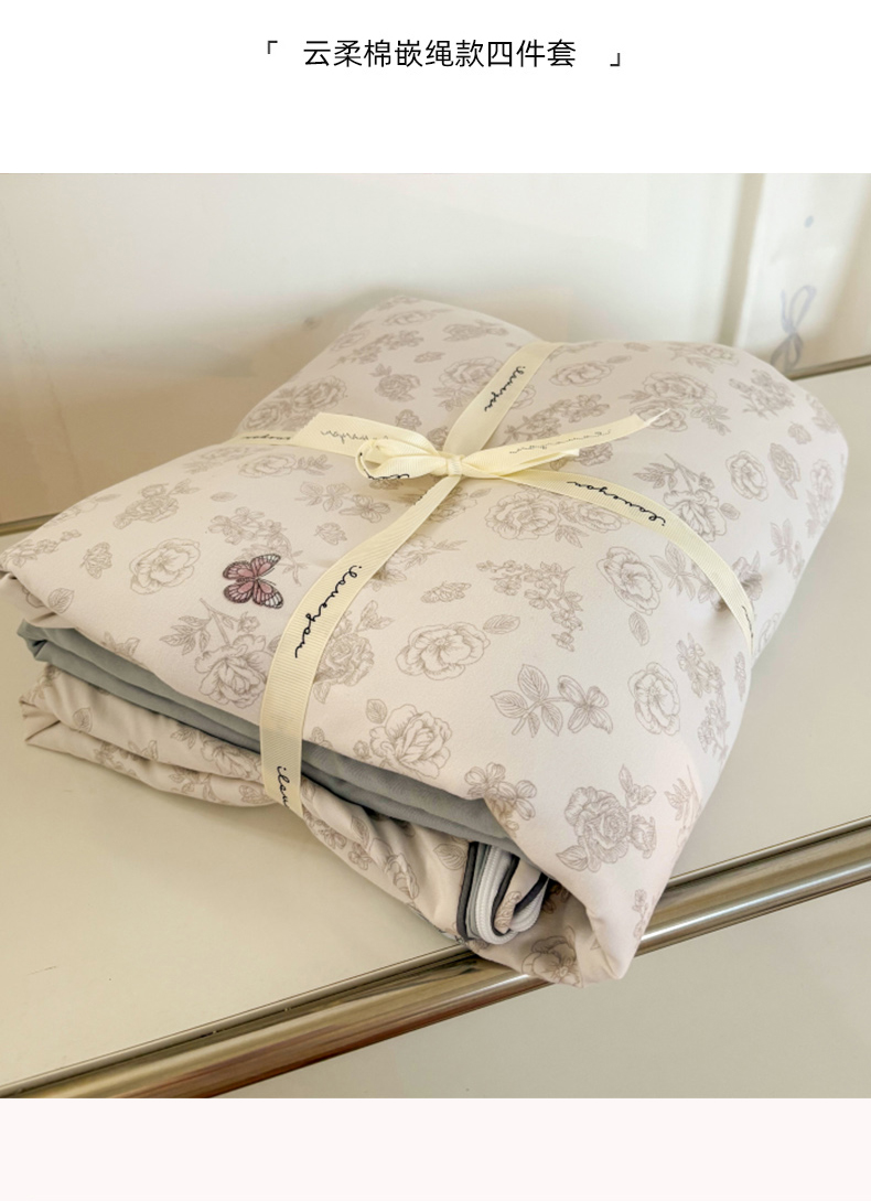 商品名称:潮邦创意家居 2025新款云柔棉立体嵌绳款小清新四件套 幻彩蝶韵