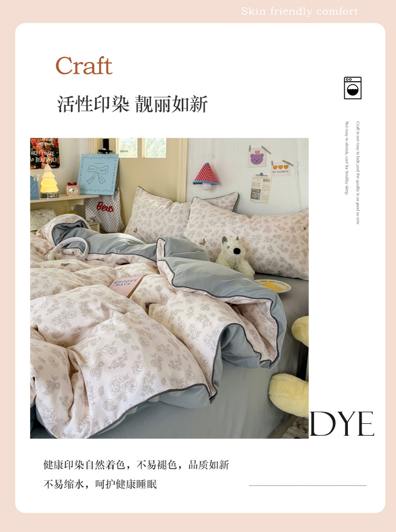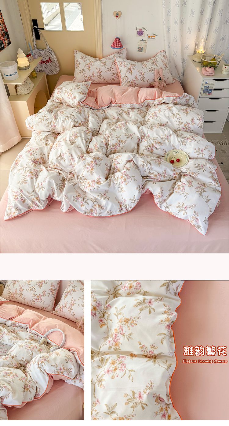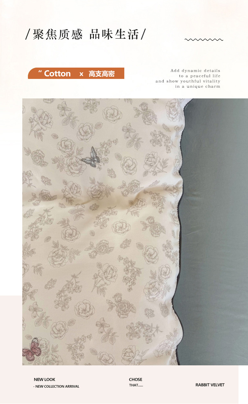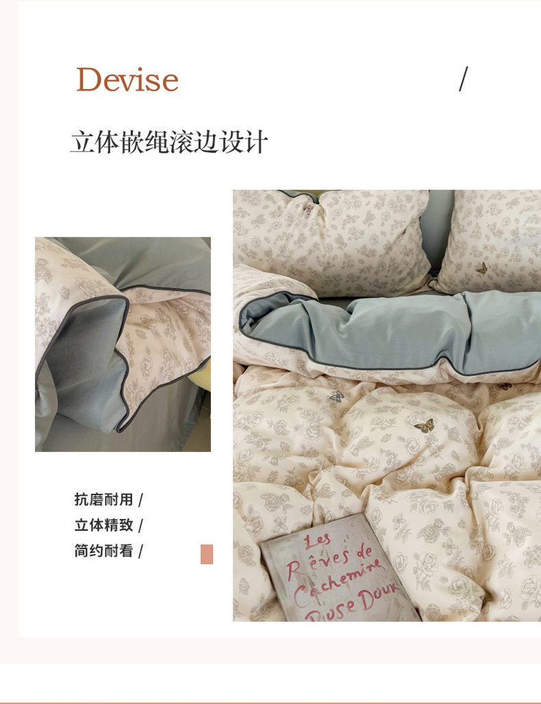 商品名称:潮邦创意家居 2025新款云柔棉立体嵌绳款小清新四件套 幻彩蝶韵