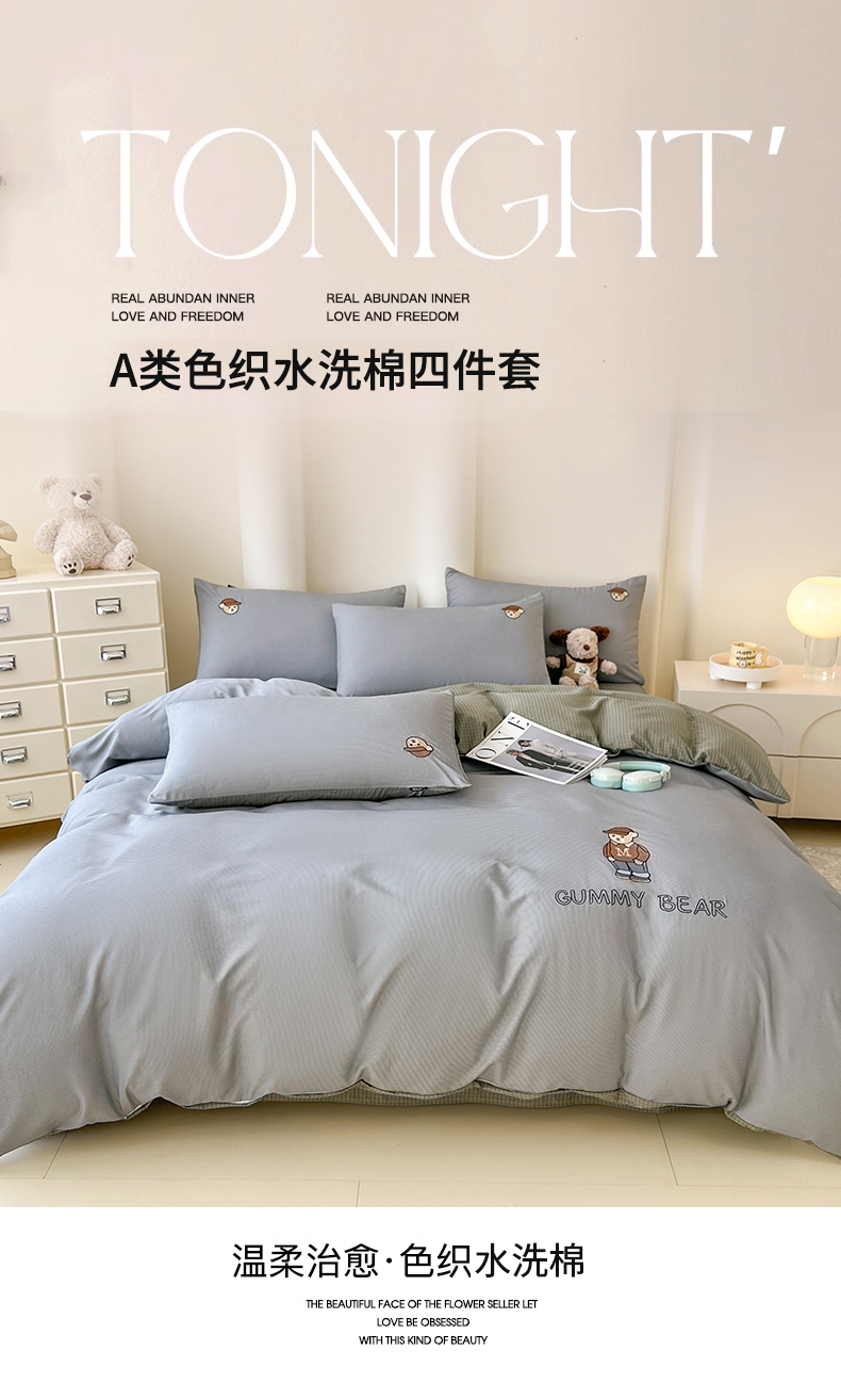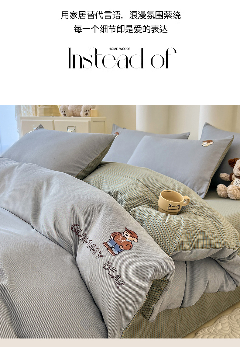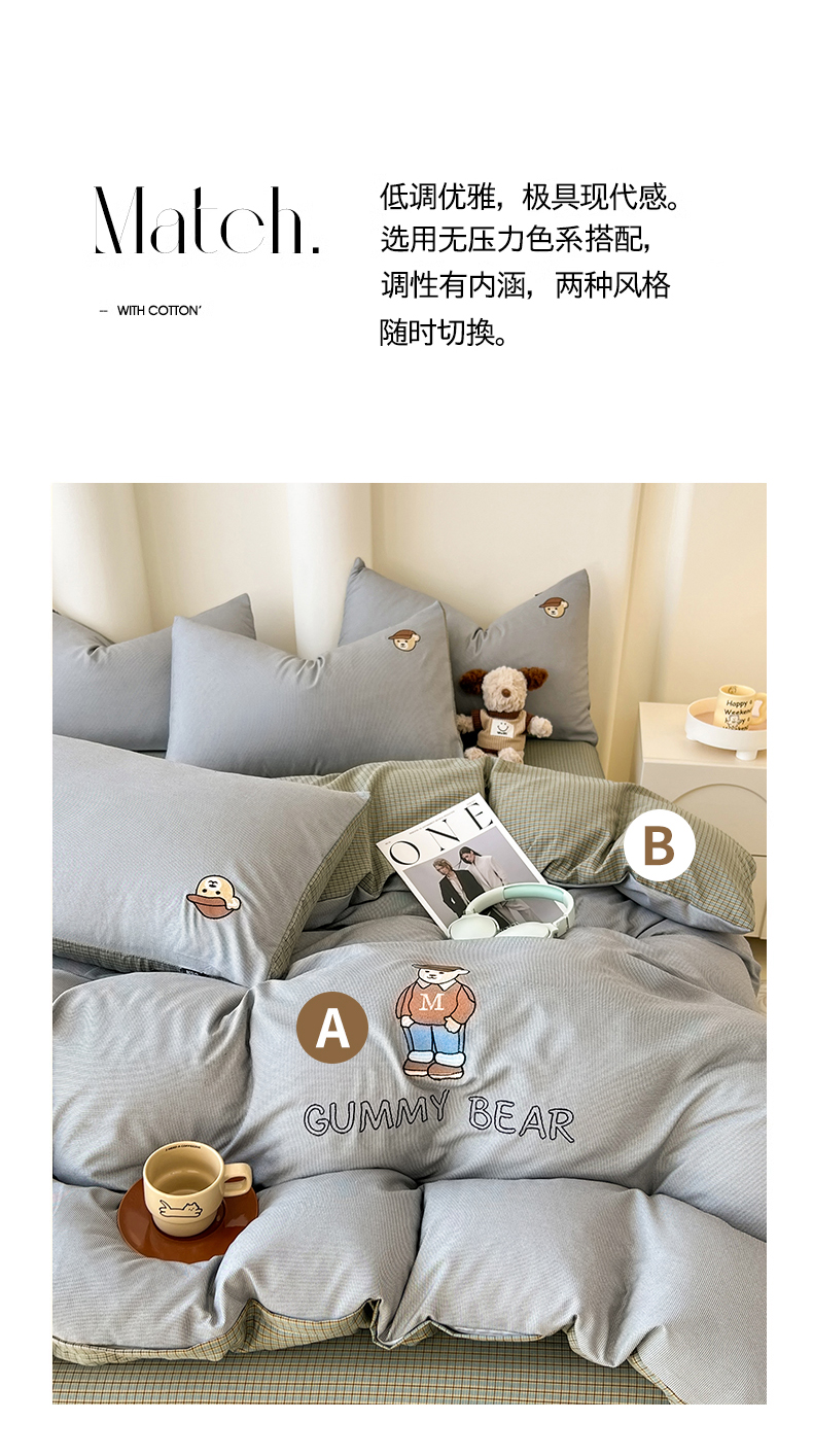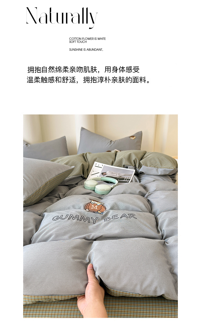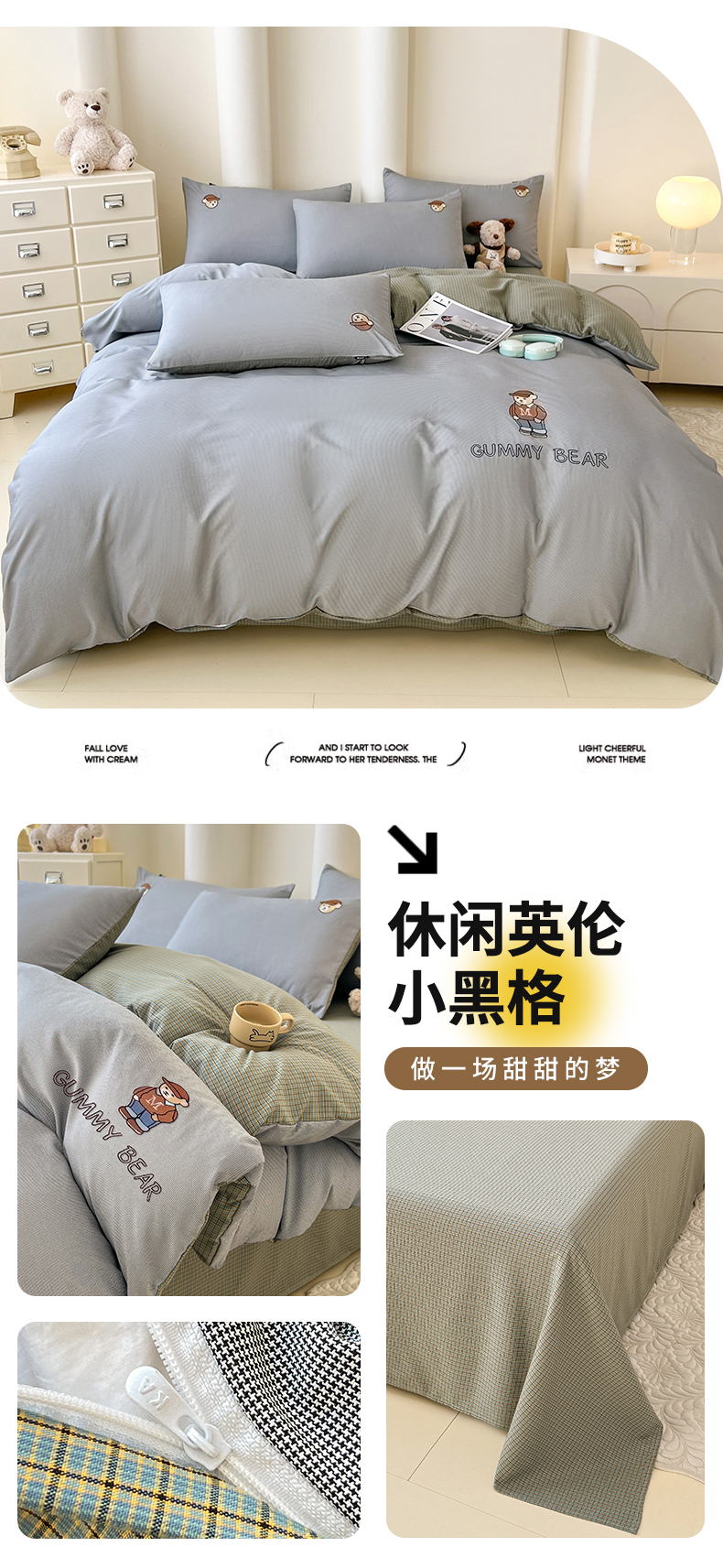 商品名称:KA家纺 春夏新款A类色织水洗棉四件套 休闲英伦小黑格