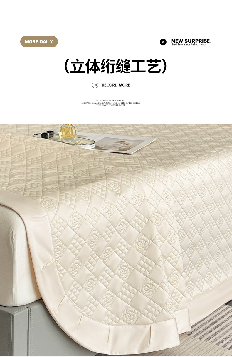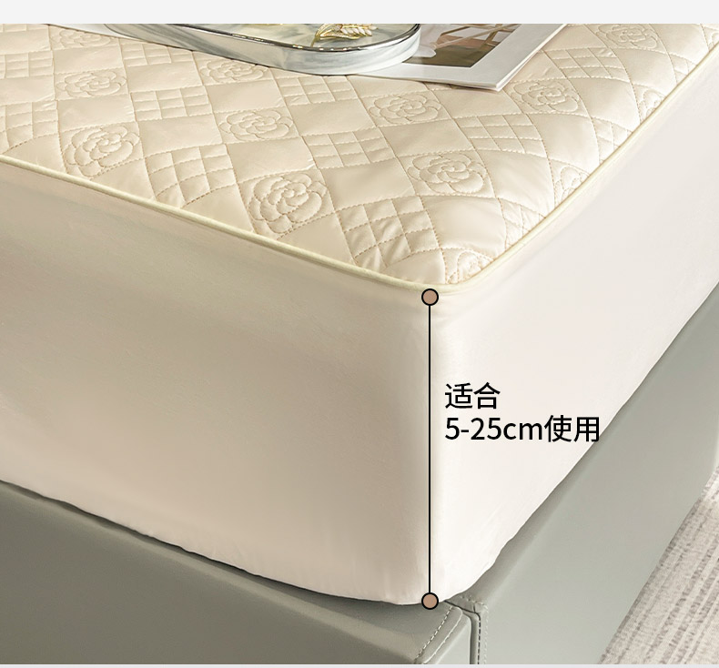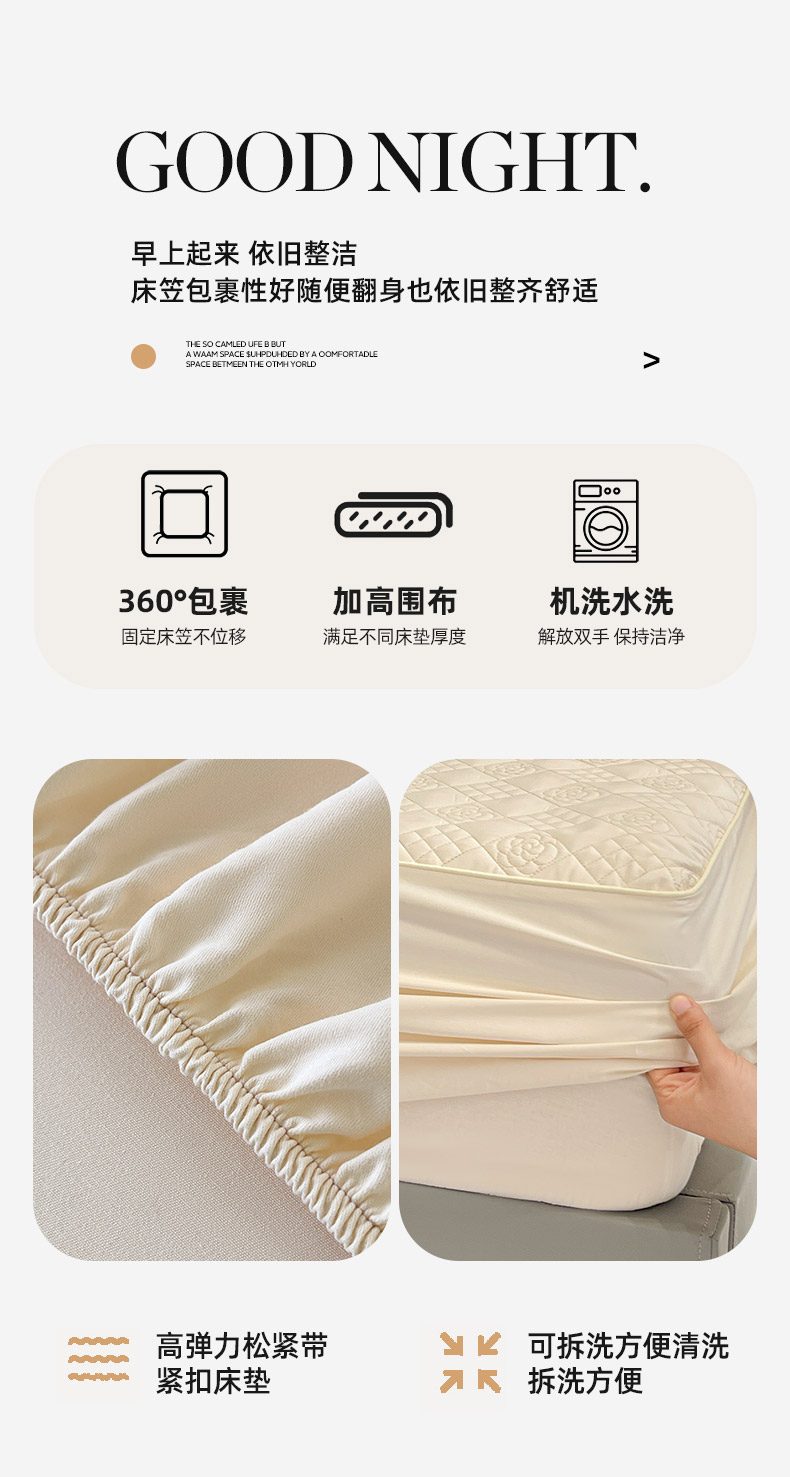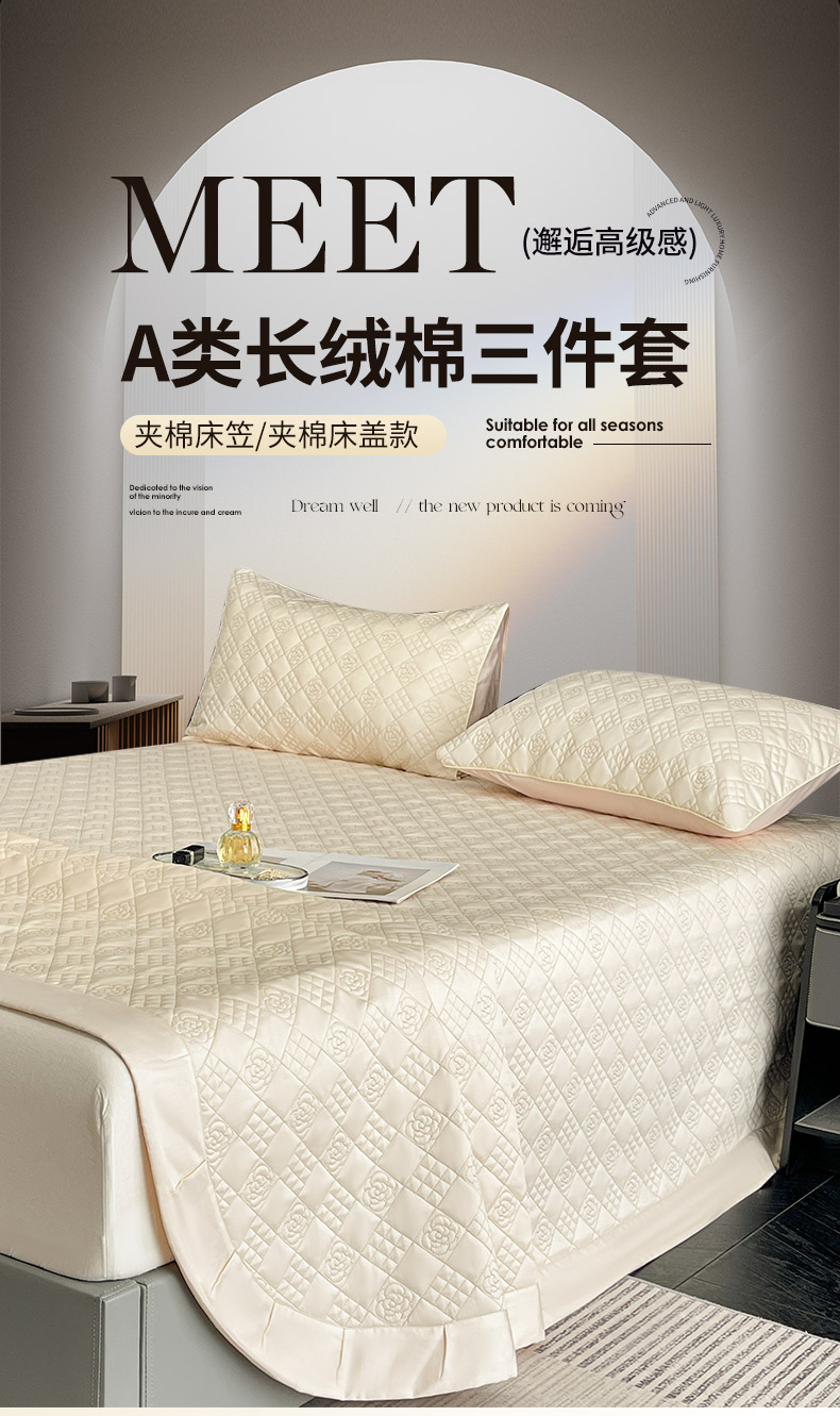 商品名称:2025新款轻奢风A类长绒棉夹棉床盖床笠三件套纯色绗绣四季高级感纯色全棉纯棉床上用品 奶玉