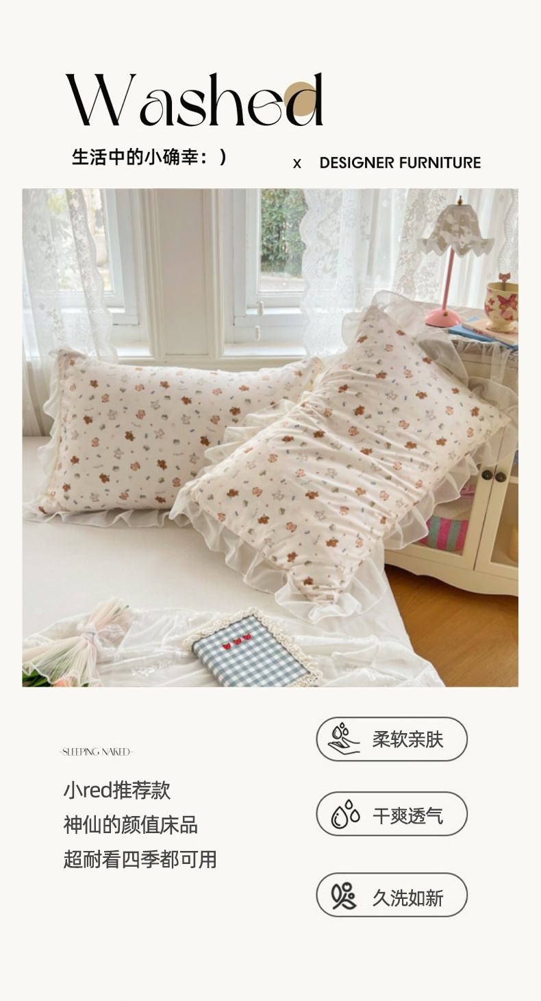 (总)圣比熊 2025新款云感双层纱花边枕套宿舍学生48x74一对枕芯内胆套,小皇冠,遇见浪漫,朝花夕拾,春日初见,繁花入梦,浮生若梦,花田小兔,梦境灰,倾城之恋,甜心小狗,夏日蓝,紫薇花园