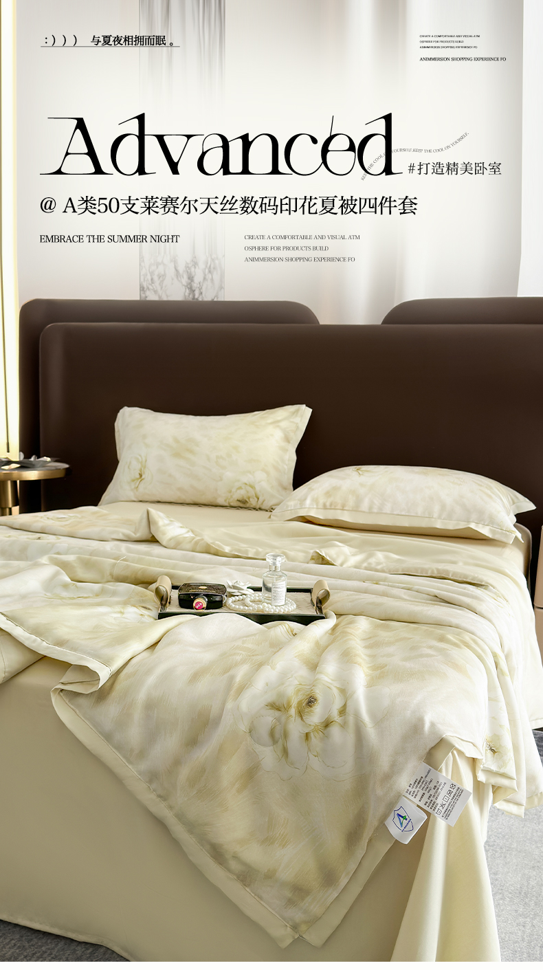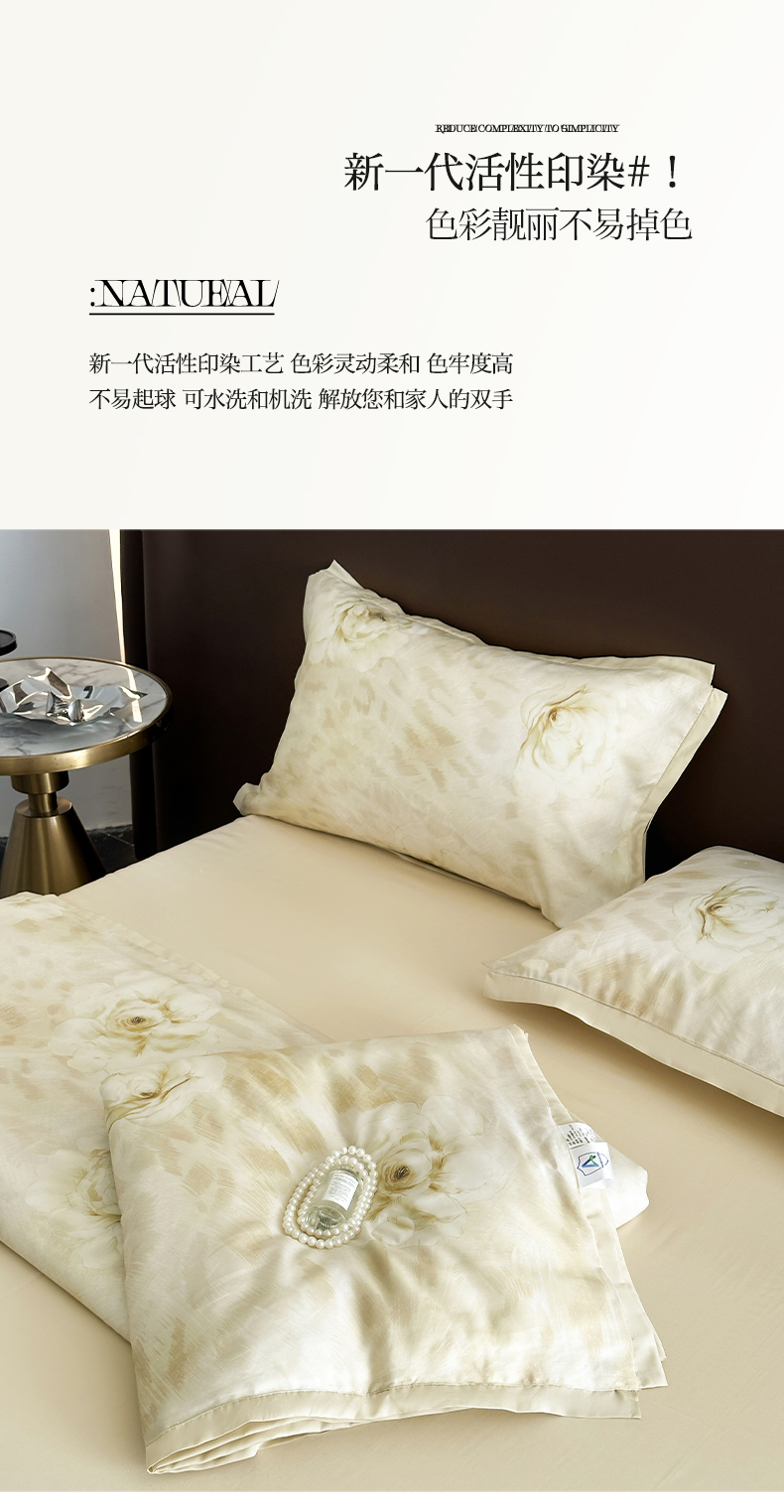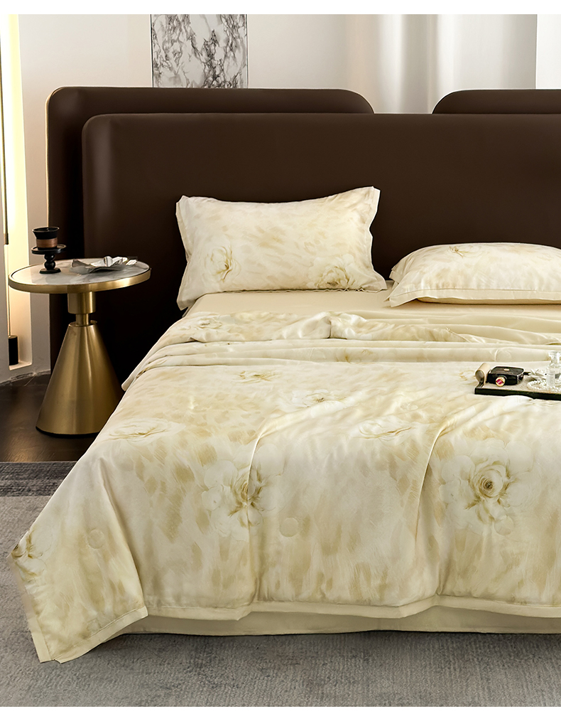 当前位置: 91家纺网 > 商品网购 > 床品套件 > 四件套 > 夏被四件套 > 莱登卡奴 25新款A类50支100%莱赛尔天丝数码印花夏被四件套 豹纹诱惑椰奶