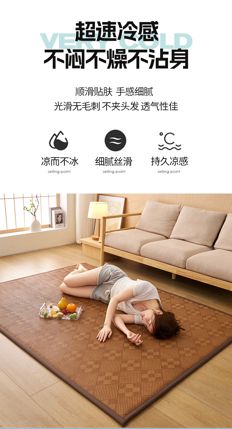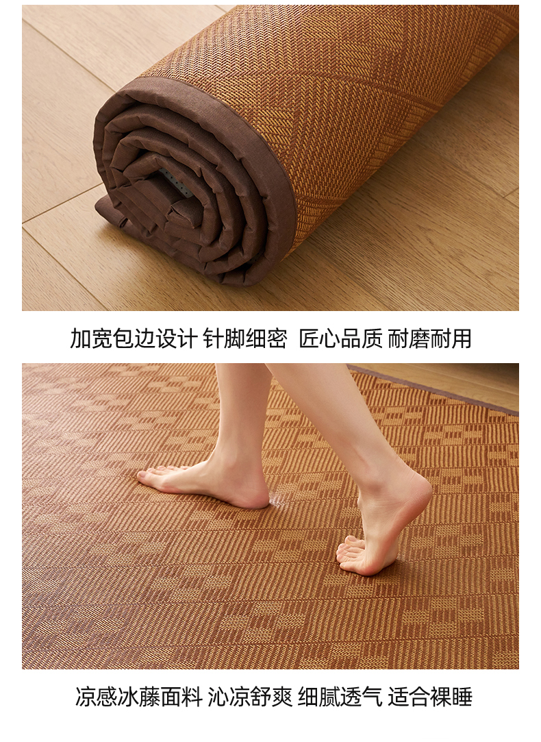 • 91家纺网 家纺一手货源 找家纺 艺博床垫 2025新款竹藤席地垫 九宫格-棕