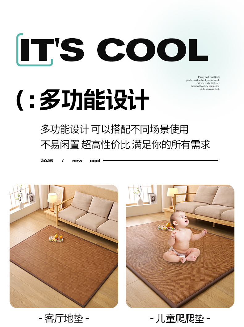 (总)艺博床垫 2025新款竹藤席地垫,饼干花-绿,饼干花-棕,九宫格-棕,玉米格-咖,玉米格-棕