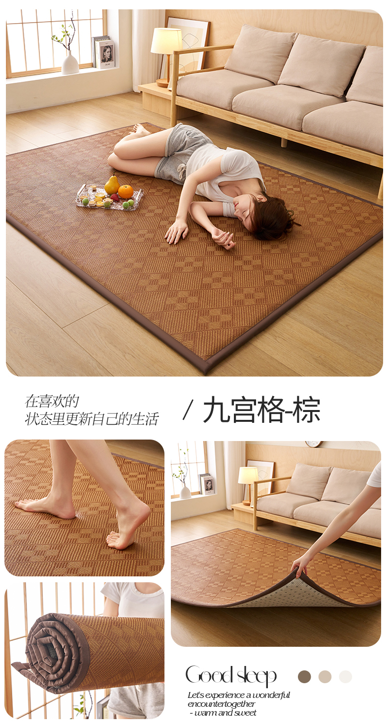 艺博床垫 2025新款竹藤席地垫 九宫格-棕