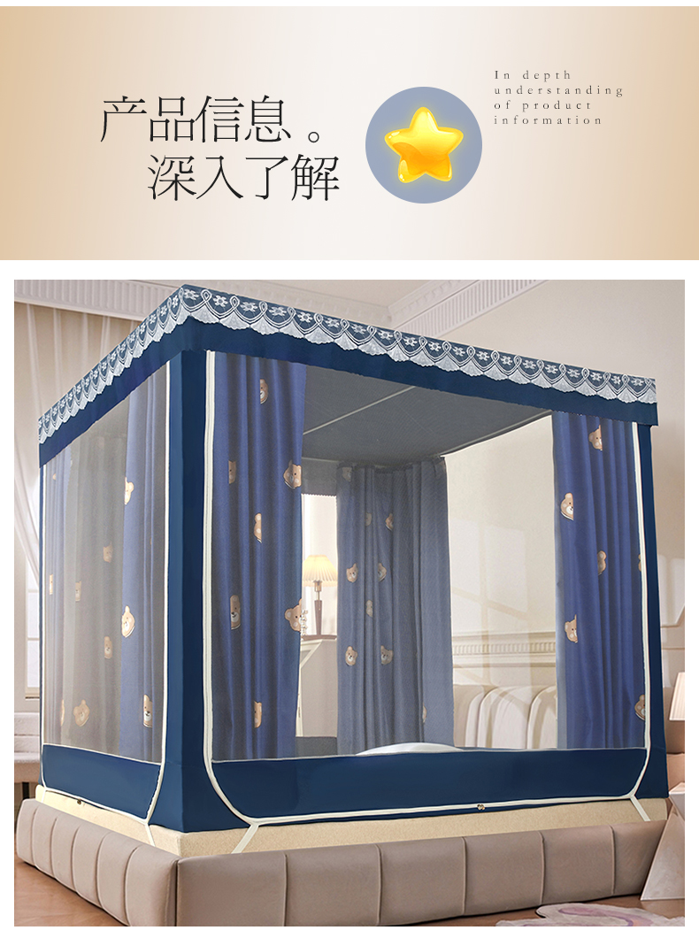商品名称:显高蚊帐 2025新款U型坐床遮光防尘床帘式蚊帐 小熊维尼