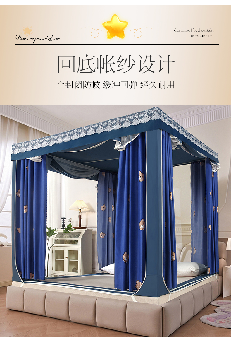 显高蚊帐2025新款坐床遮光防尘床帘式蚊帐-回底全低(全花型) 1.8*2.2,兔宝贝,北欧森林,春花集,蜜粉,星空,星愿,蓝花兔,爱心小兔