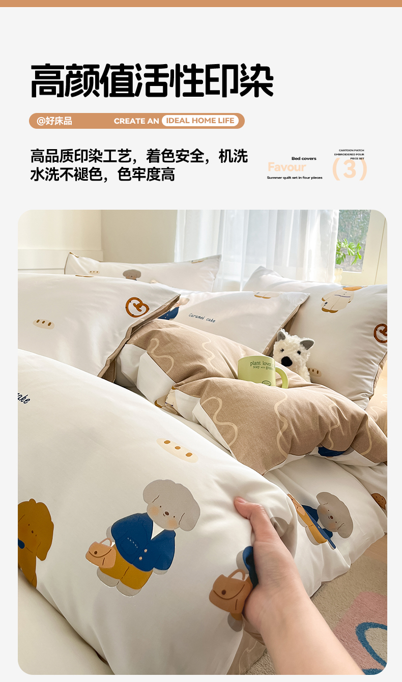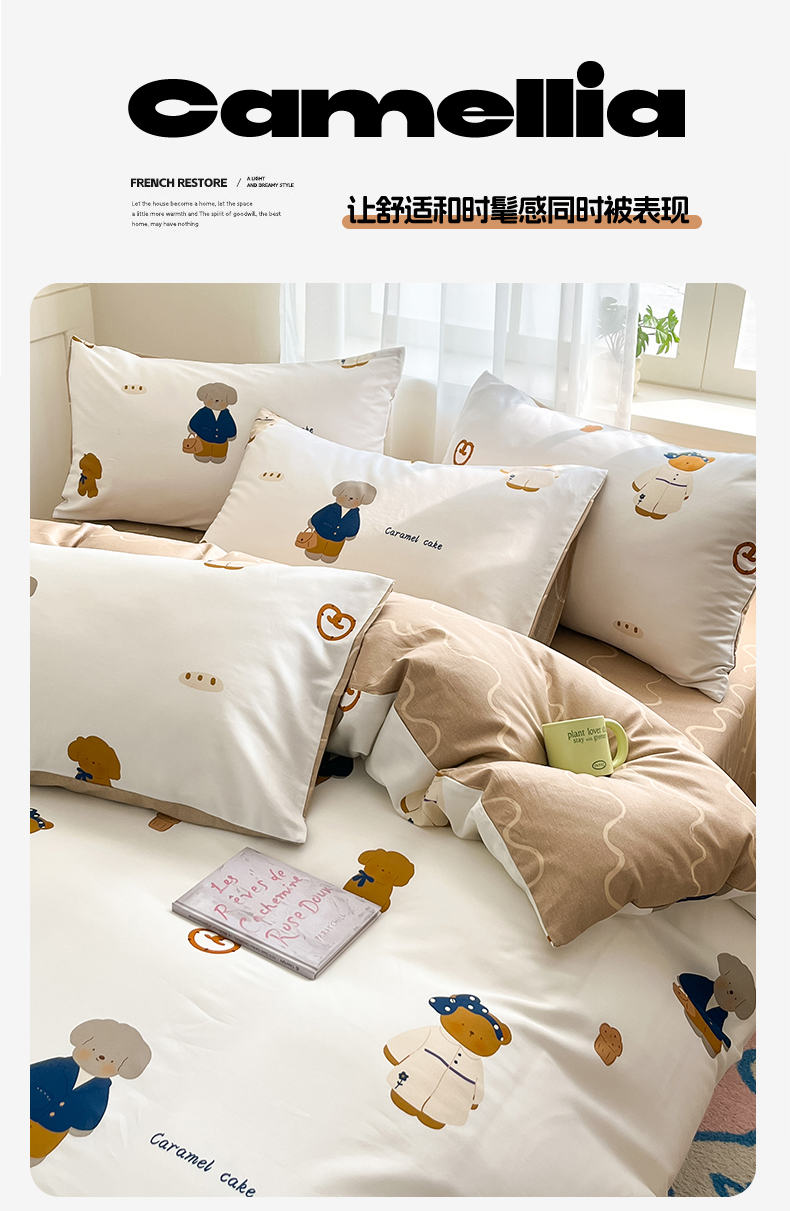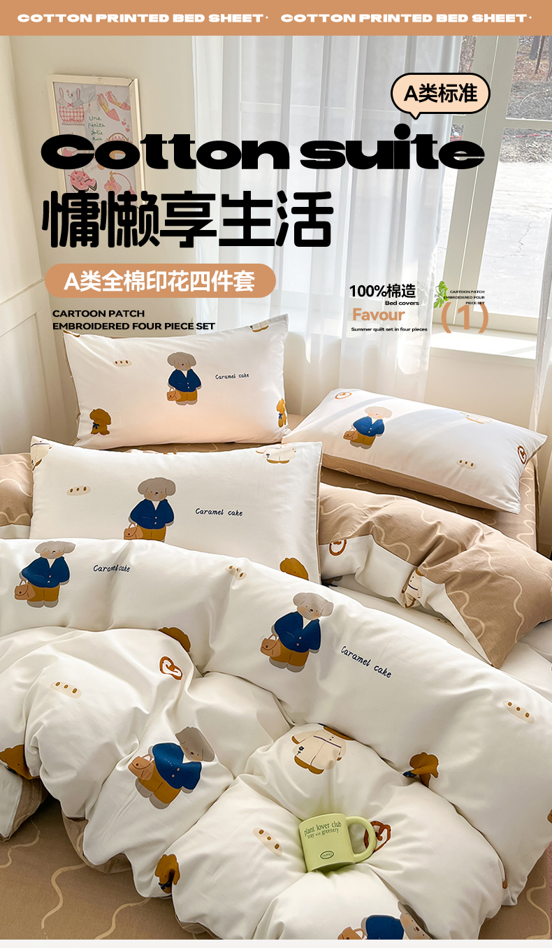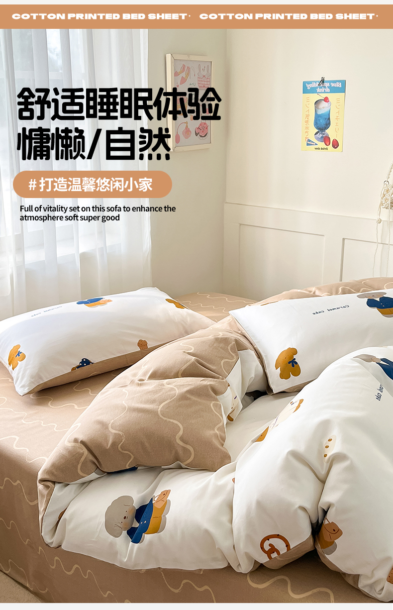 本制 2025新款12868全棉印花四件套 卡布奇诺