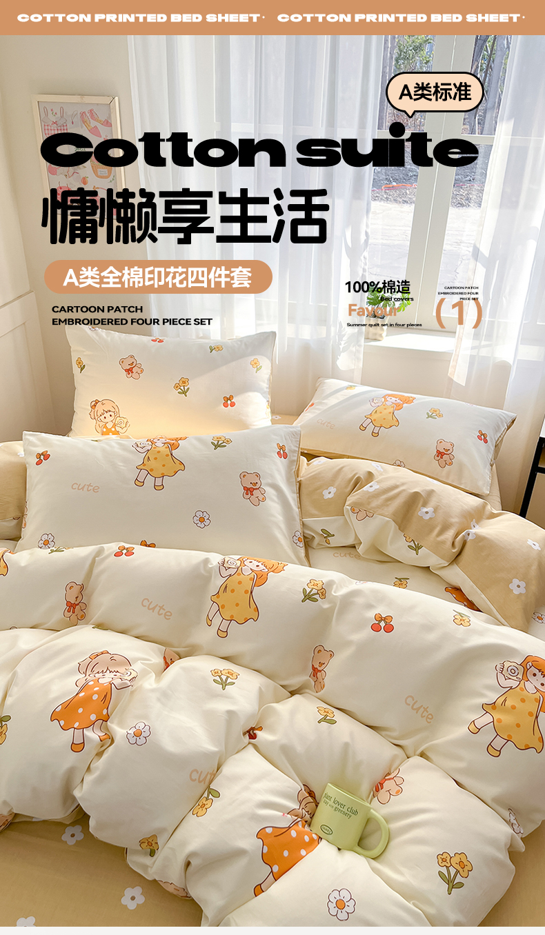 本制 2025新款12868全棉印花四件套 休闲假日