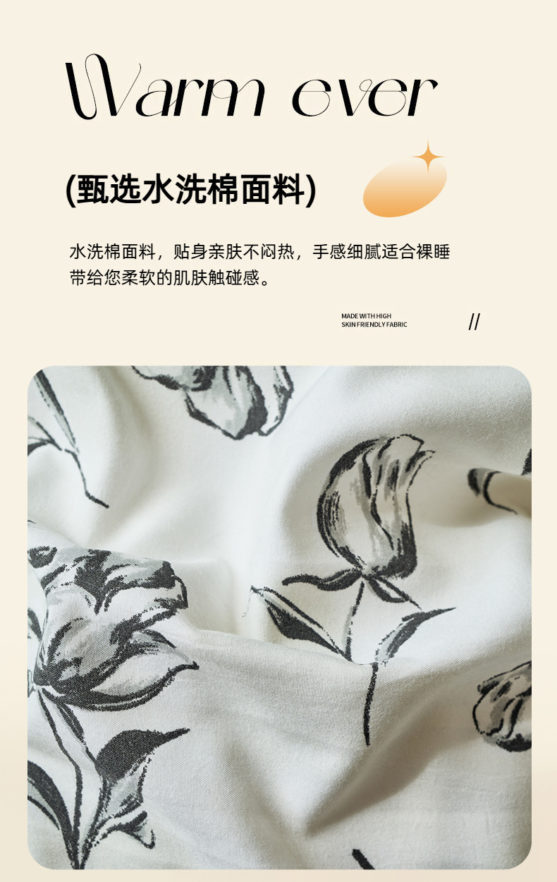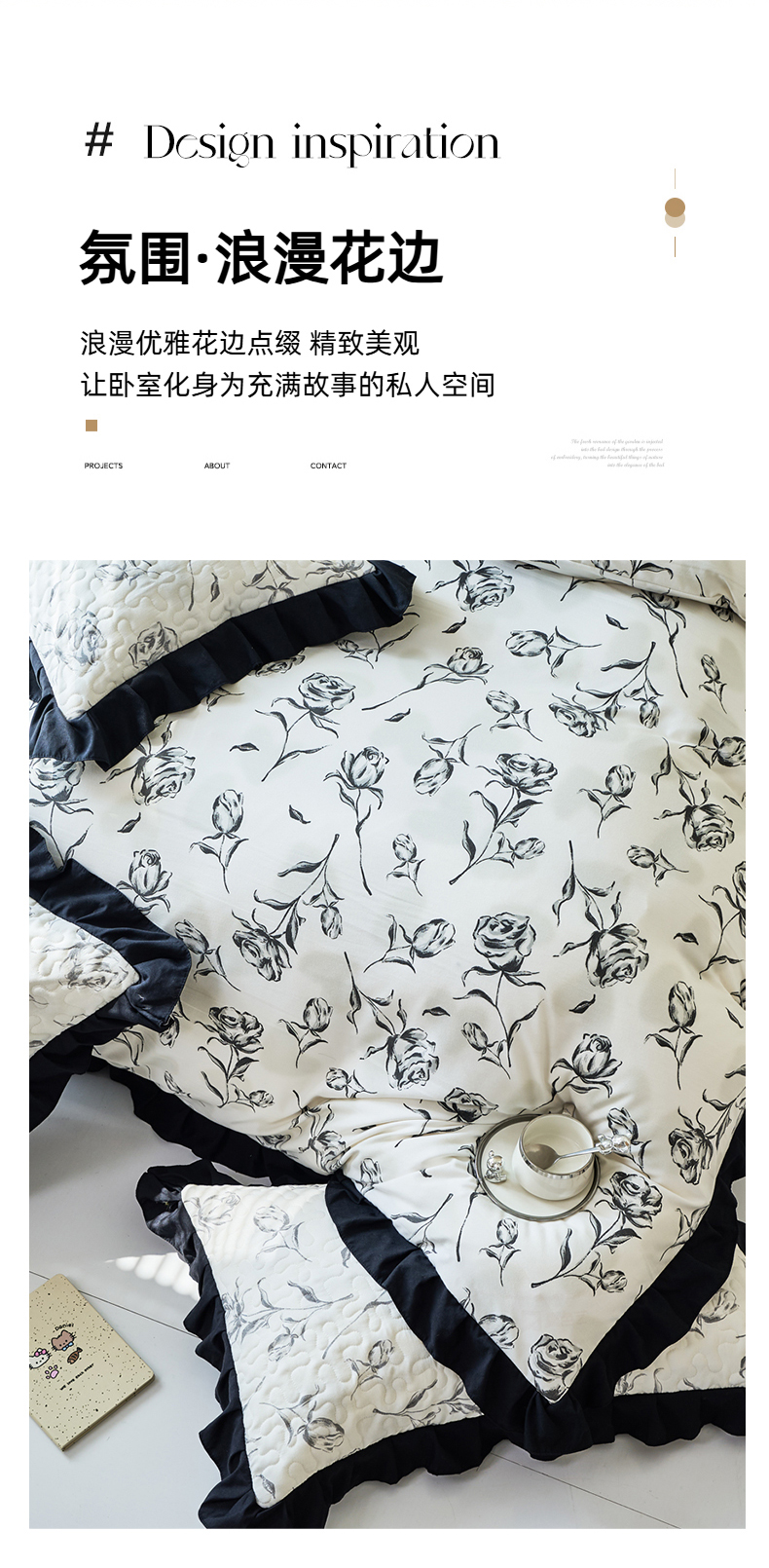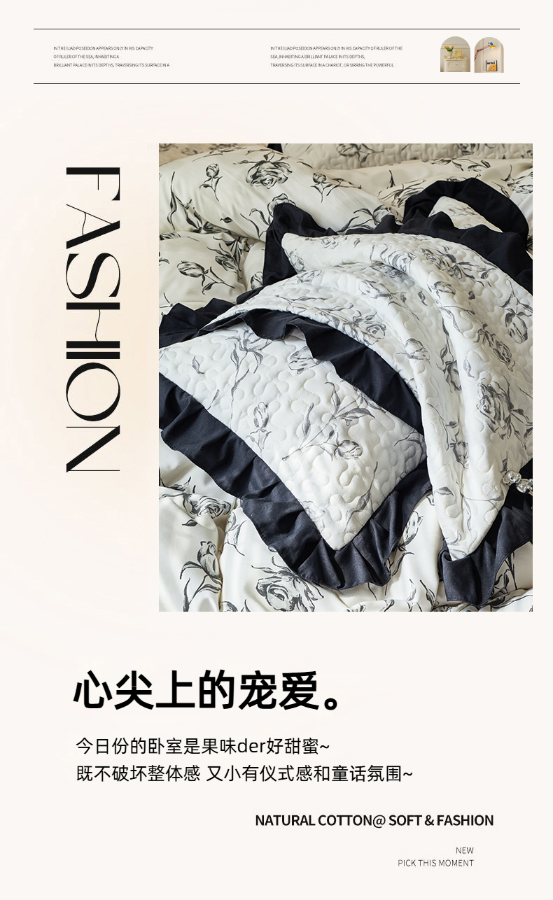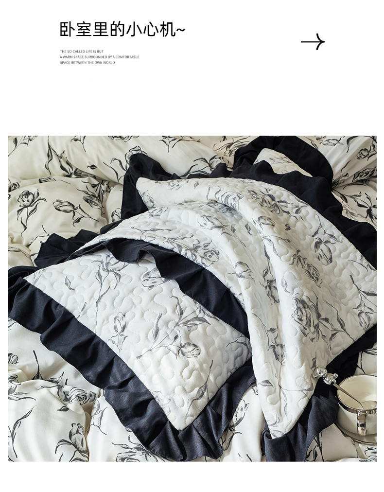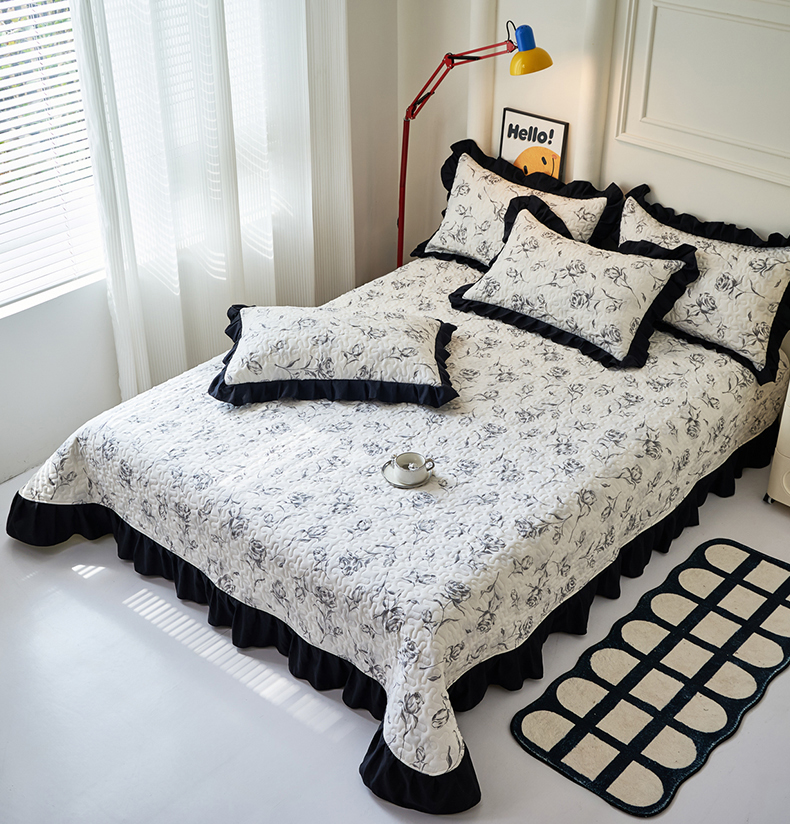 商品名称:蝶帕家纺 2025新款法式赫本风韩版花边水洗棉床盖四件套 水墨玫瑰