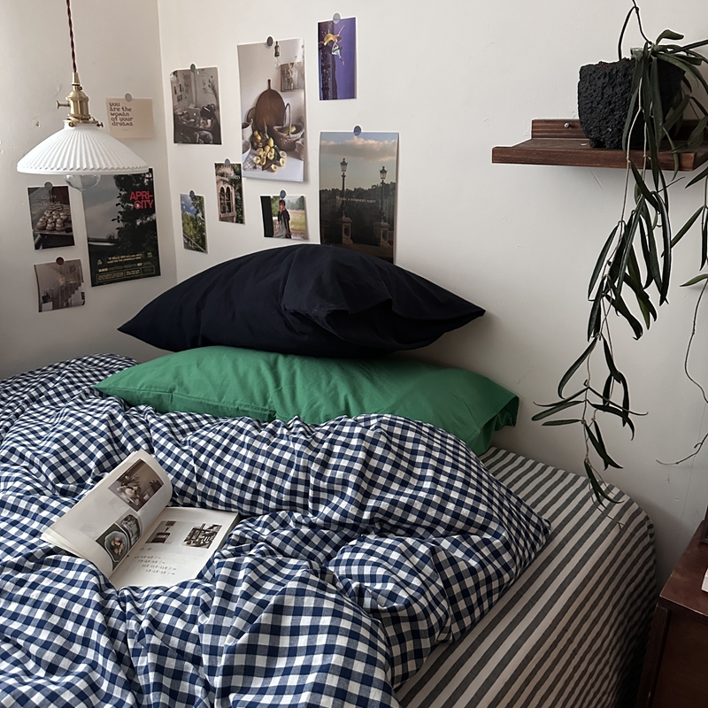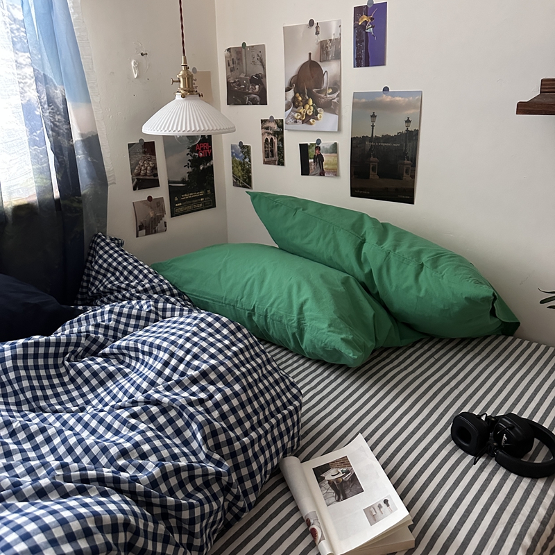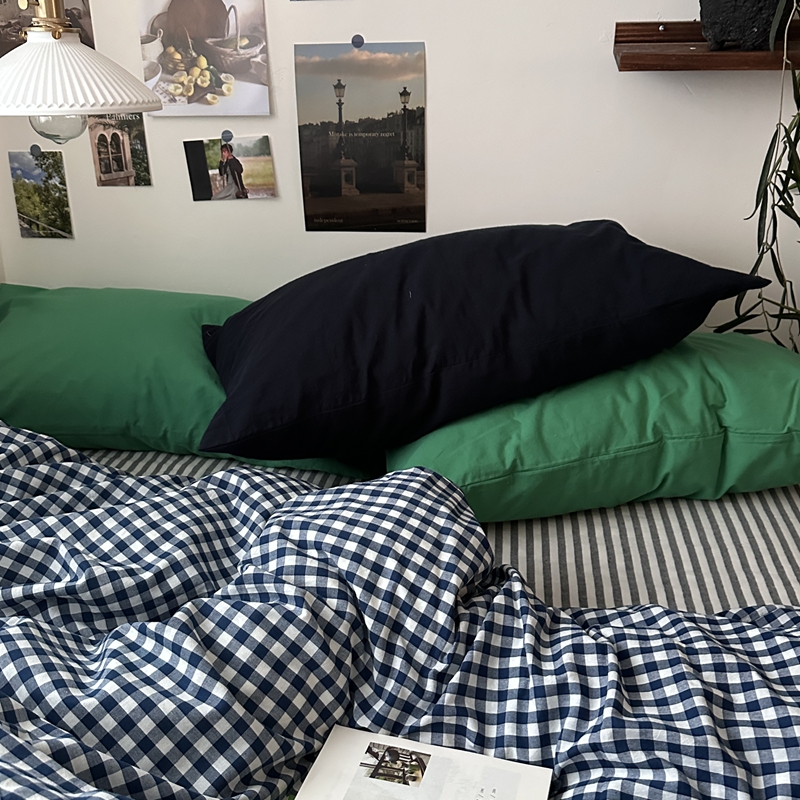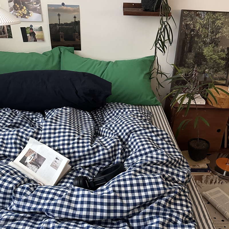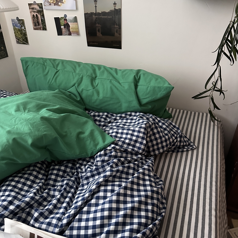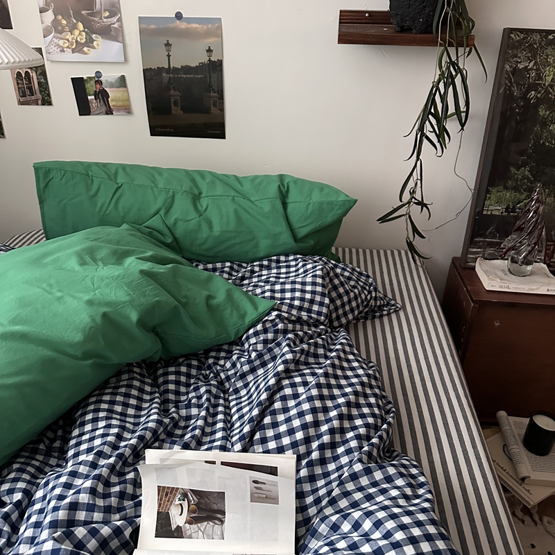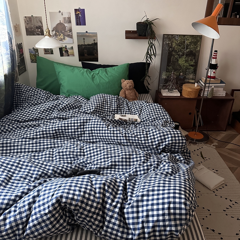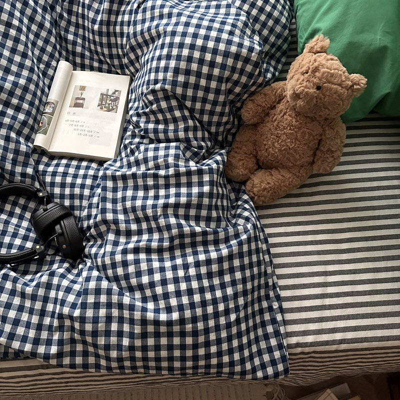 当前位置: 91家纺网 > 商品网购 > 床品套件 > 四件套 > 全棉普通四件套 > (总)恋恋三季2025新款春季全棉色织格子混搭四件套-半冷西海岸