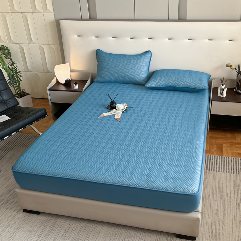 梵克保罗 2025新款凉感丝床笠凉席三件套--饼干系列 天蓝