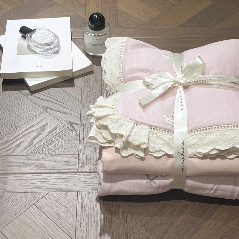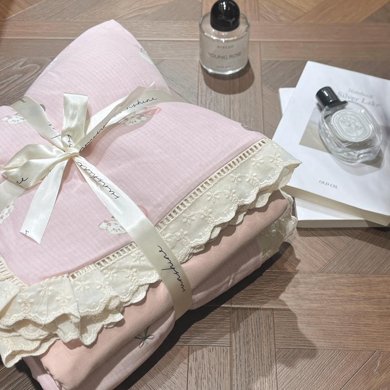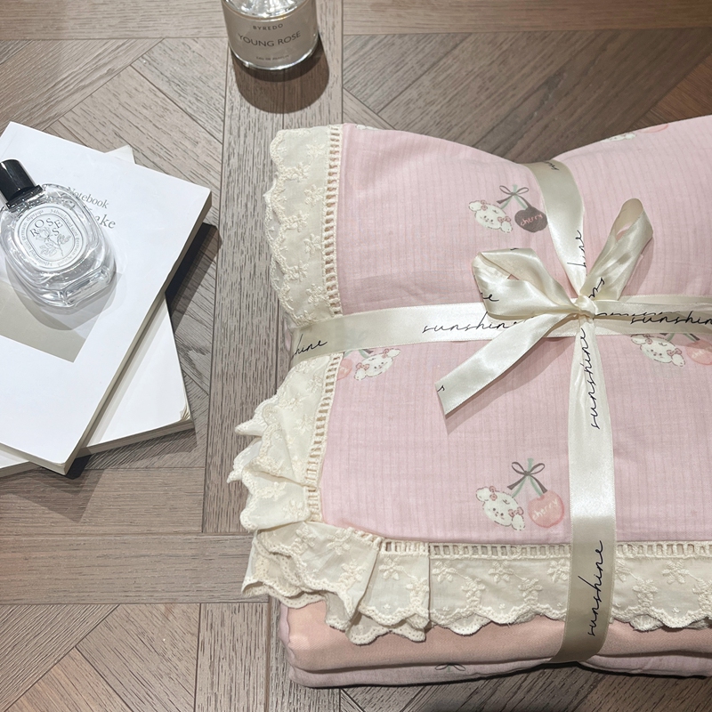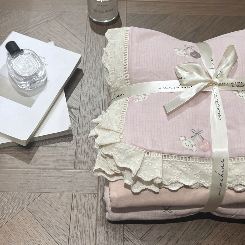 商品名称:荣轩家居 2025新款全棉双层纱镂空花边工艺款四件套蔓越桃桃