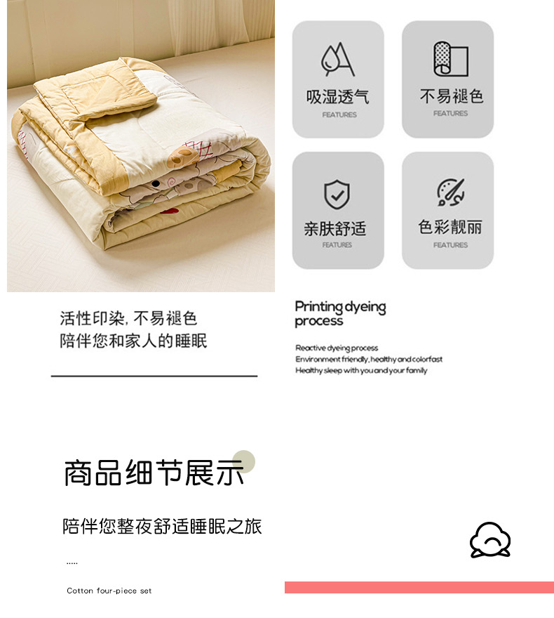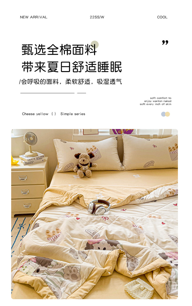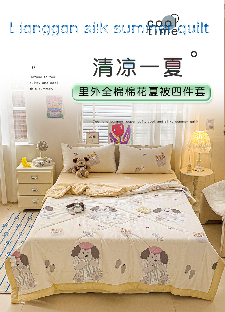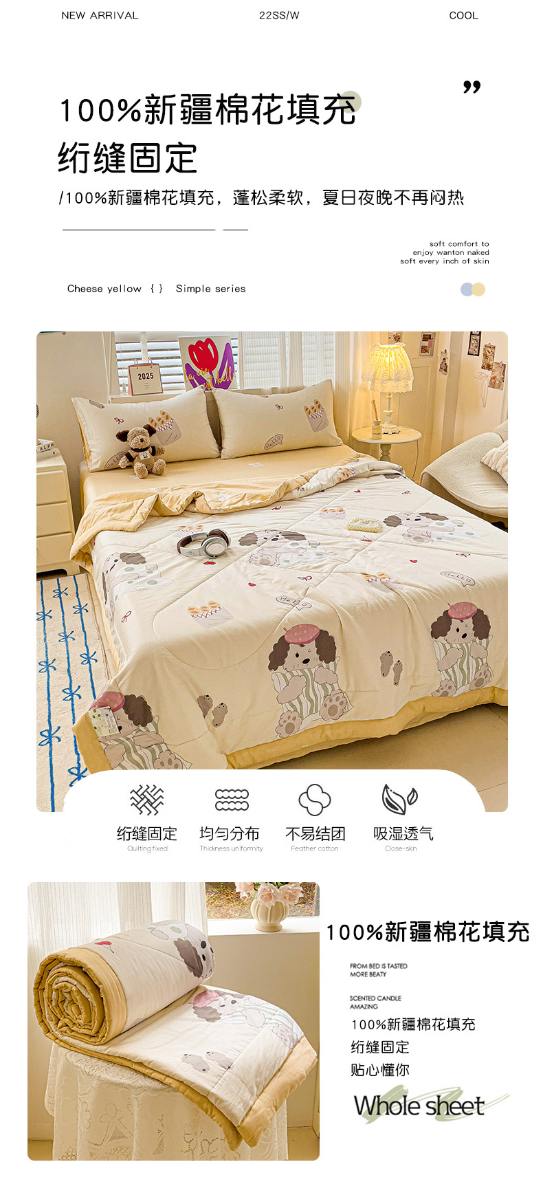 • 91家纺网 家纺一手货源 找家纺 初相识被业 2025新款里外全棉夏被棉花夏被四件套印花夏凉被空调被 面包狗