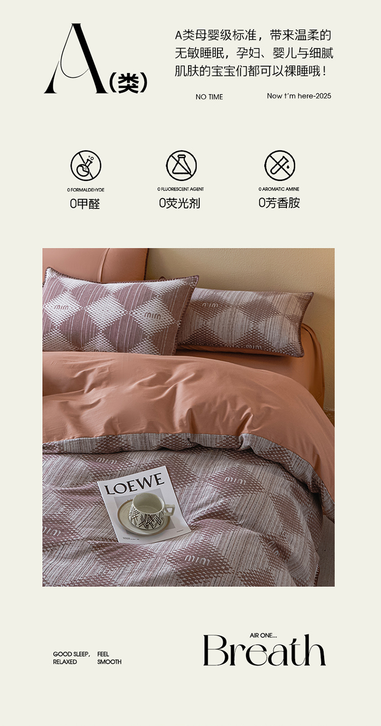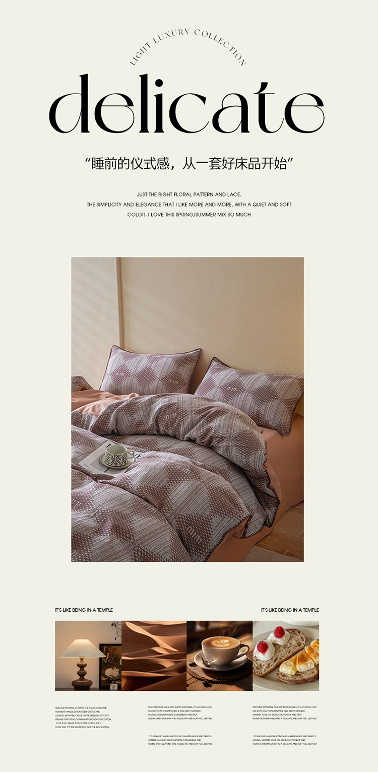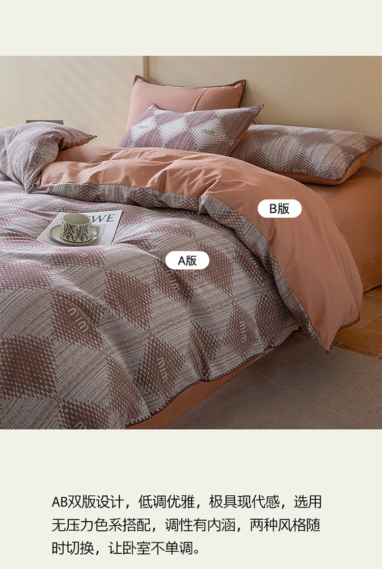 商品名称:2025新款亲肤全棉三层纱提花四件套 菱格-赤缇