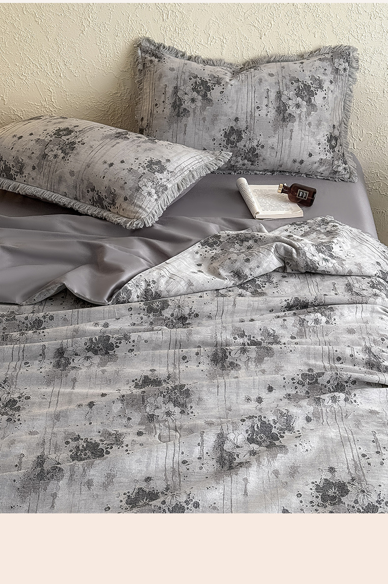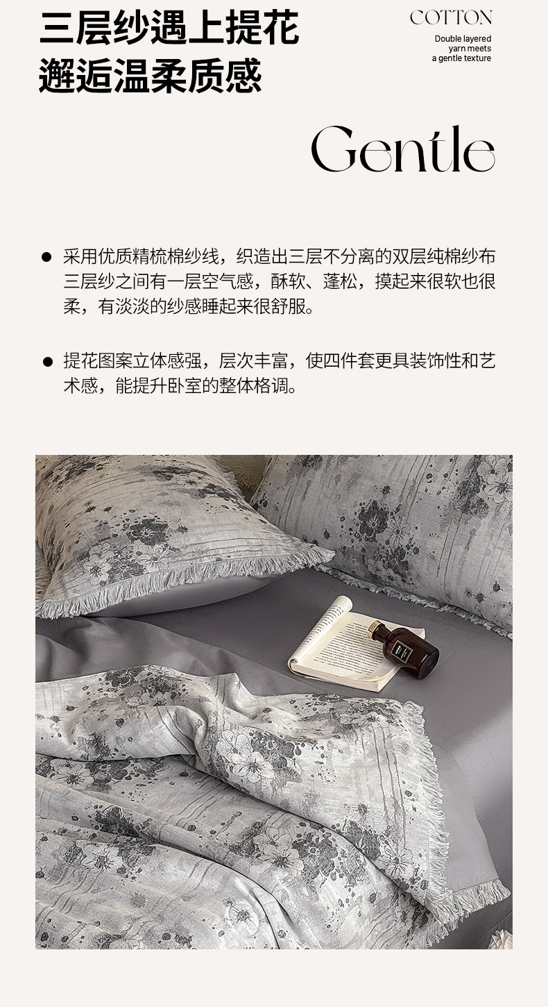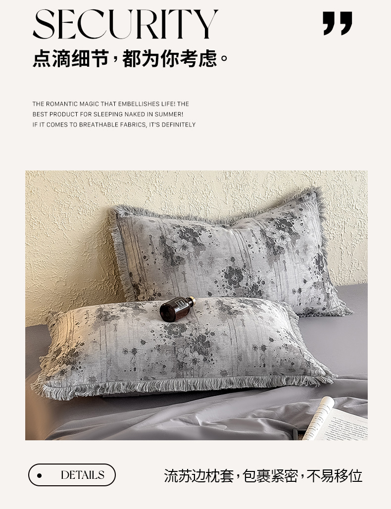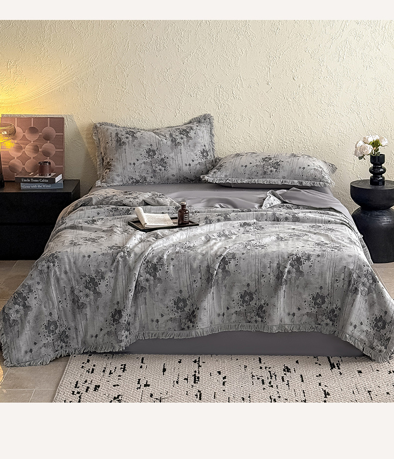当前位置: 91家纺网 > 商品网购 > 床品套件 > 四件套 > 全棉活性四件套 > 2025新款全棉三层纱提花夏被四件套 竹影-月白