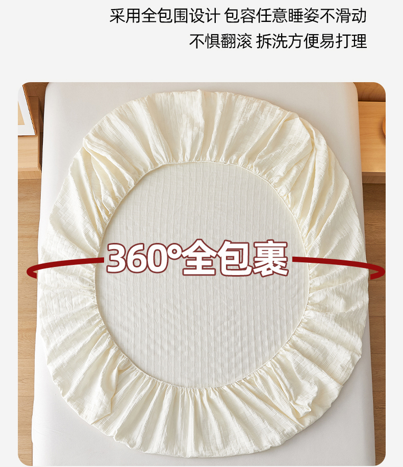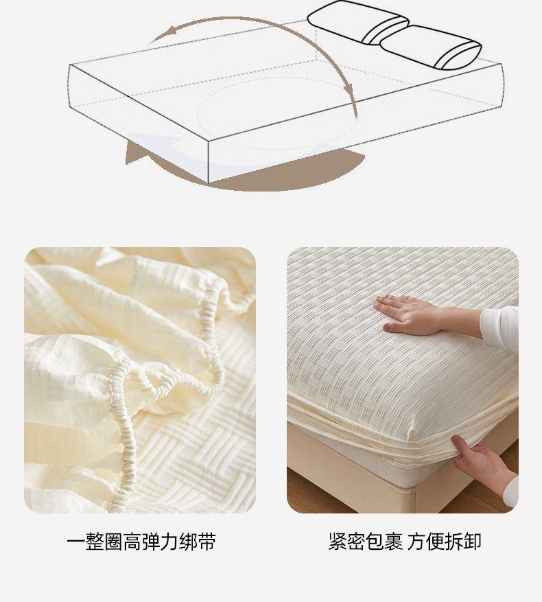 • 91家纺网 家纺一手货源 找家纺 梦镜2025新款A类亲肤棉华夫格棋盘格防水床笠 华夫格-素白