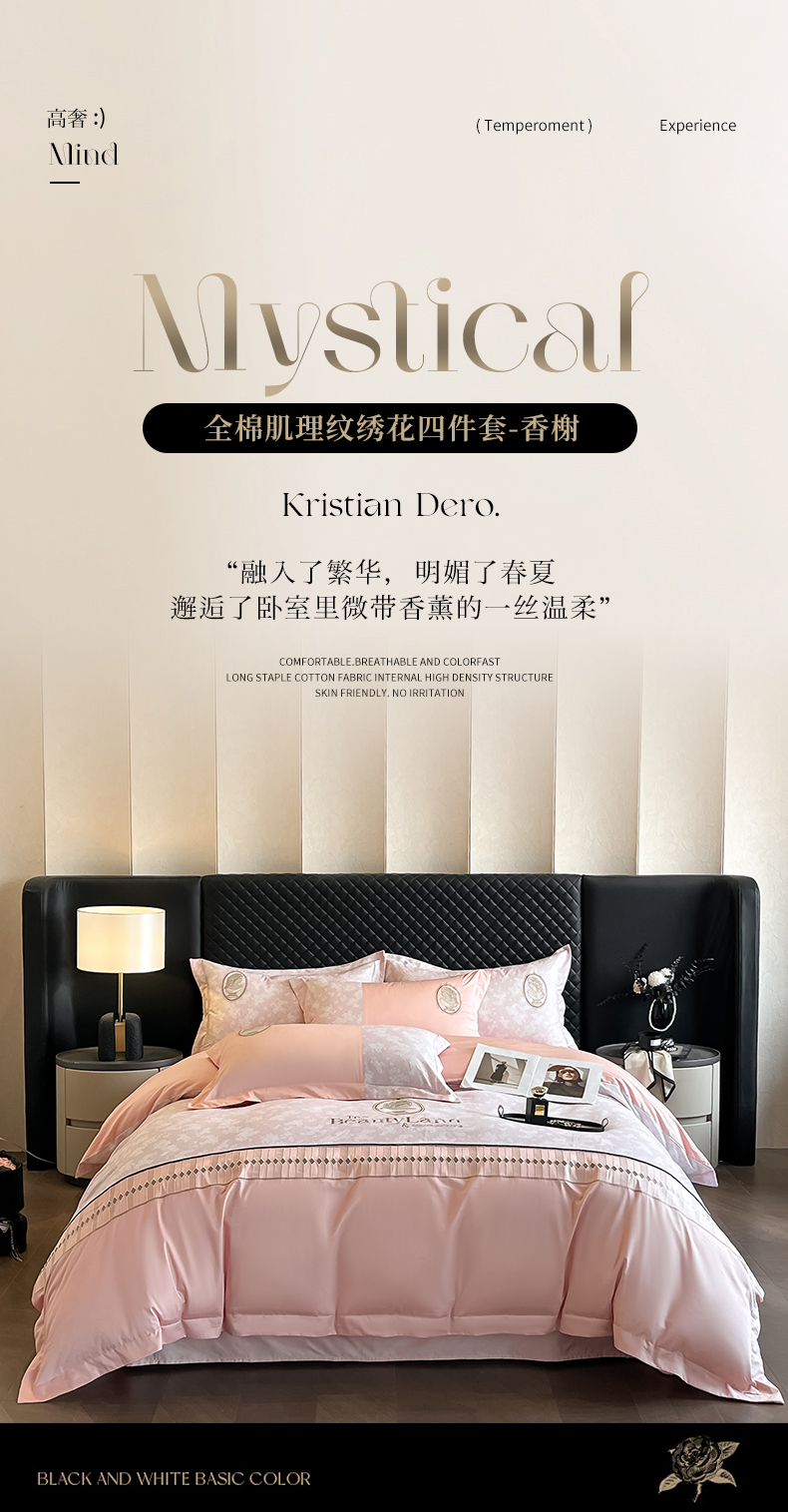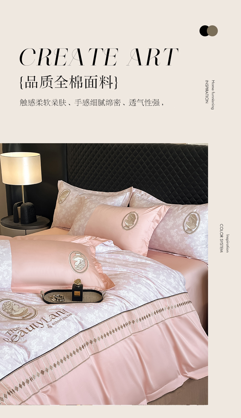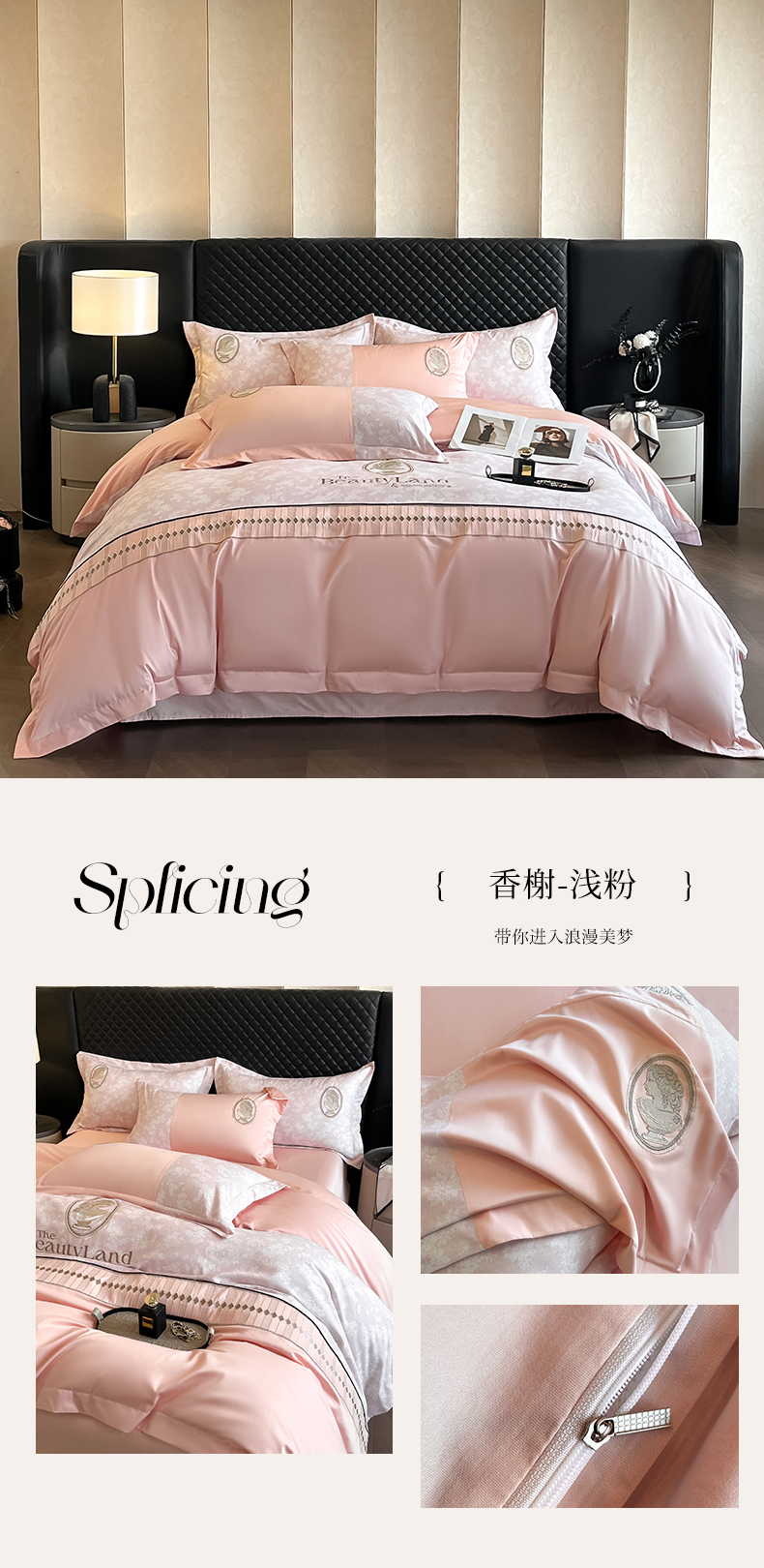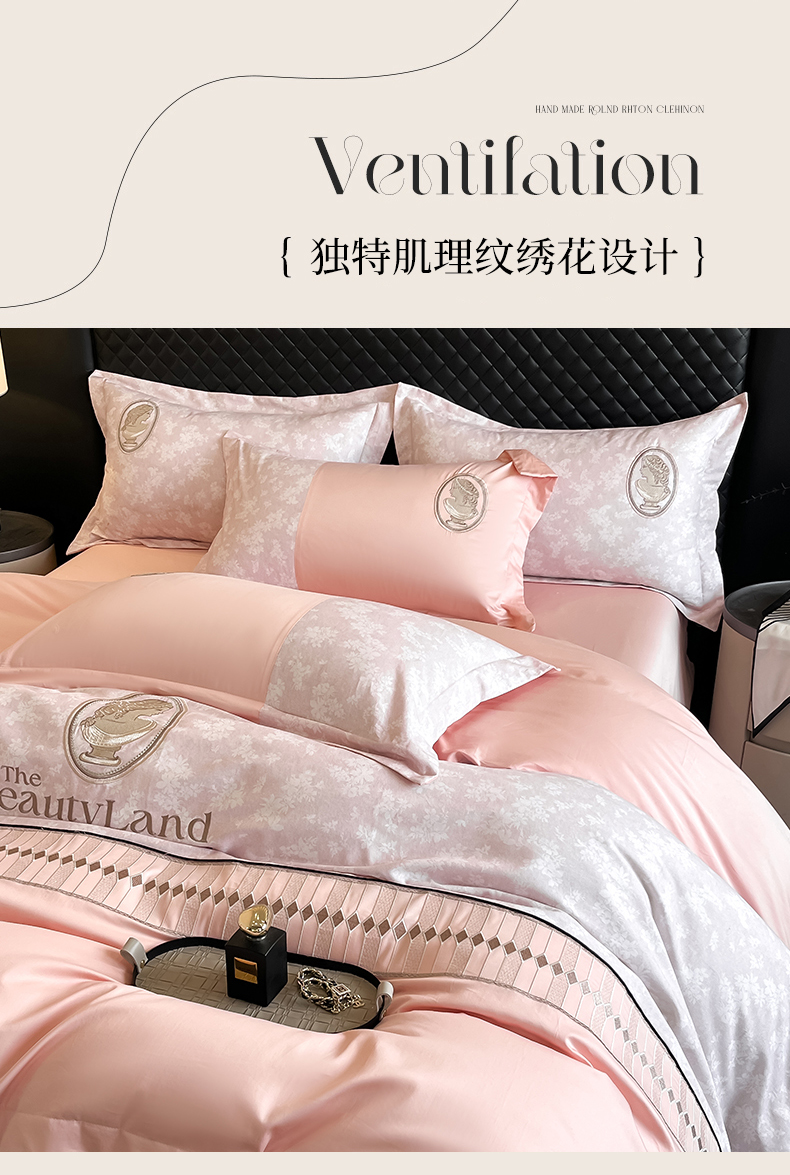 商品名称:苏美 2025新款全棉肌理纹绣花四件套-香榭 香榭-浅粉