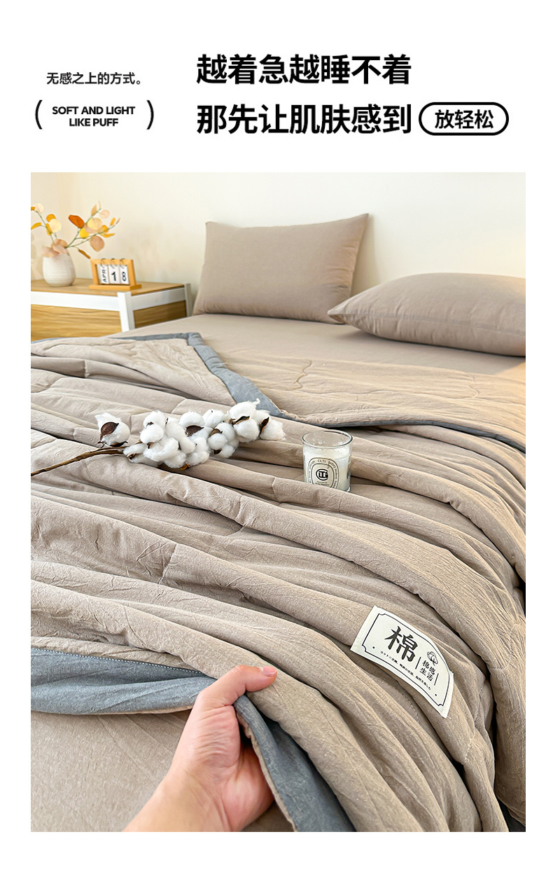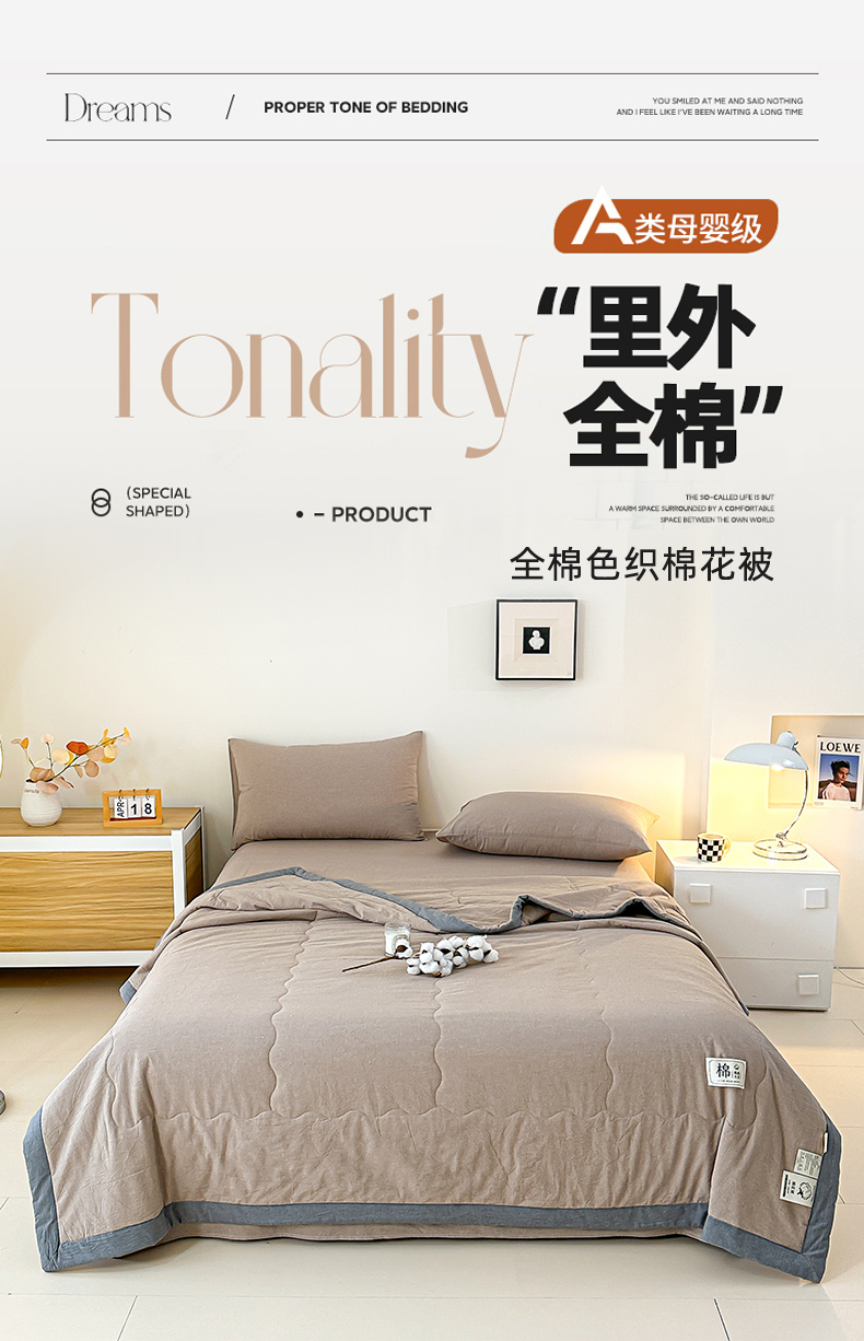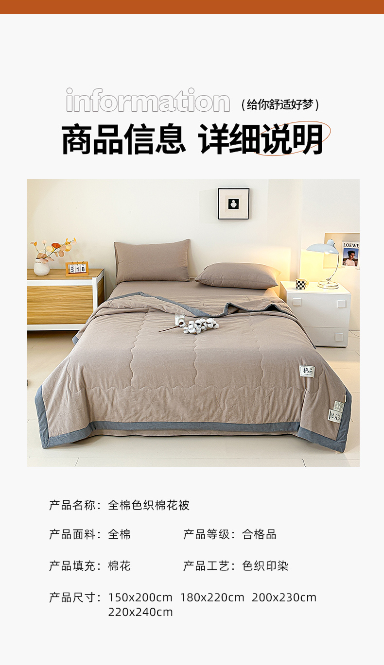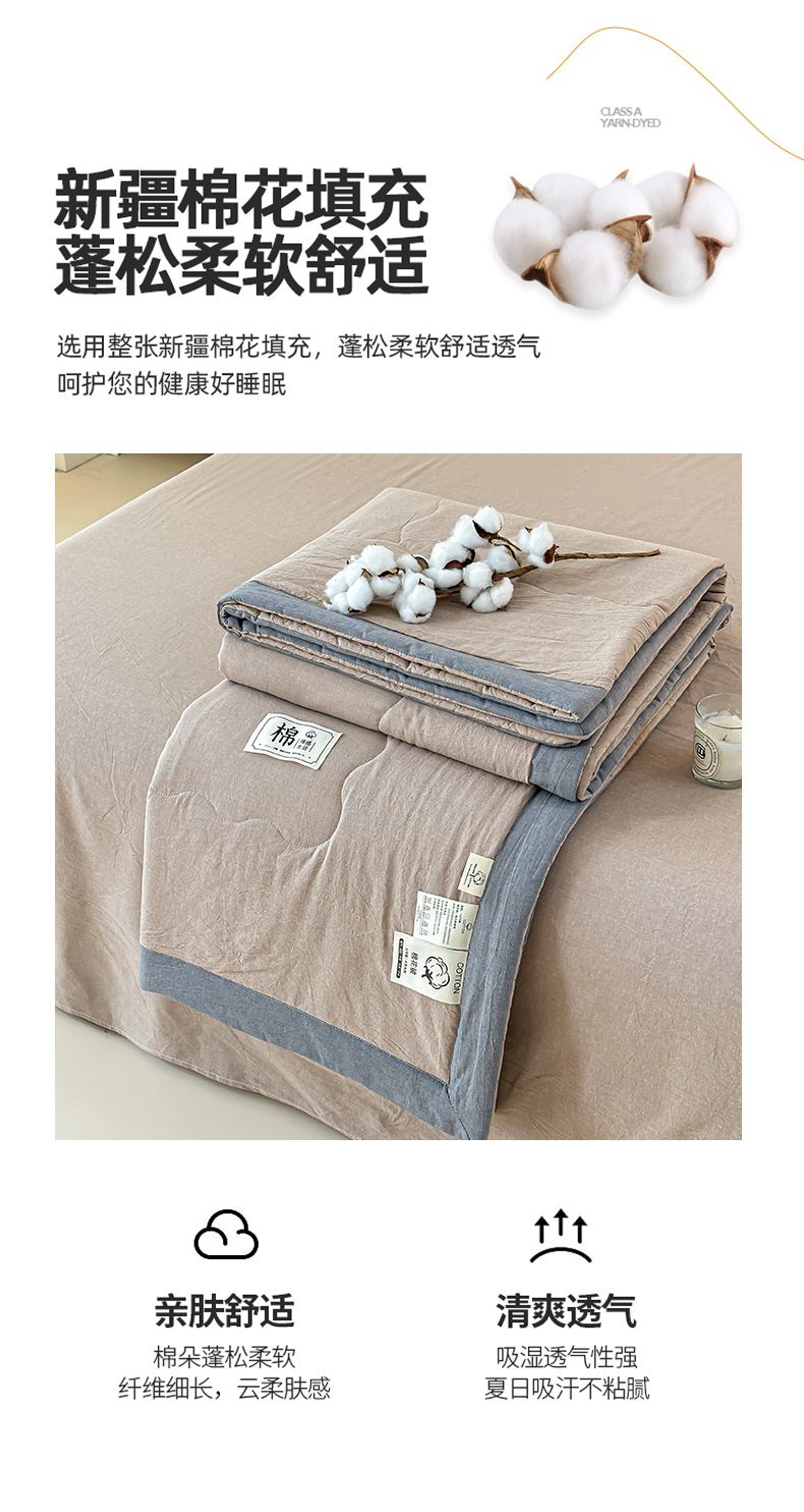 (总)圣尔雅 2025新款里外全棉色织夏被新疆棉花被纯棉被子空调被夏凉被,黛蓝,粉玉,卡其,墨绿,奶白,星灰