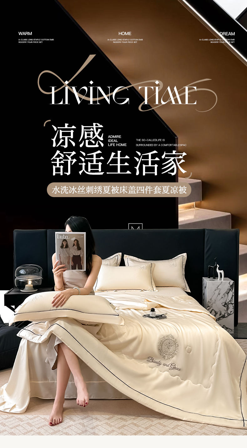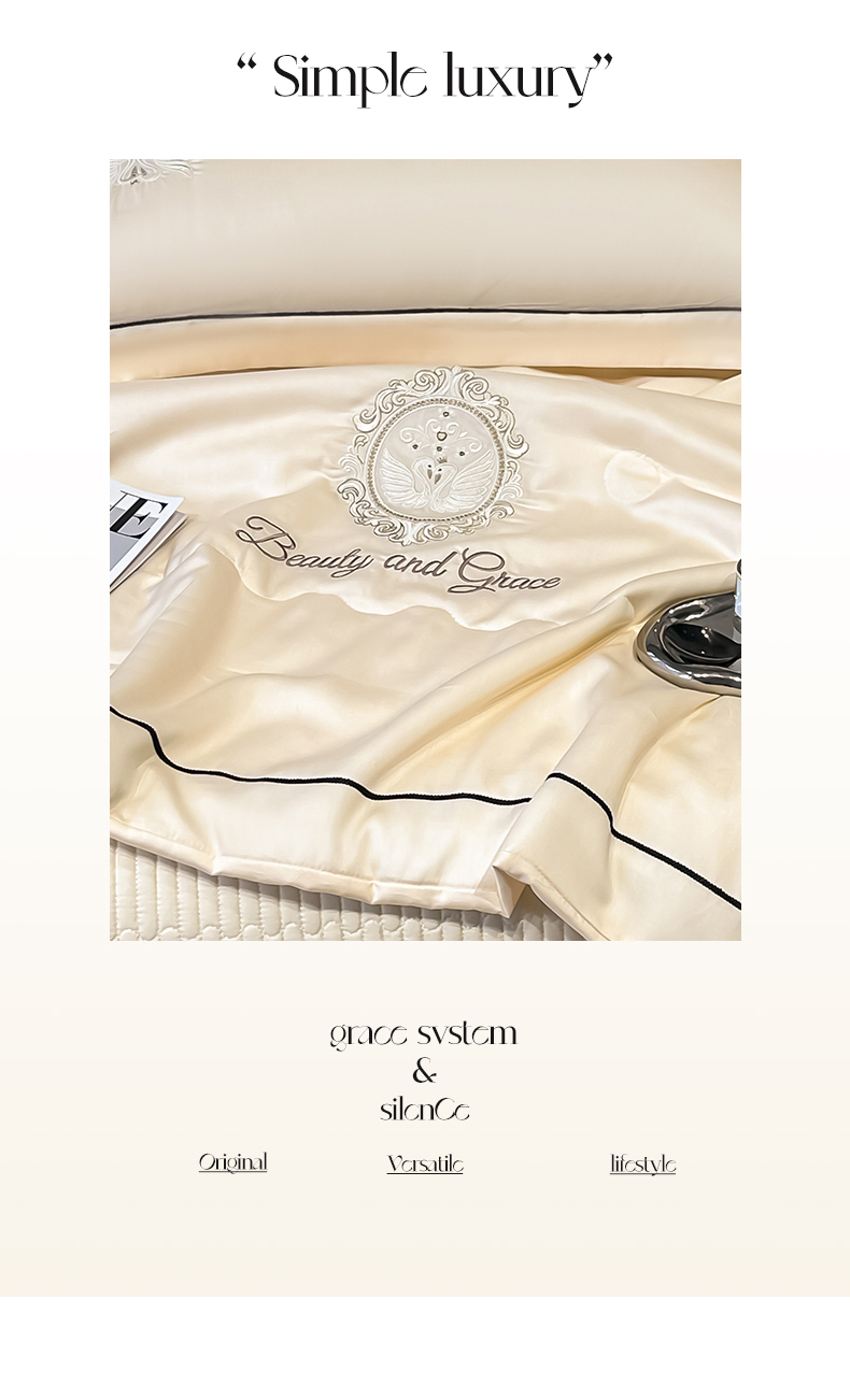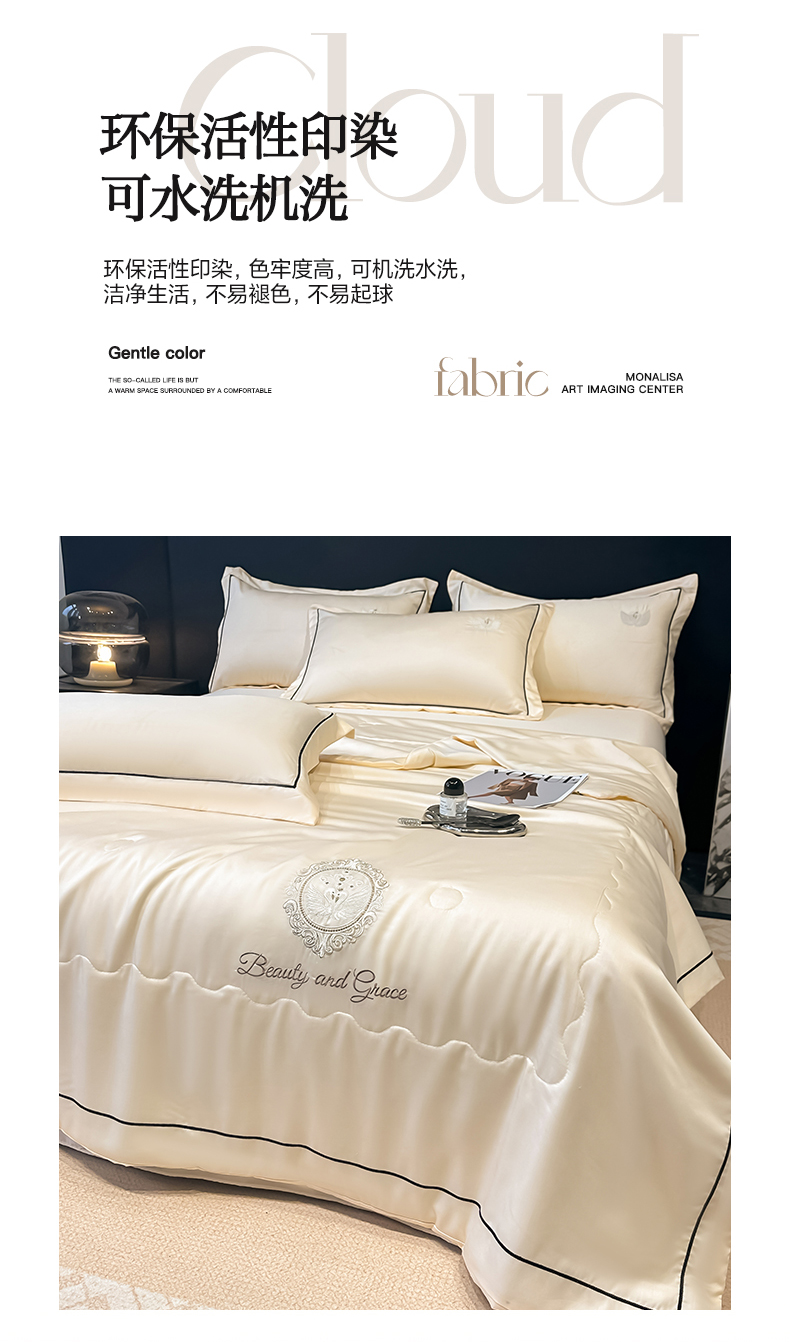 富米莱(原臻工厂) 2025新款水洗真丝冰丝刺绣夏被床盖四件套夏凉被 天鹅之恋-奶昔白