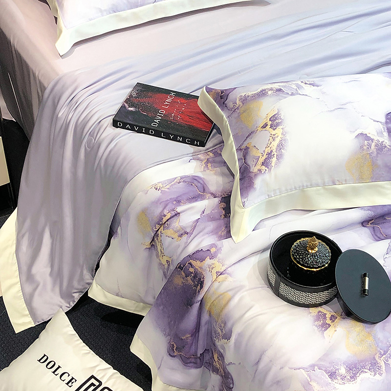 (总)若未家居 LOVEWE HOUSE 2026新款100S数码印花轻奢风四件套-波澜,波澜 爵士灰,波澜 公主粉,波澜 贝拉橘