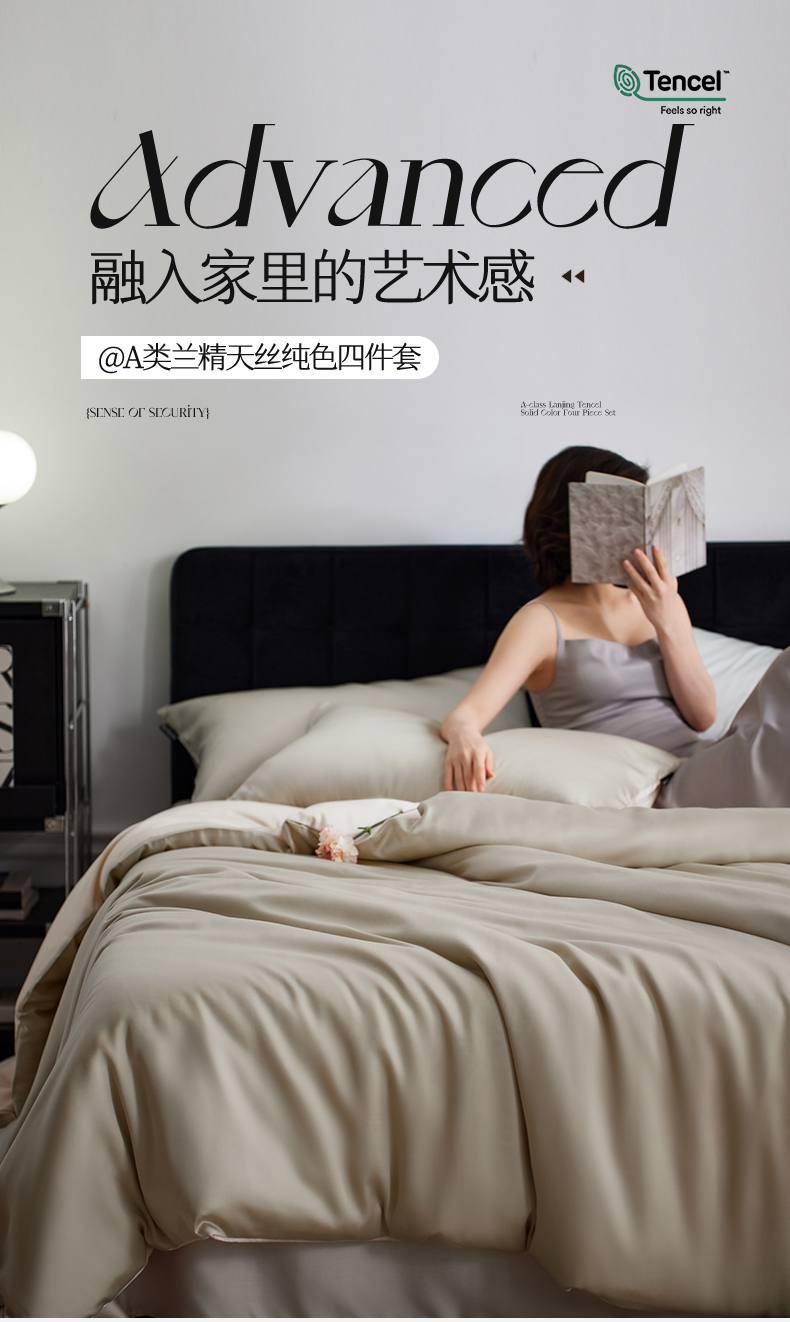凯磊家纺 2025新款.兰精天丝纯色四件套 柔绿米境