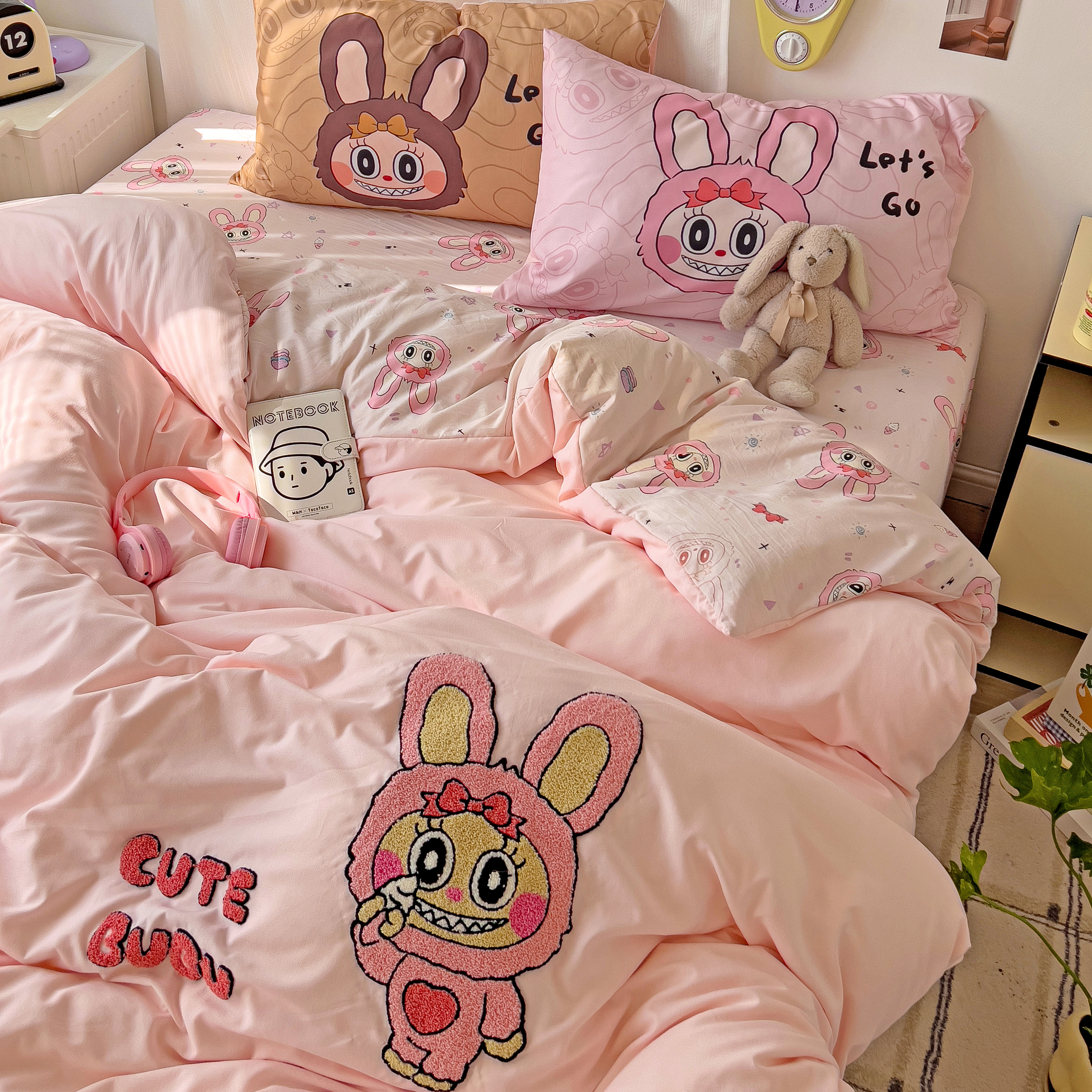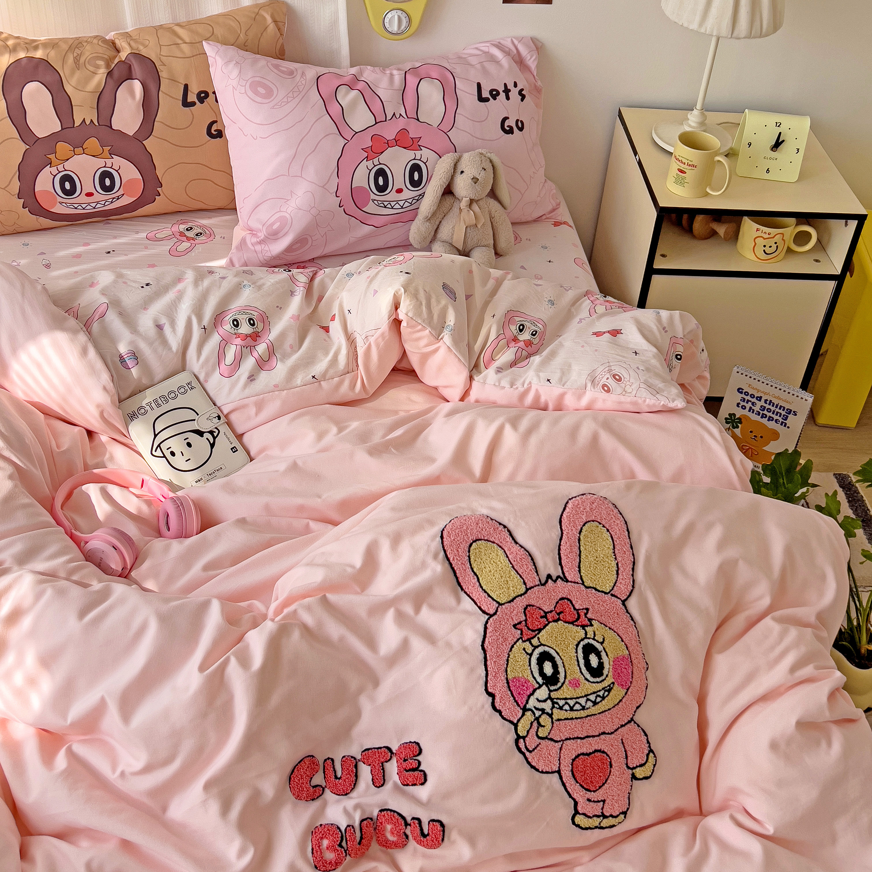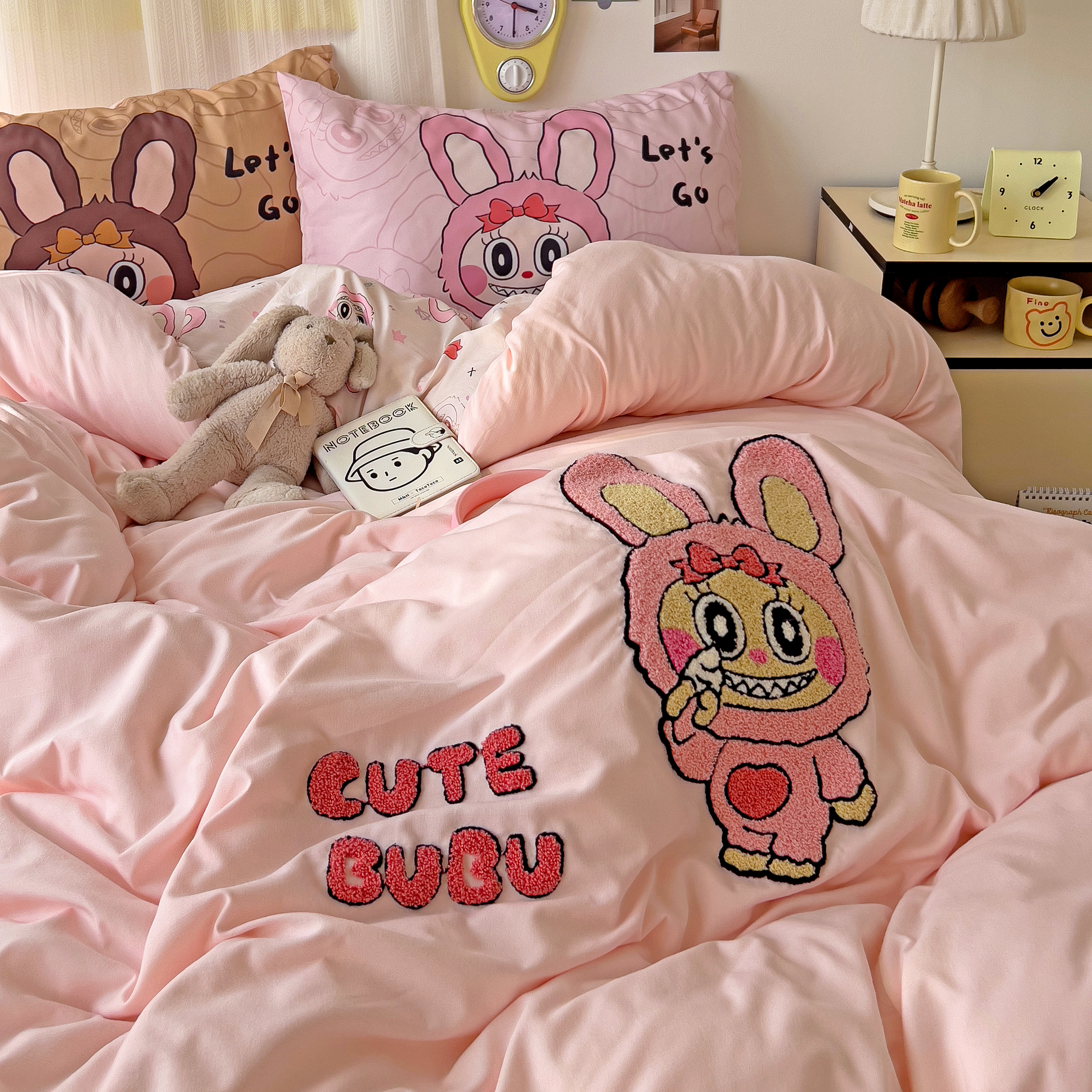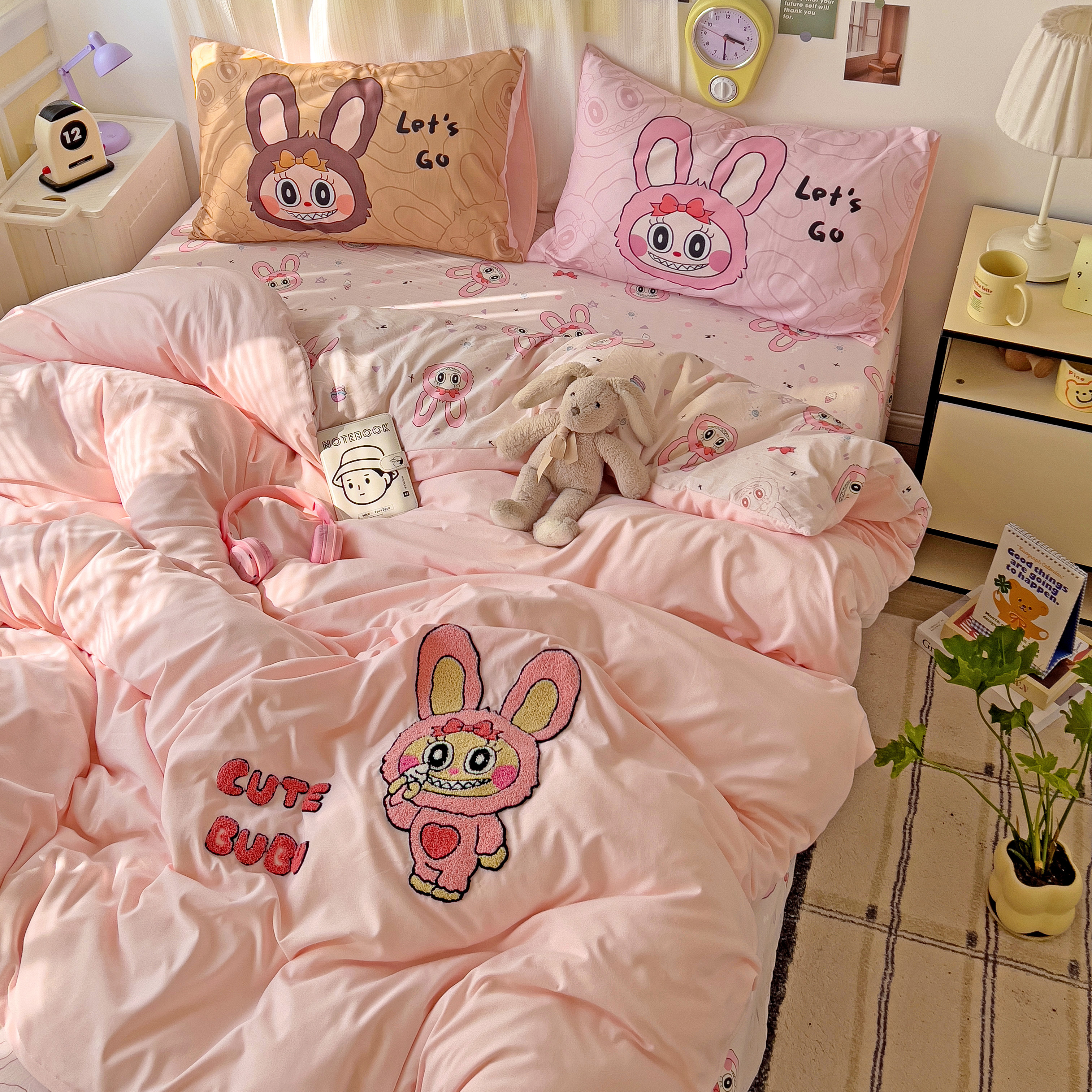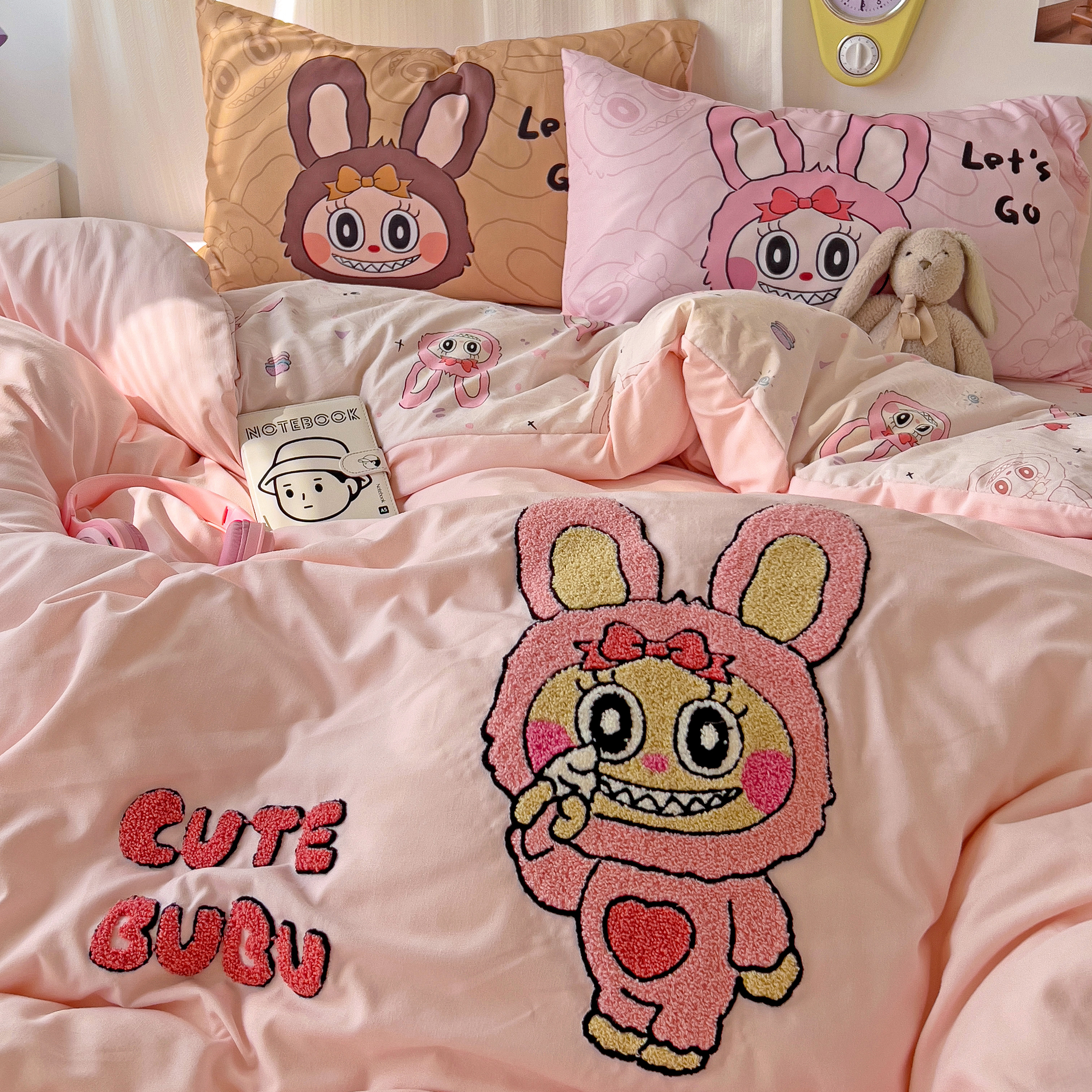 (总)一霖家纺 2025新款小清新牛奶绒毛巾绣四件套-第三波,调皮的小熊,波点小熊,花园小兔咖,小猪派派,樱桃兔,波点米菲兔,彩色小猫