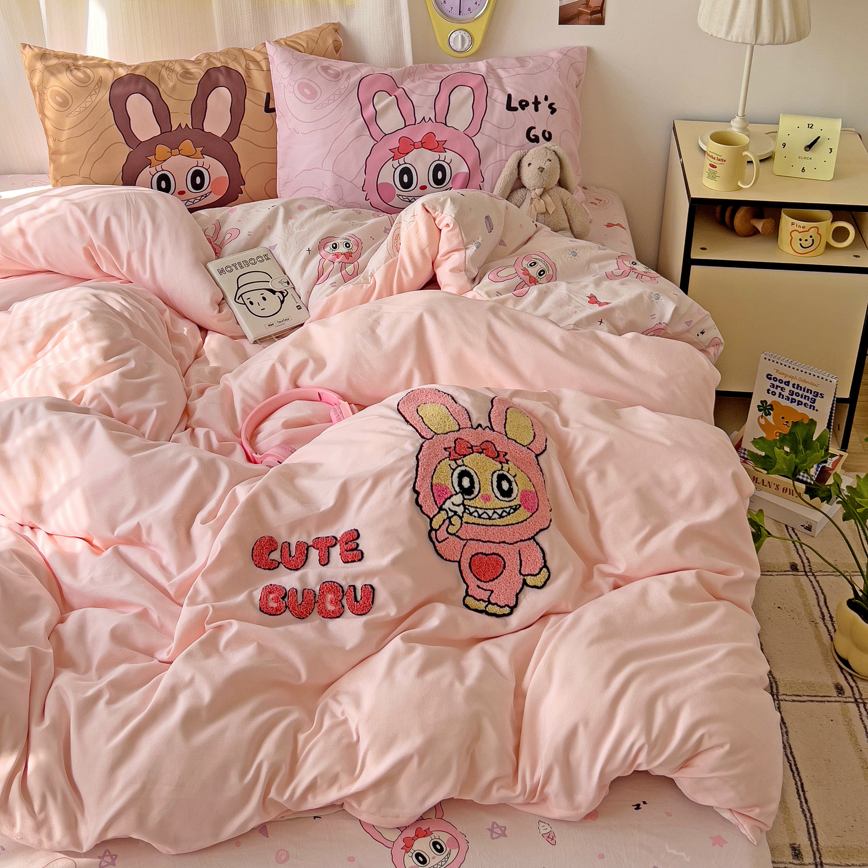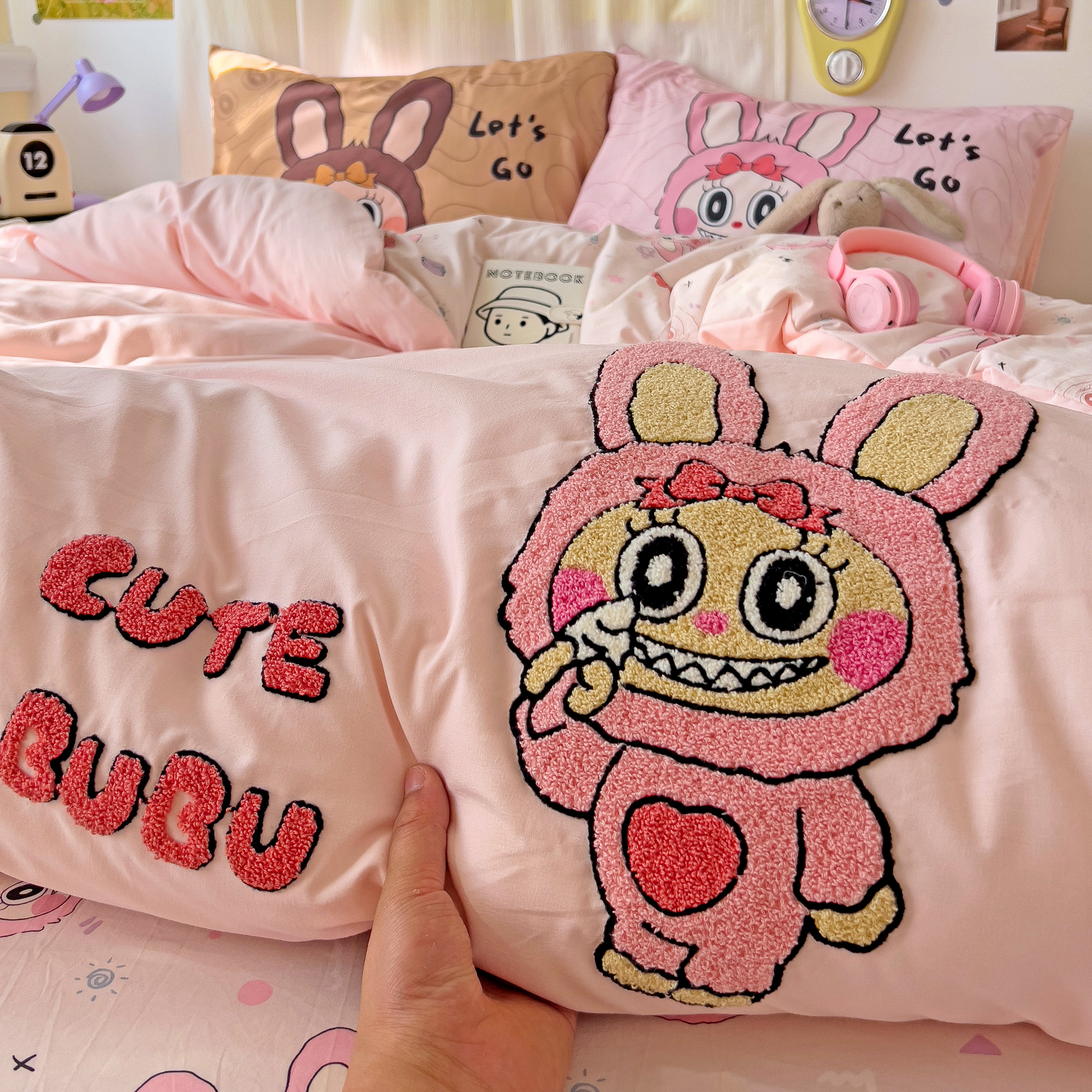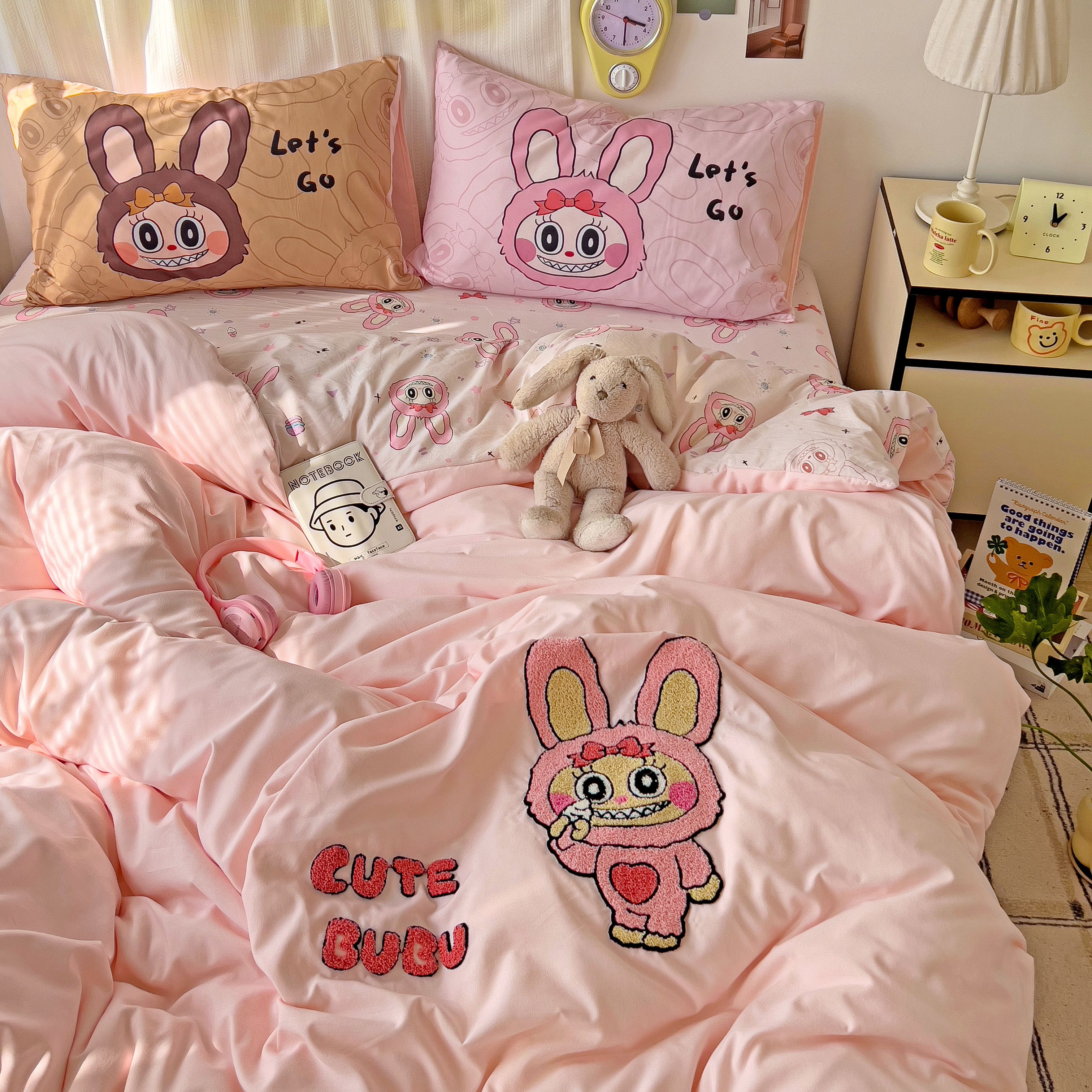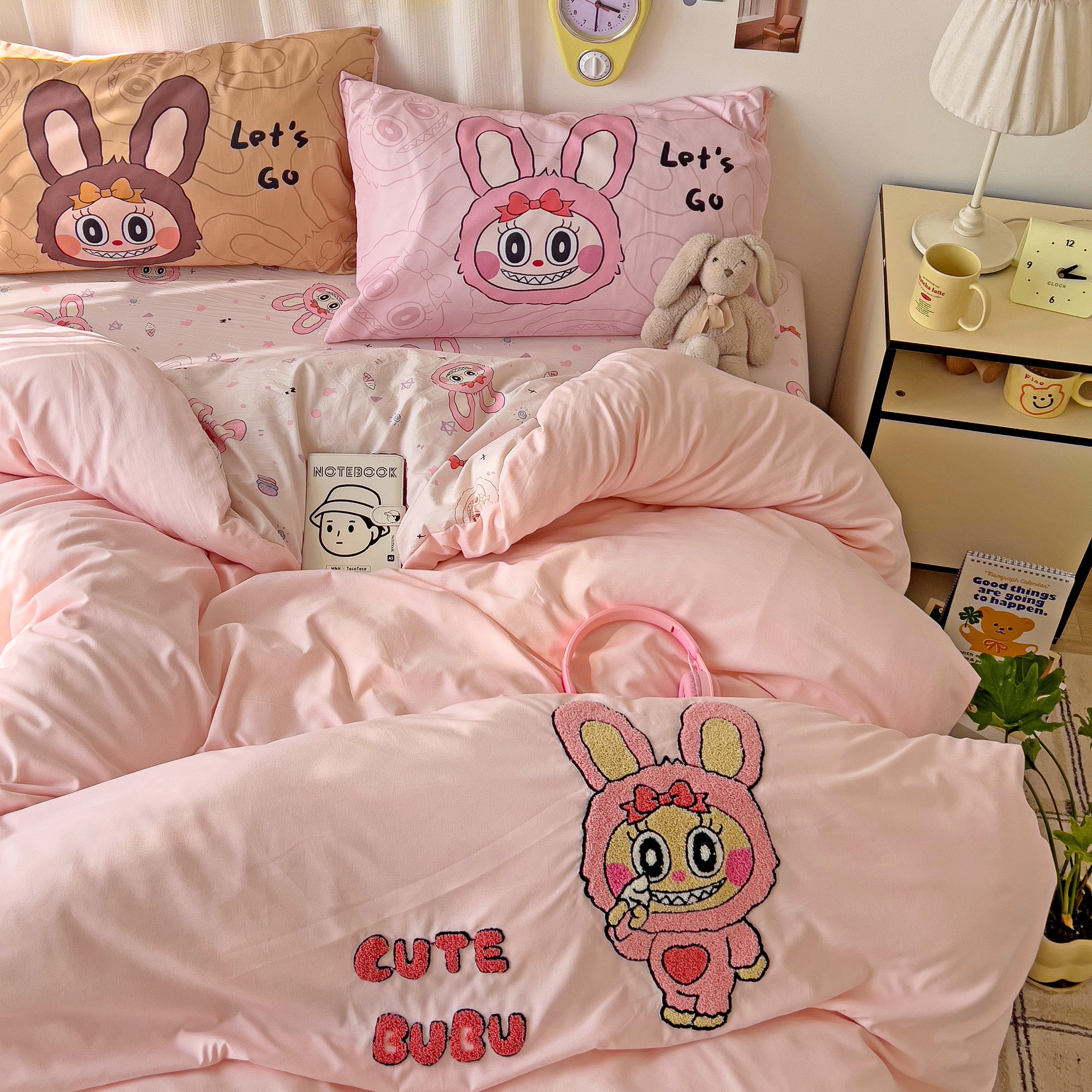 商品名称:一霖家纺 2025新款高克重云朵棉数码印花+毛巾绣四件套 拉布布