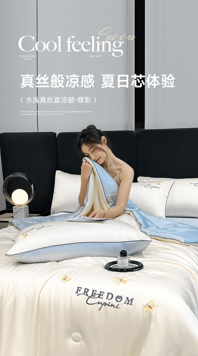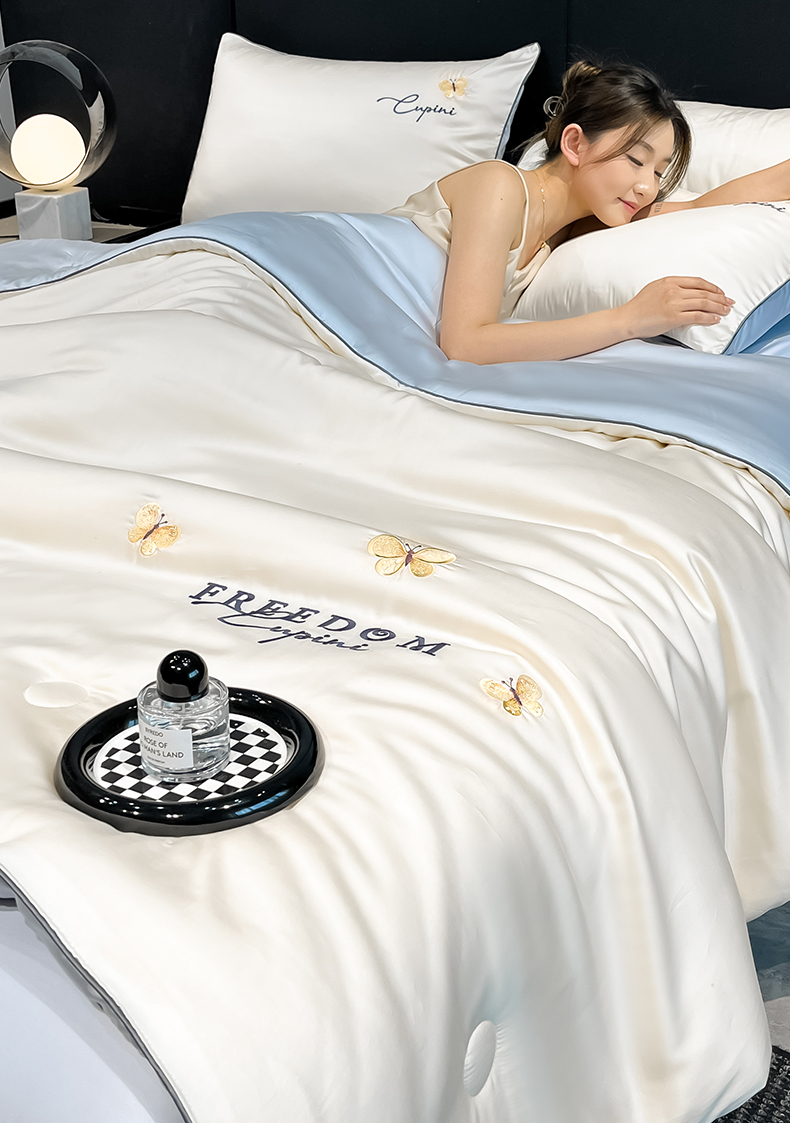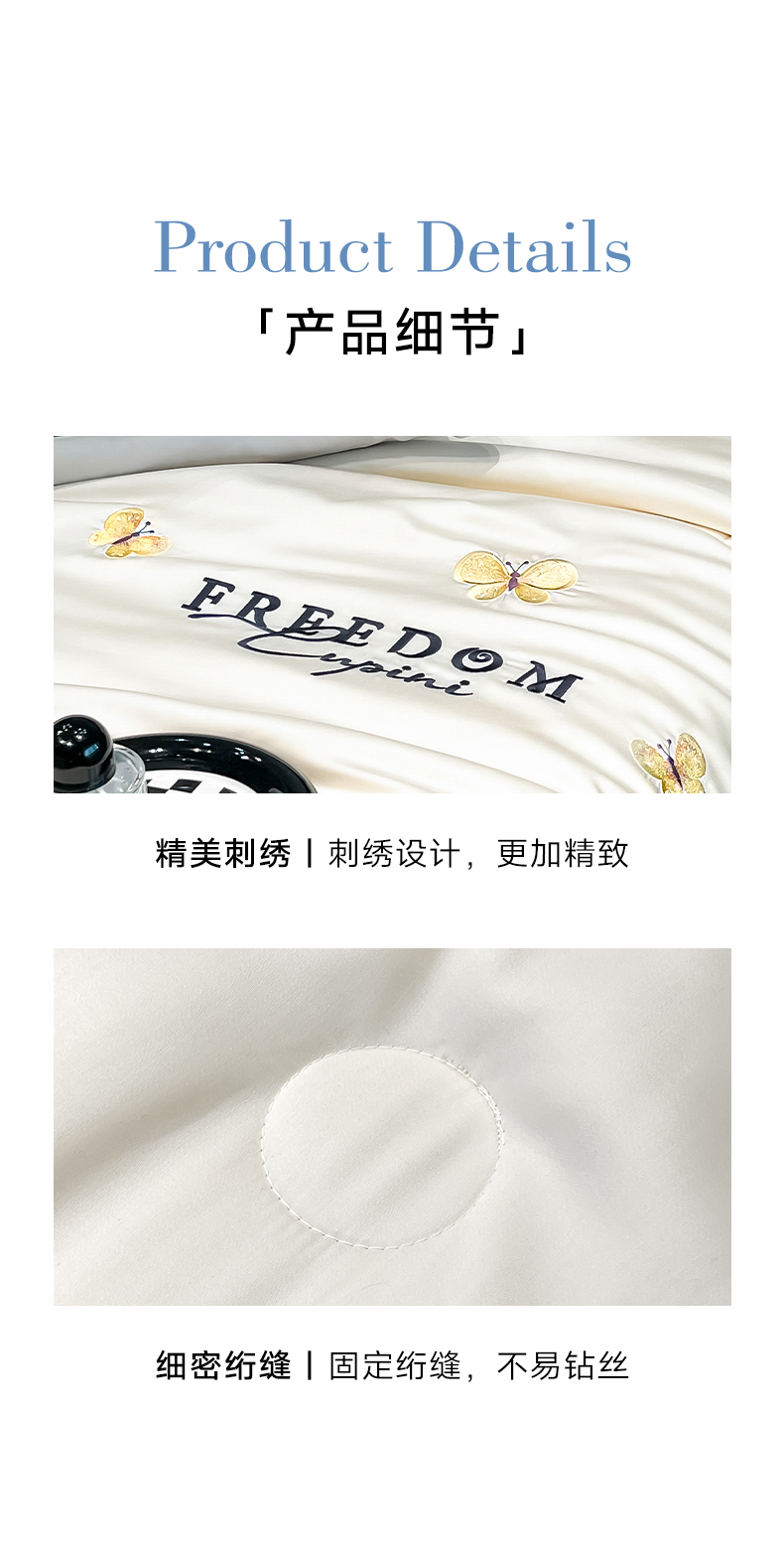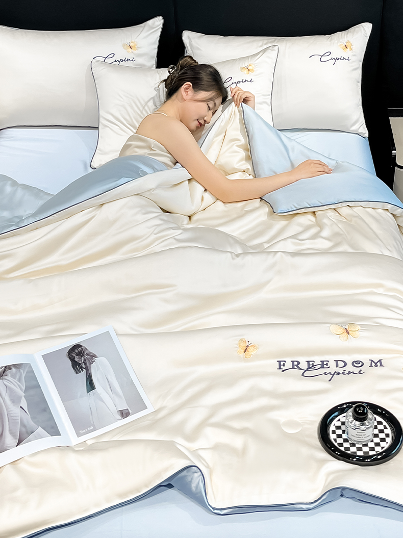 当前位置: 91家纺网 > 商品网购 > 床品套件 > 四件套 > 其它四件套 > 仔仔熊 2025春夏新款水洗真丝刺绣夏被四件套-蝶影 奶昔白-海清