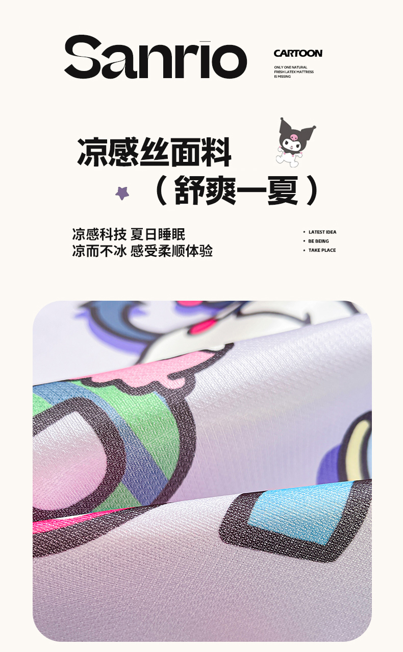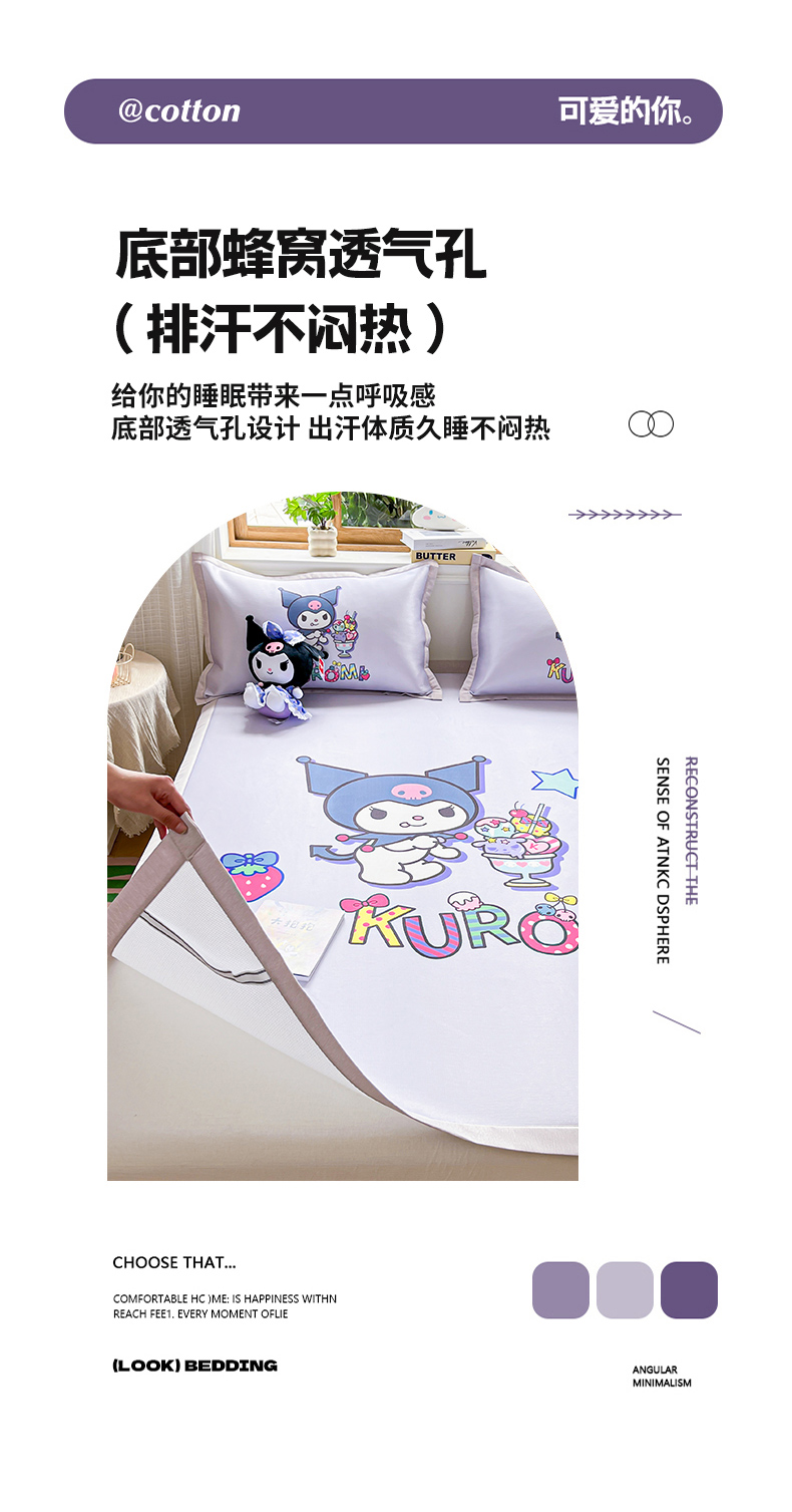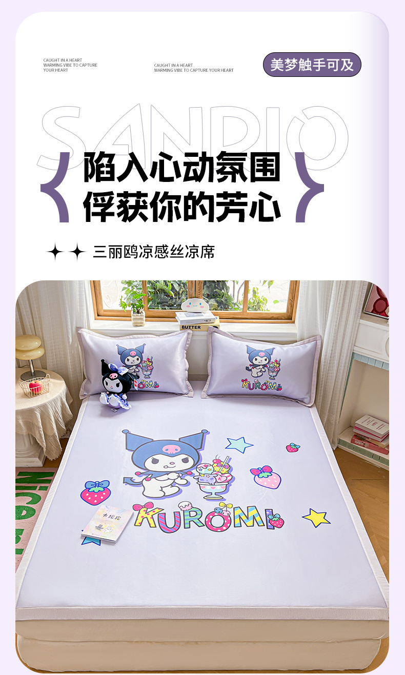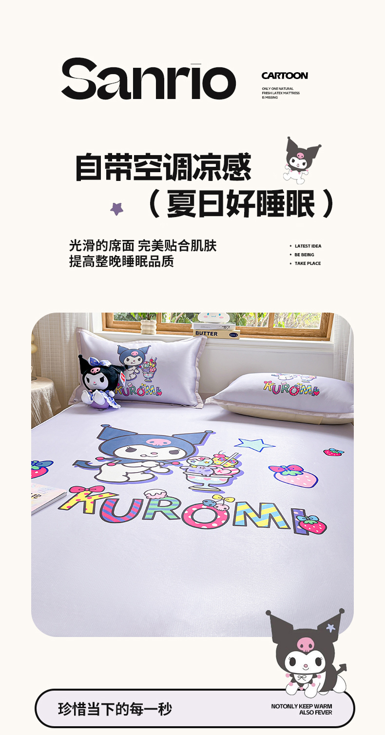商品名称:博雅 2025新款三丽欧A类大版数码印花1200D冰丝凉席凉席席子 开心库洛米