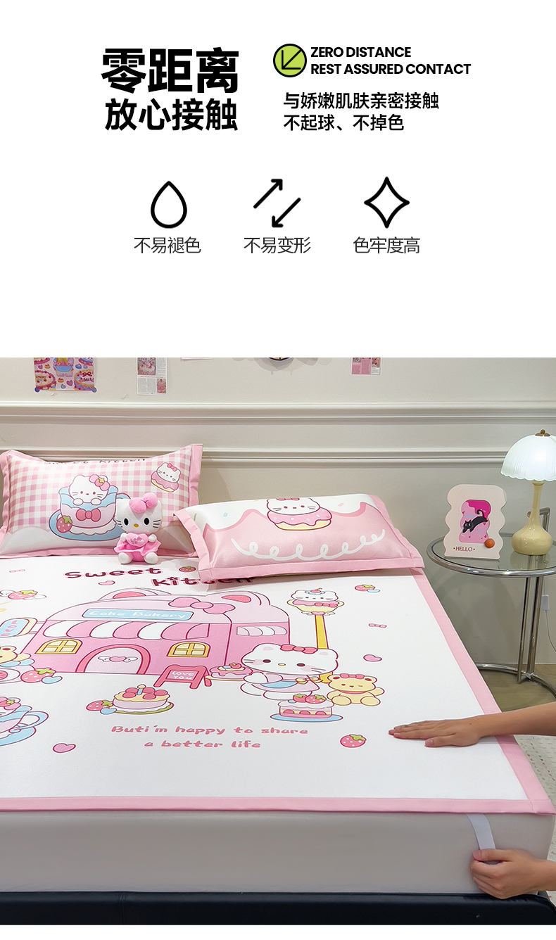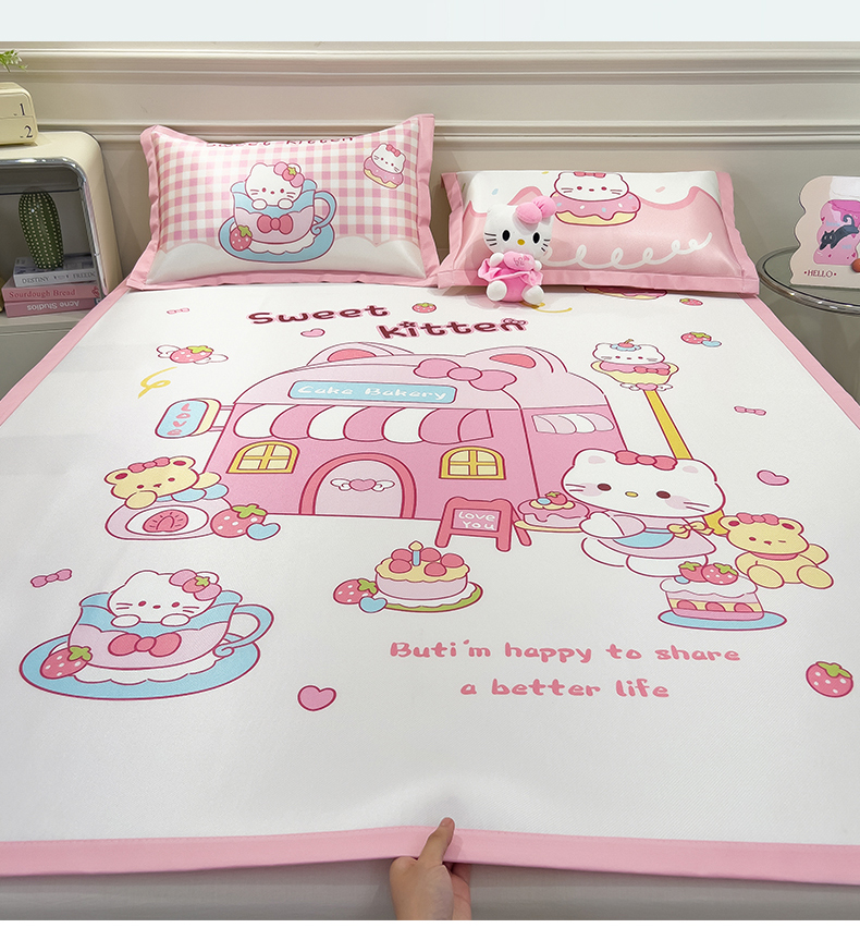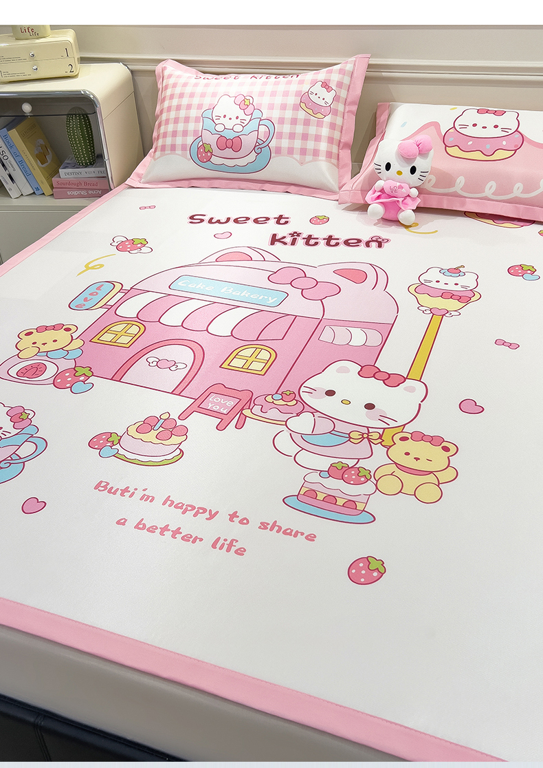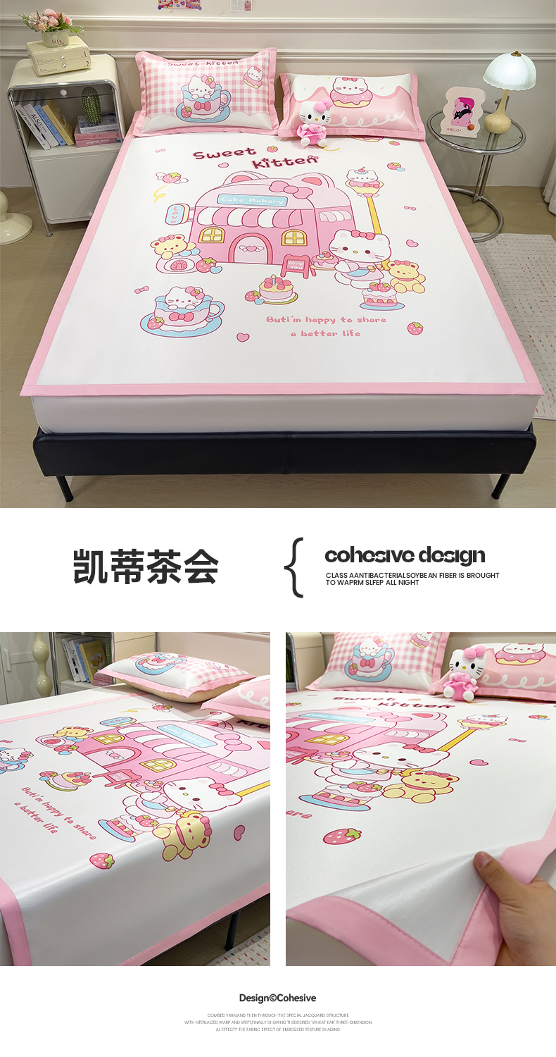 商品名称:摩妮卡 2025新款A类大版碳光冰丝席 三件套 凯蒂茶会
