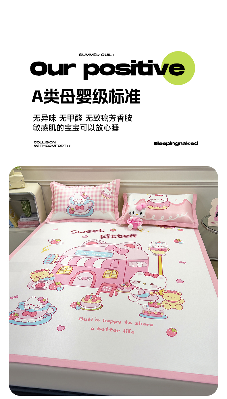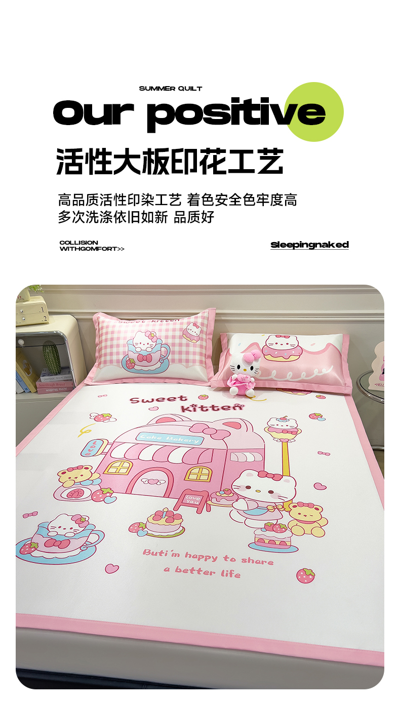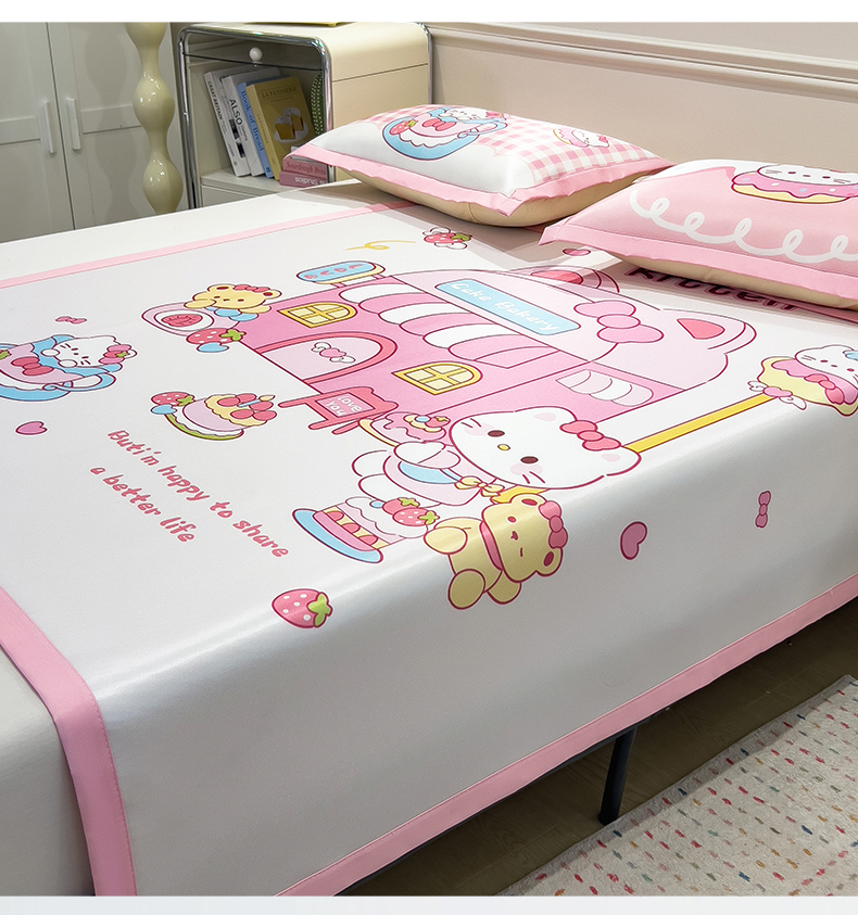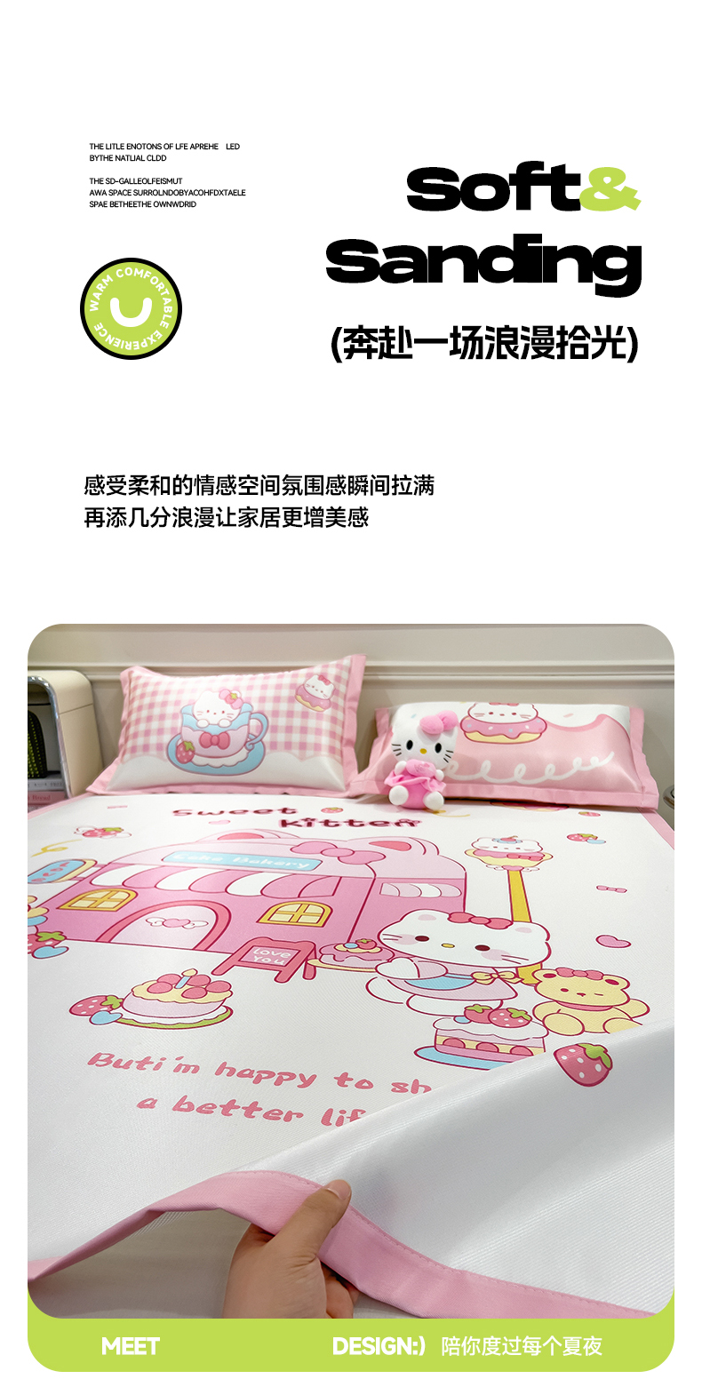 商品名称:摩妮卡 2025新款A类大版碳光冰丝席 三件套 凯蒂茶会