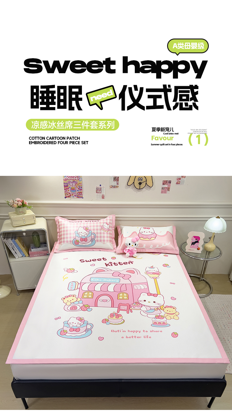 摩妮卡 2025新款A类大版碳光冰丝席 三件套 凯蒂茶会
