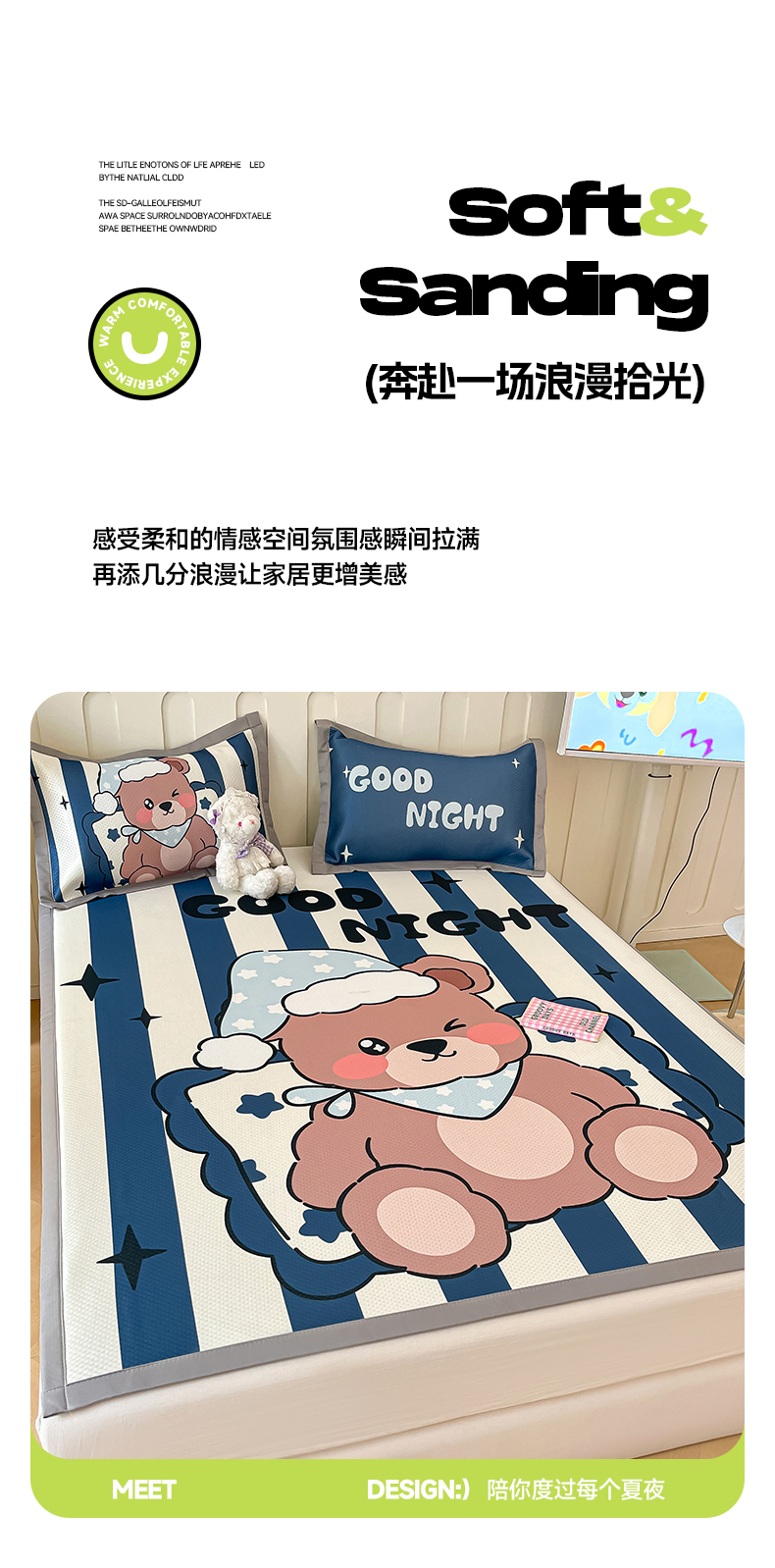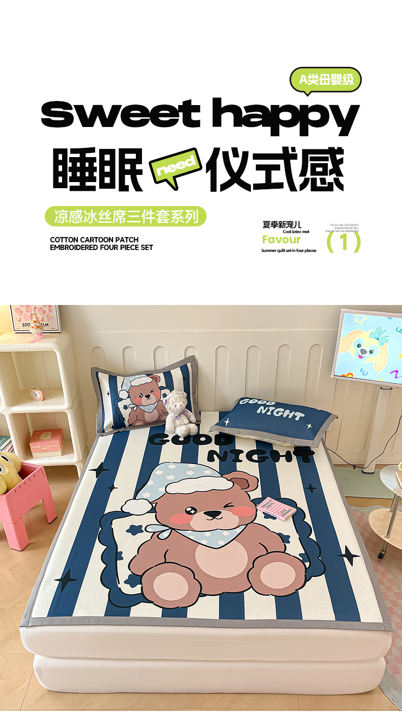 商品名称:摩妮卡 2025新款A类大版碳光冰丝席 三件套 熊宝