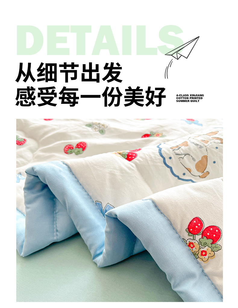 西域种棉人·千百笠 2025新款A类新疆棉花夏凉被加宽包边水洗棉卡通印花吸湿透气棉花夏被空调被 凌香 草莓兔