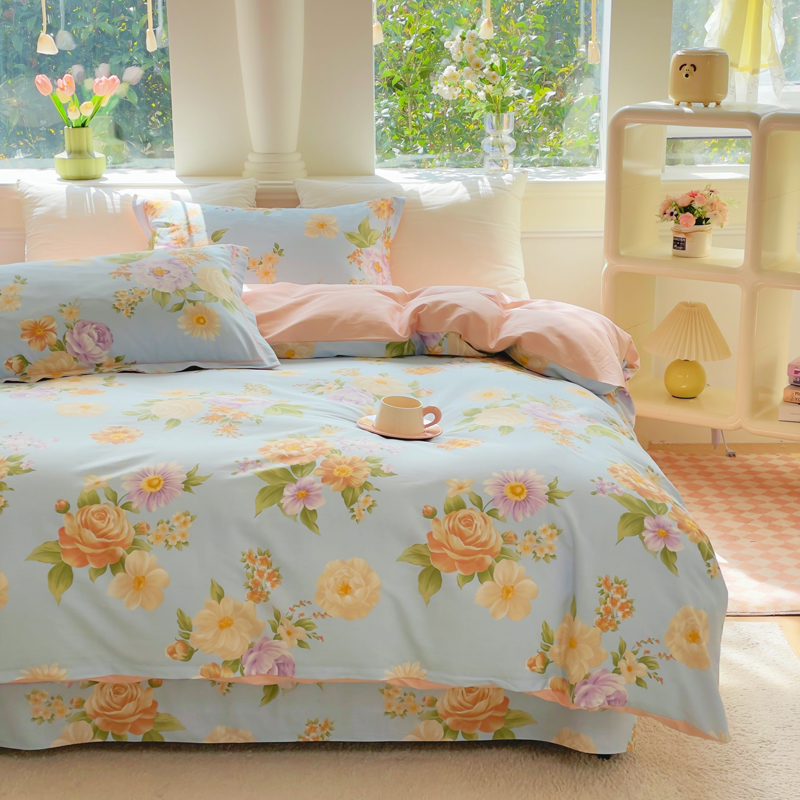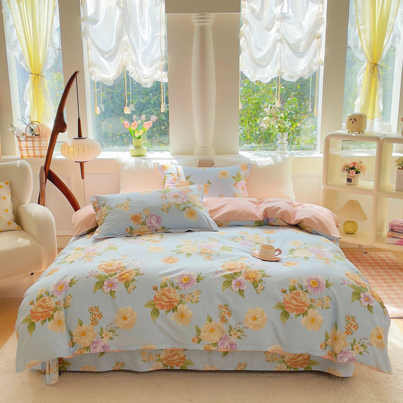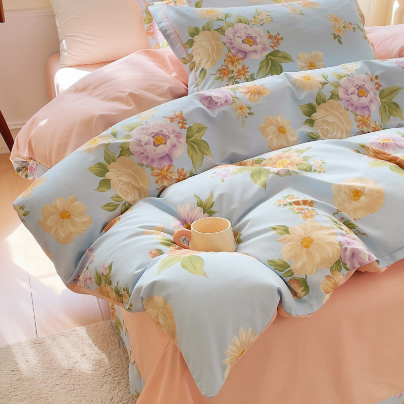 铭博家纺 新款直播爆款网红全棉四件套13070印花吊边一字绣纯棉被套工艺款 花语呢喃,花语呢喃