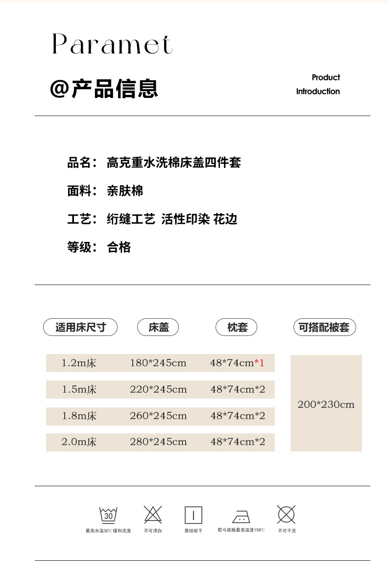260x245cm床盖+枕套一对 | ¥58.00 |