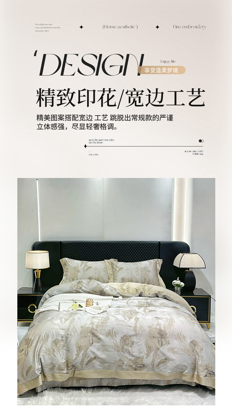 (总)博尔菲 2025新款天丝棉四件套天丝四件套轻奢风四件套,暮云金,华锦印记,自然光辉,雷弗德,暮云紫,雨夏,晨芸之花-紫色,晨芸之花-卡色,漫野-绿
