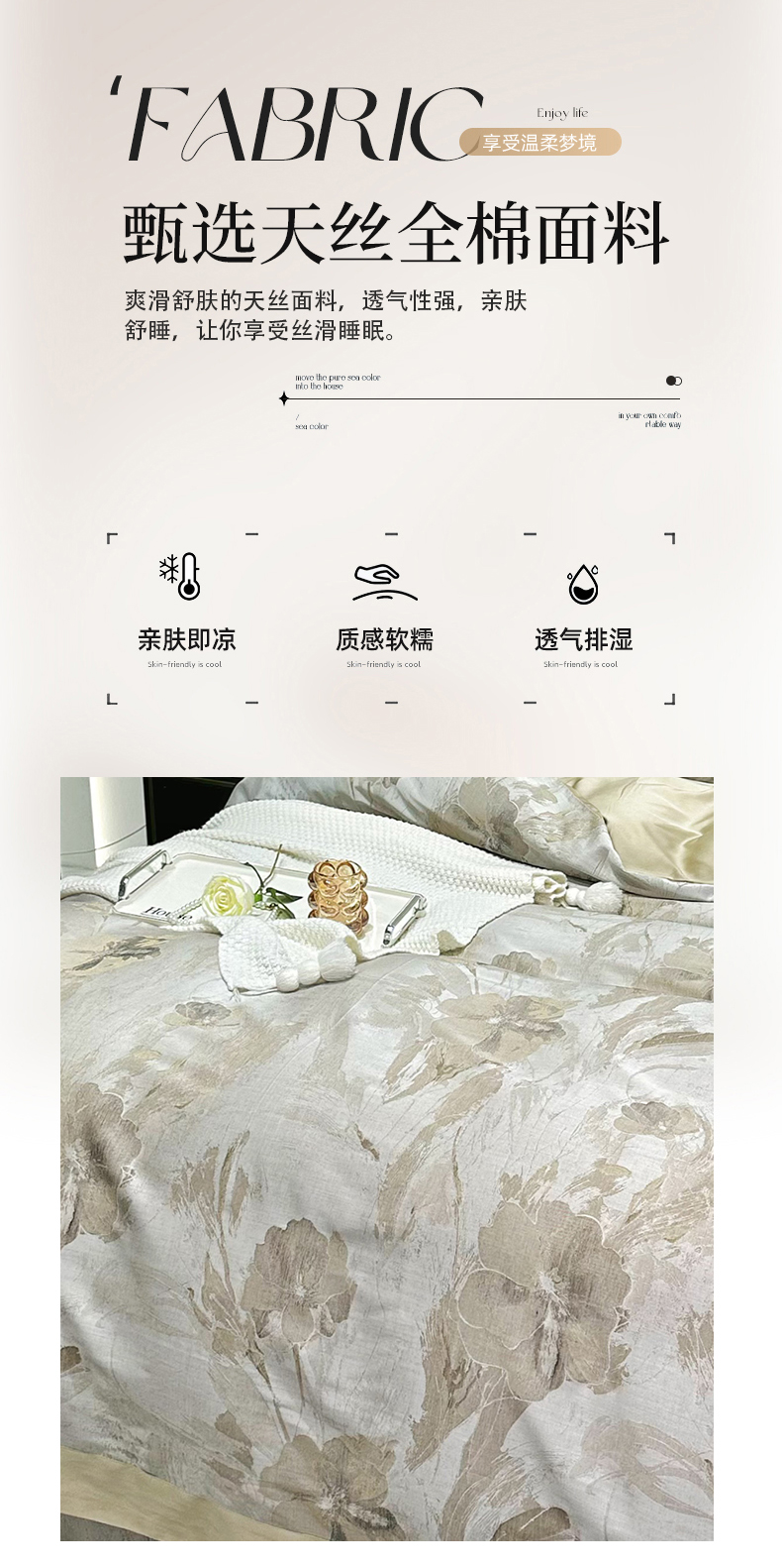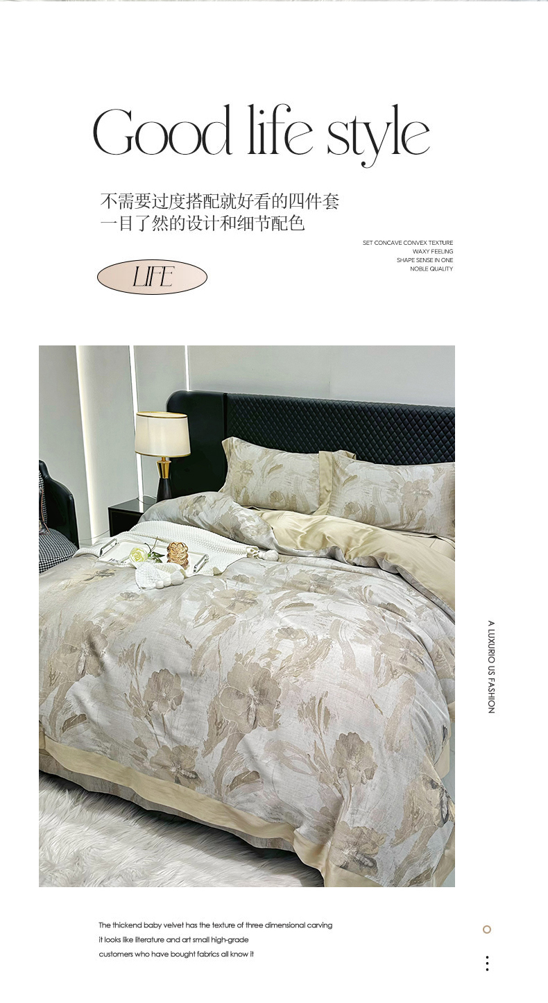 商品名称:博尔菲 2025新款天丝棉四件套天丝四件套轻奢风四件套 暮云金