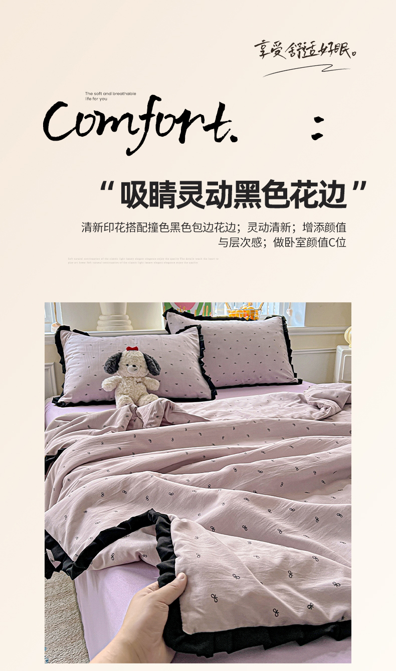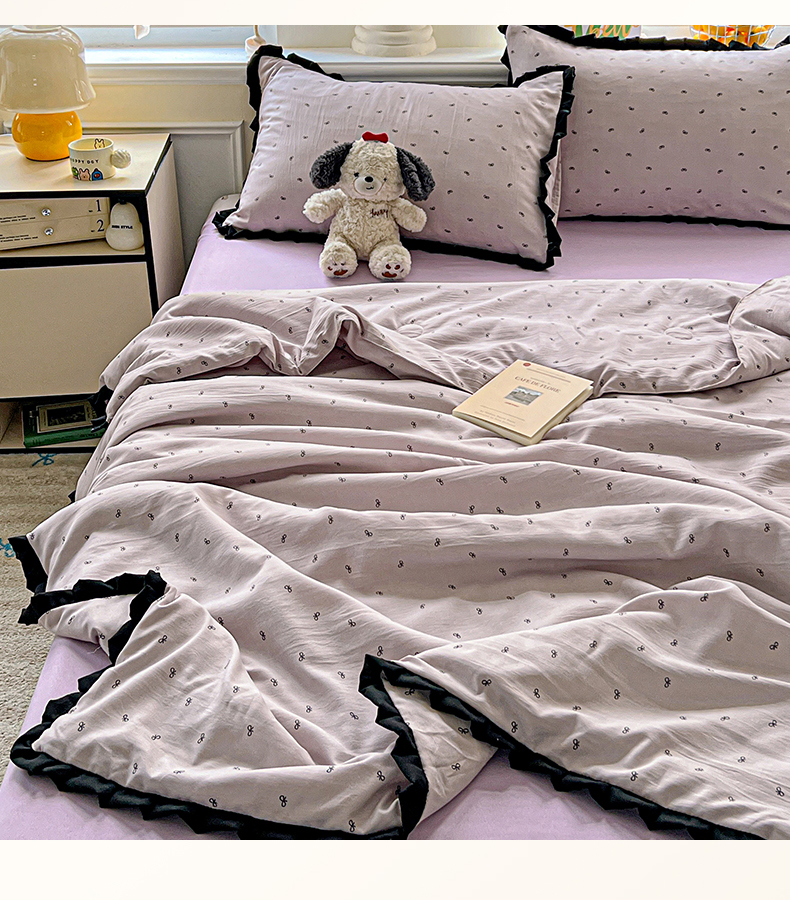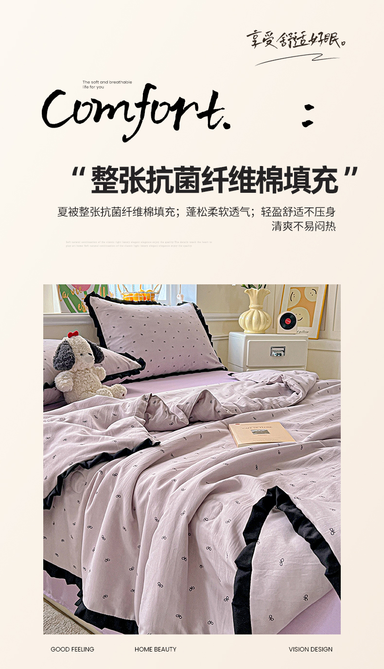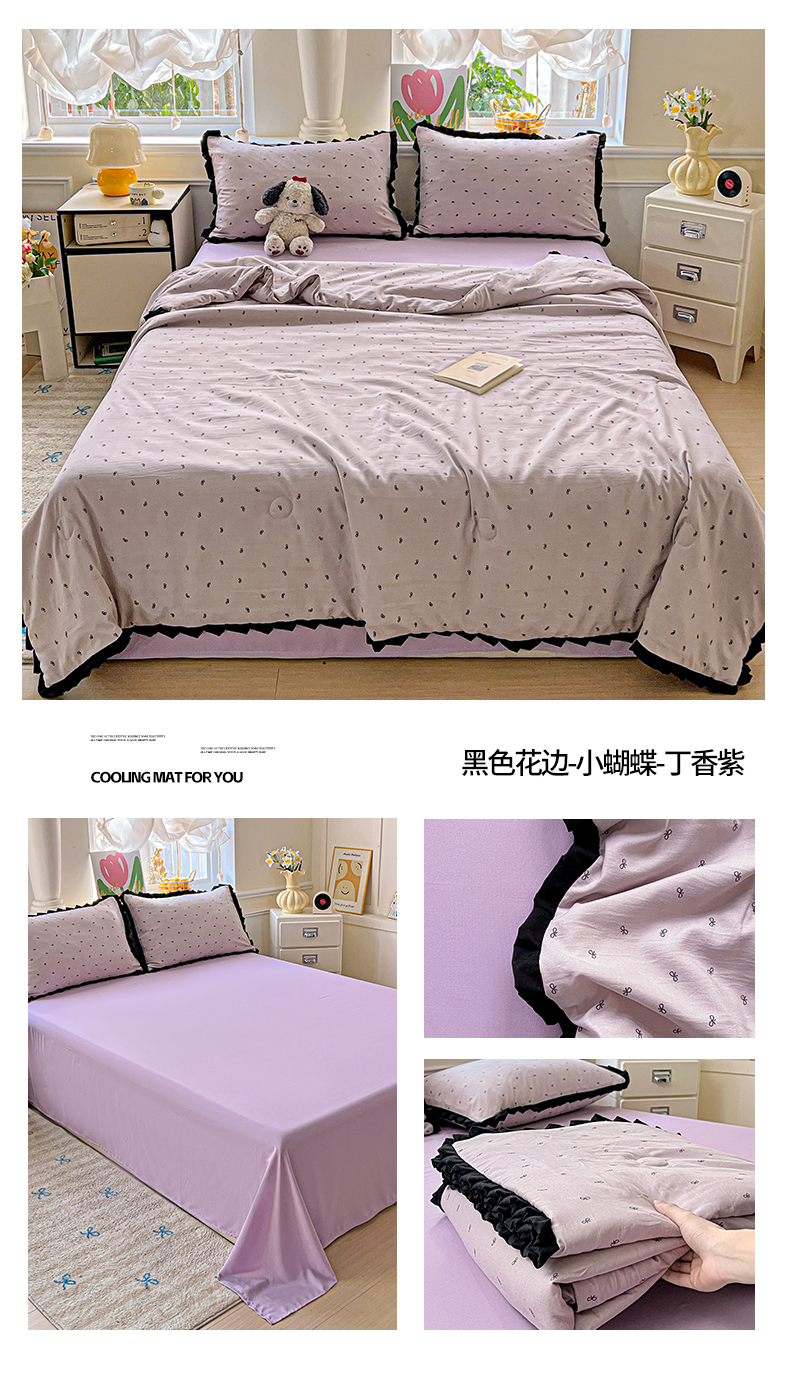 当前位置: 91家纺网 > 商品网购 > 床品套件 > 四件套 > 全棉普通四件套 > 妖妖家纺 2025新款有氧水洗糯糯公主风花边夏被四件套单夏被 小蝴蝶-丁香紫