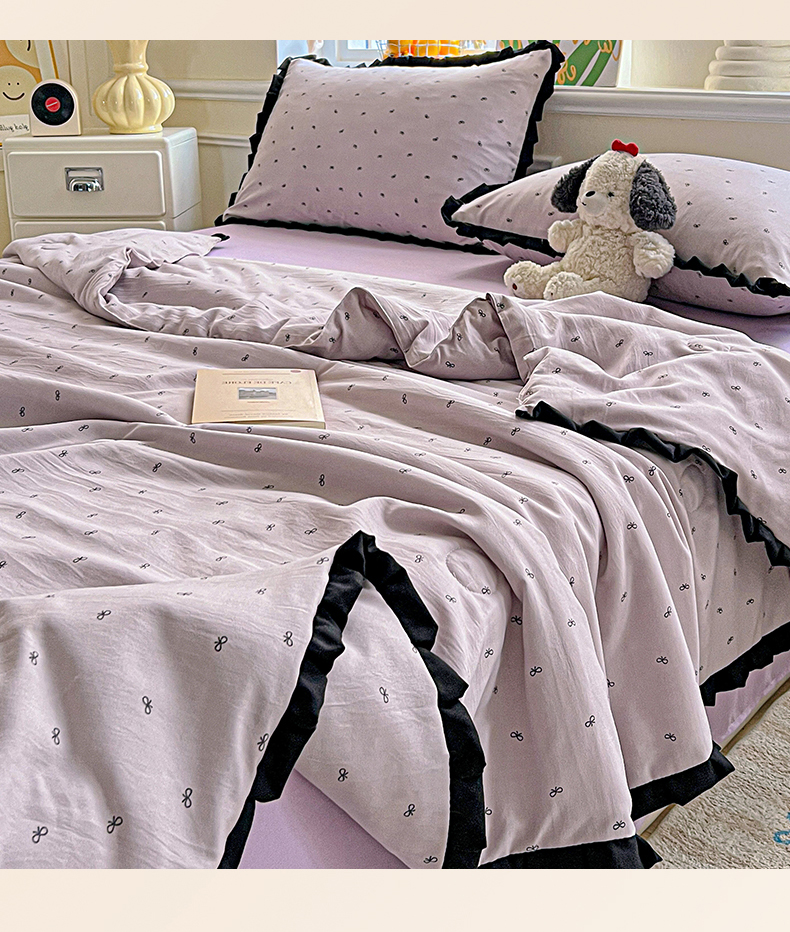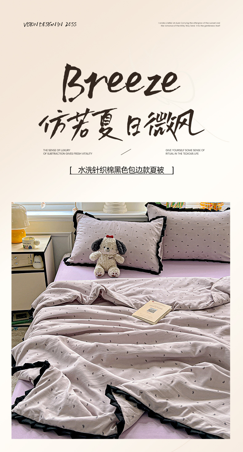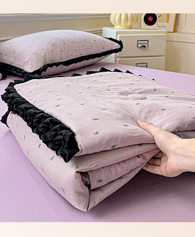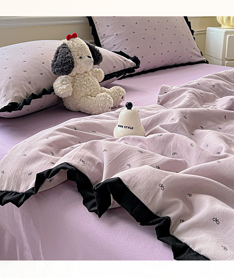 当前位置: 91家纺网 > 商品网购 > 床品套件 > 四件套 > 全棉普通四件套 > 妖妖家纺 2025新款有氧水洗糯糯公主风花边夏被四件套单夏被 小蝴蝶-丁香紫