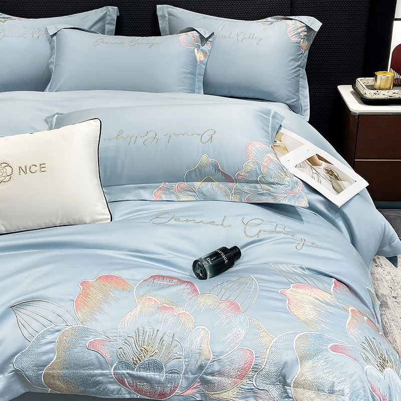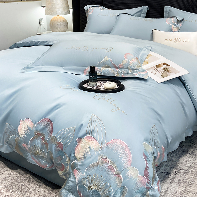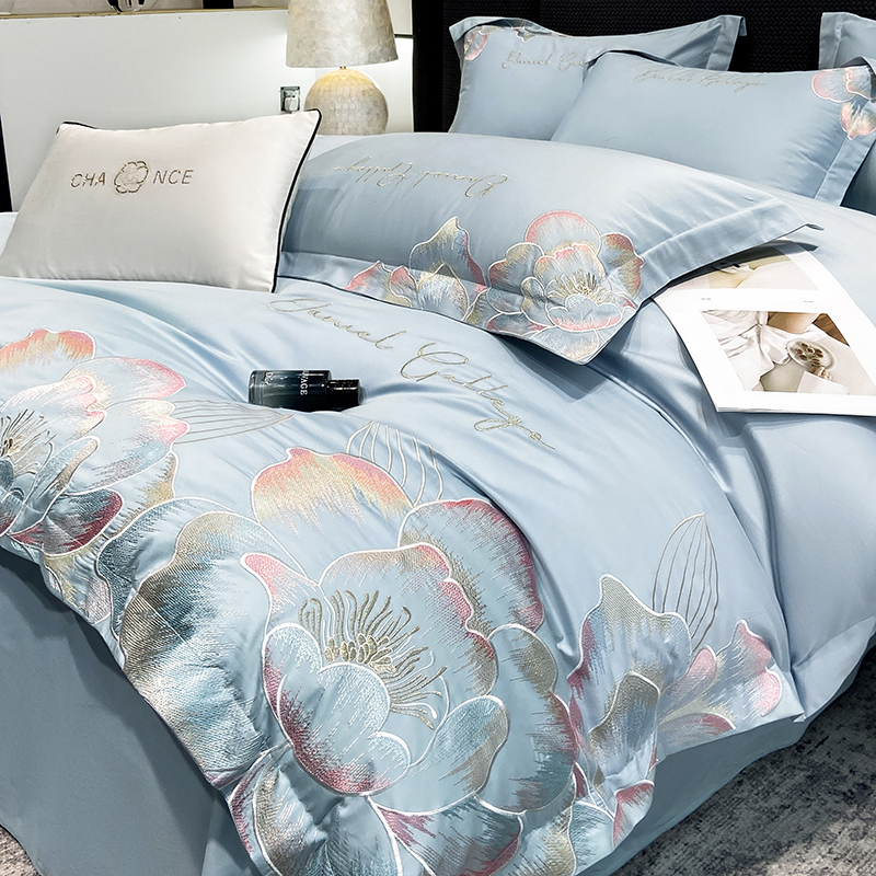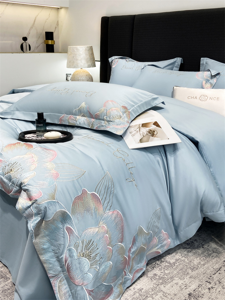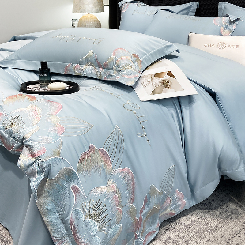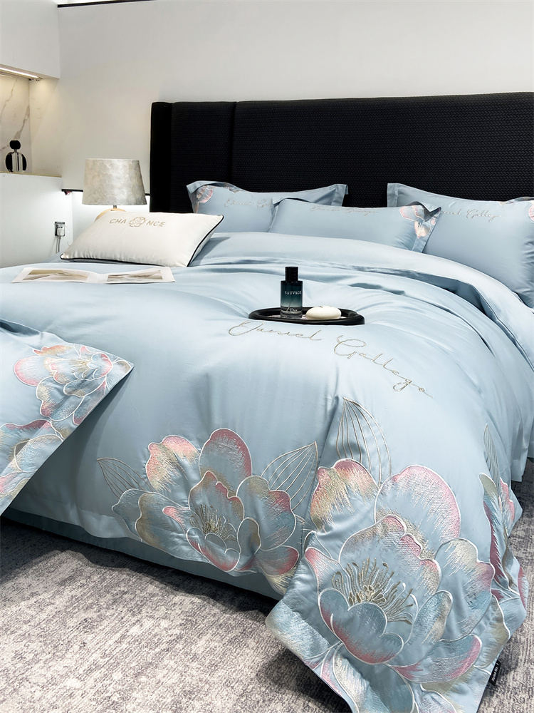当前位置: 91家纺网 > 商品网购 > 床品套件 > 四件套 > 全棉普通四件套 > 家居1号家纺 2025新款花韵长绒棉四件套 花韵-温馨蓝