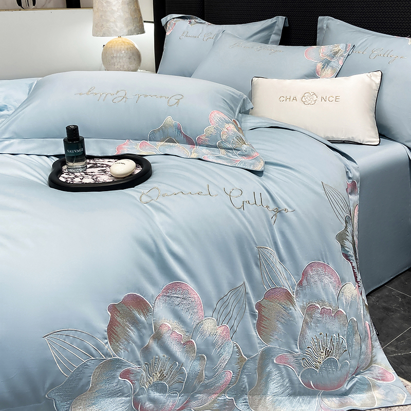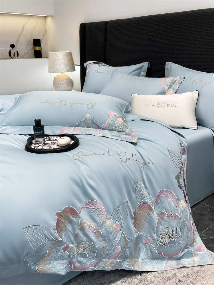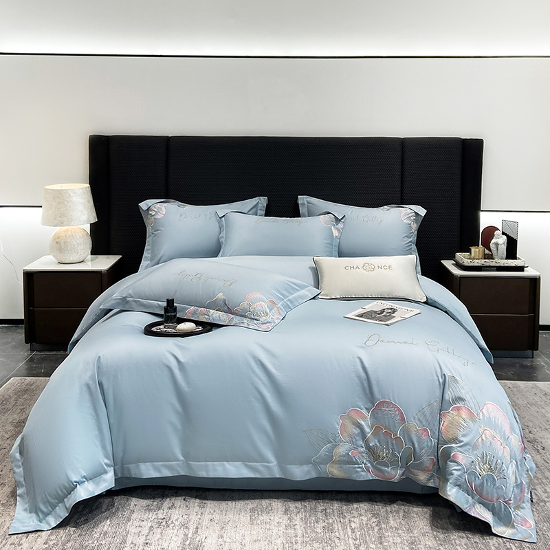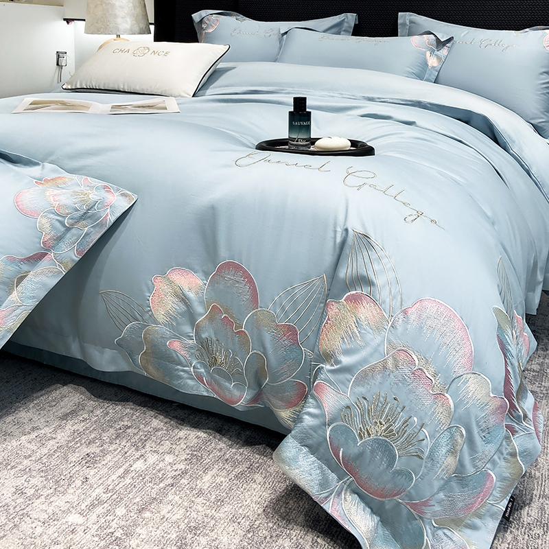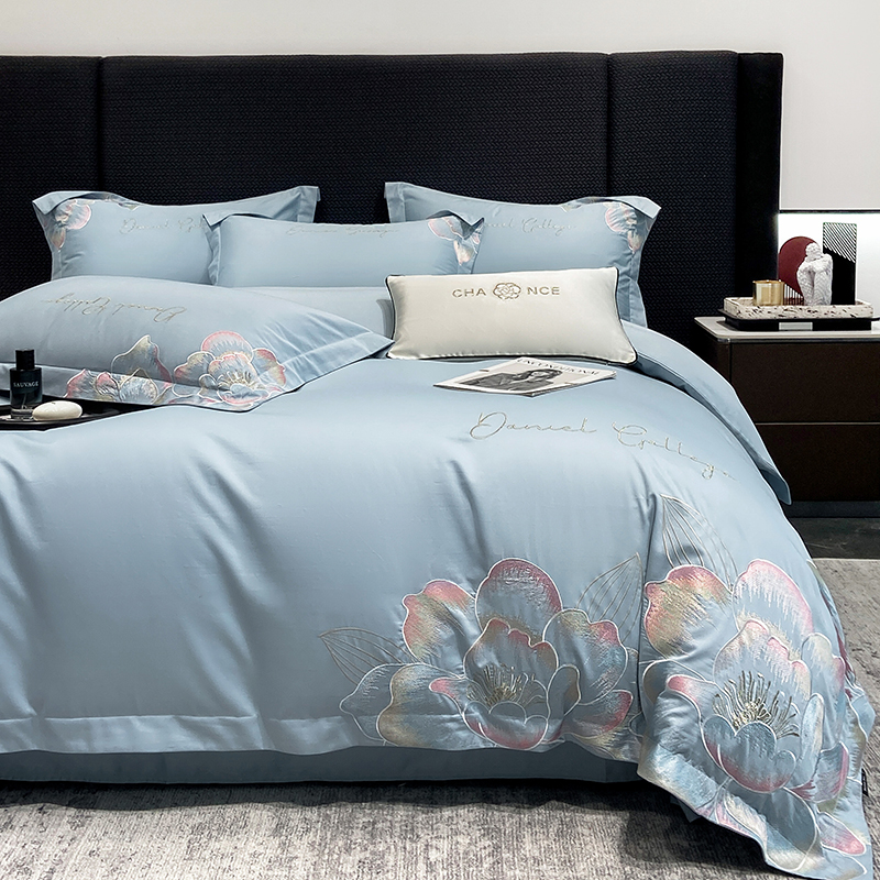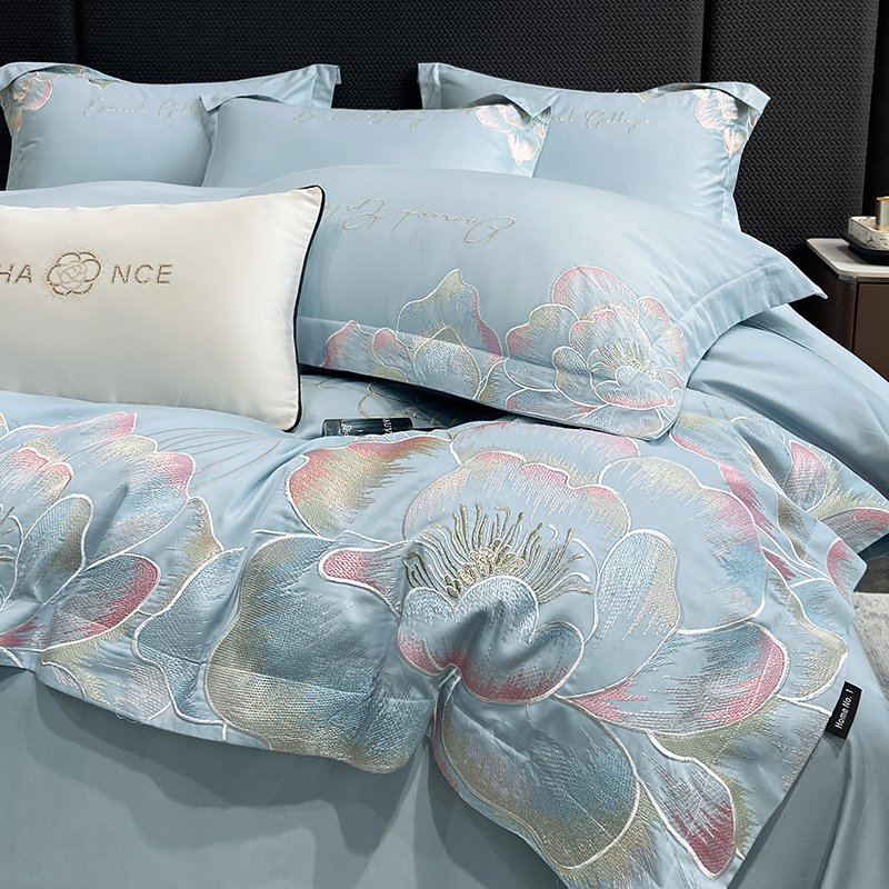 当前位置: 91家纺网 > 商品网购 > 床品套件 > 四件套 > 全棉普通四件套 > 家居1号家纺 2025新款花韵长绒棉四件套 花韵-温馨蓝