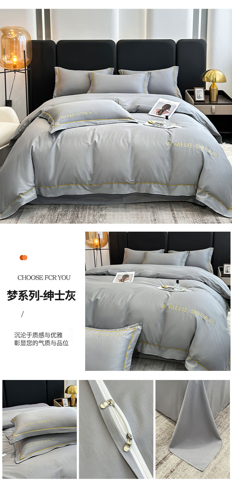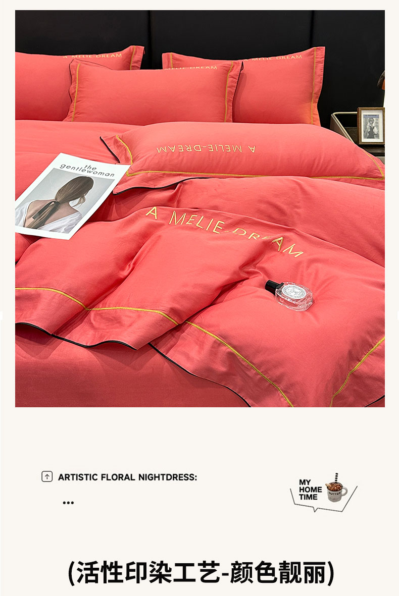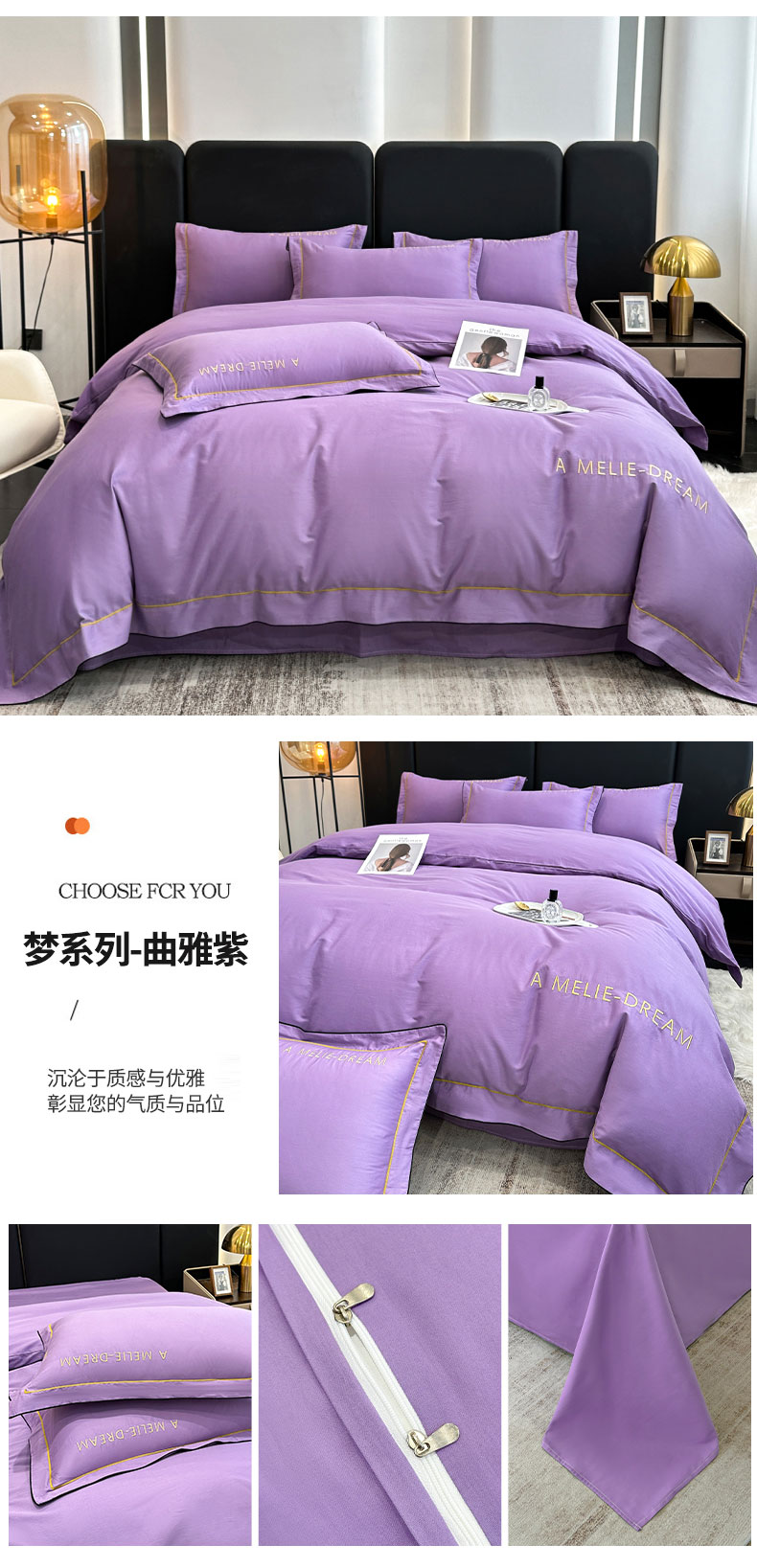 (总)宇彬家纺 2026新款A类13374全棉纯棉母婴级纯色四件套贡缎新疆长绒轻奢缩水足可定做,一字绣-宝石红,一字绣-宾利蓝,一字绣-典雅紫,一字绣-摩卡绿,一字绣-奶油粉,一字绣-绅士灰,一字绣-炫彩绿,一字绣-紫豆沙