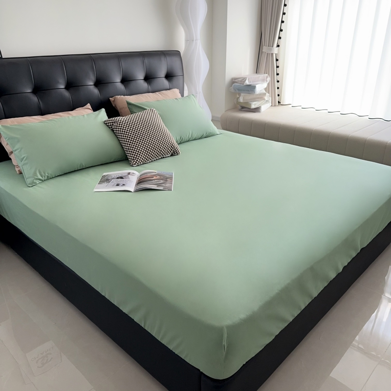 兜米家居 2025新款亚朵星球同款简约纯色全棉床笠床罩+枕套 松林绿