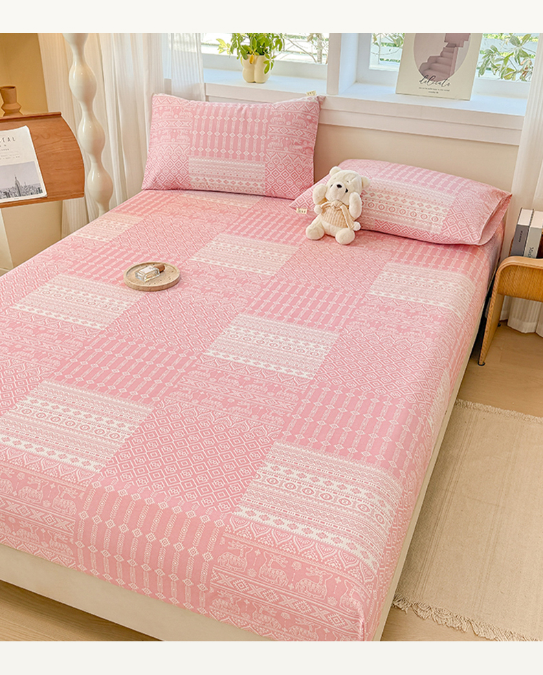 爱彼家纺 2025新款柔软舒适全棉纯棉老粗布华夫格凉席床笠 华夫格床笠-吉祥-粉