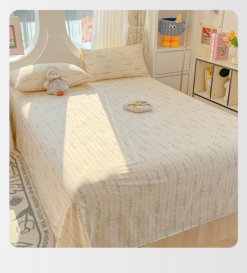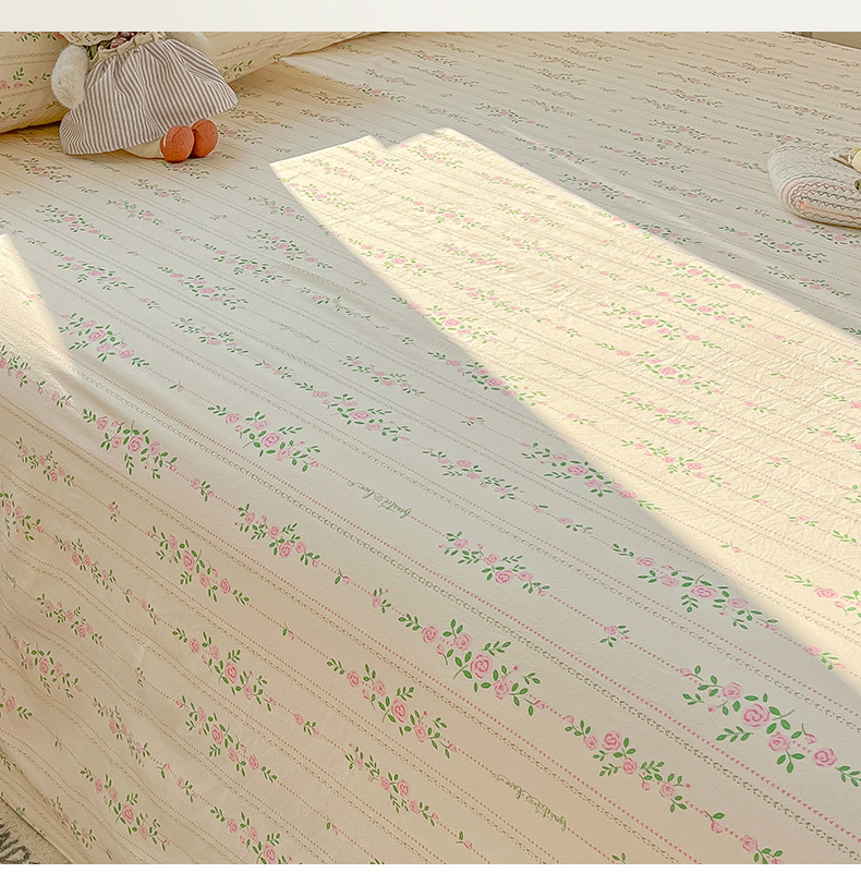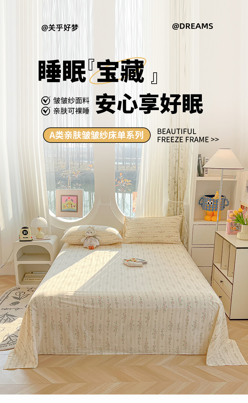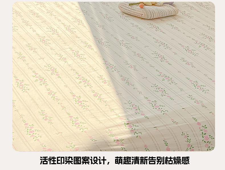 眠帛家居 2025新款A类水洗皱皱纱印花床单 花蔓