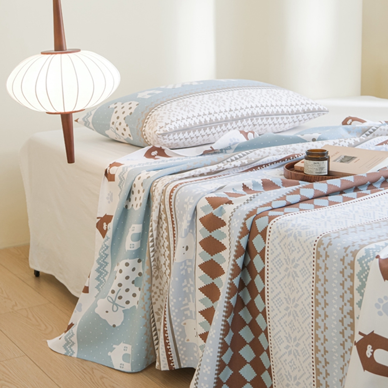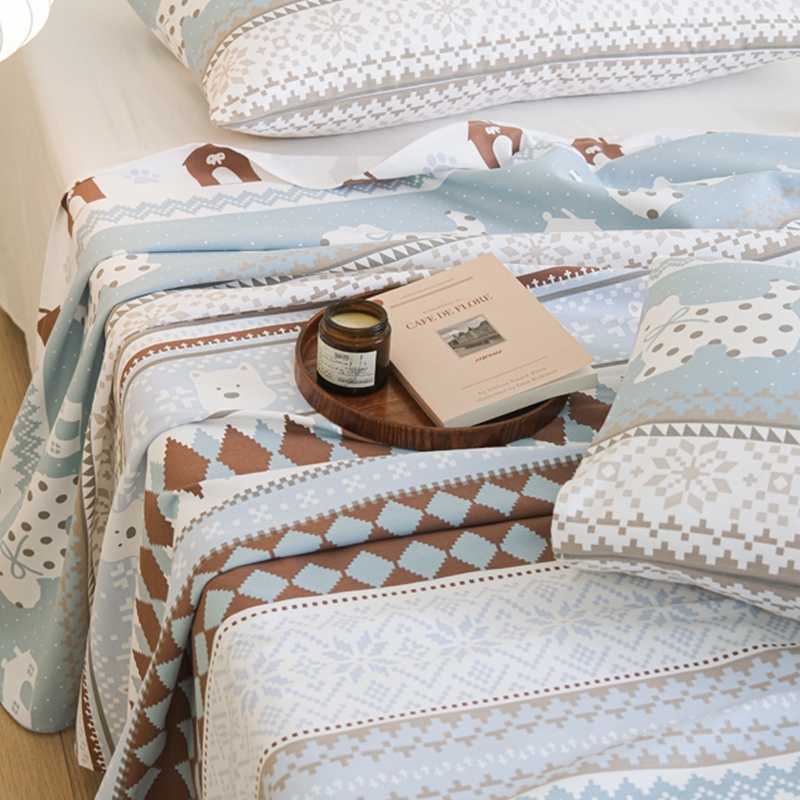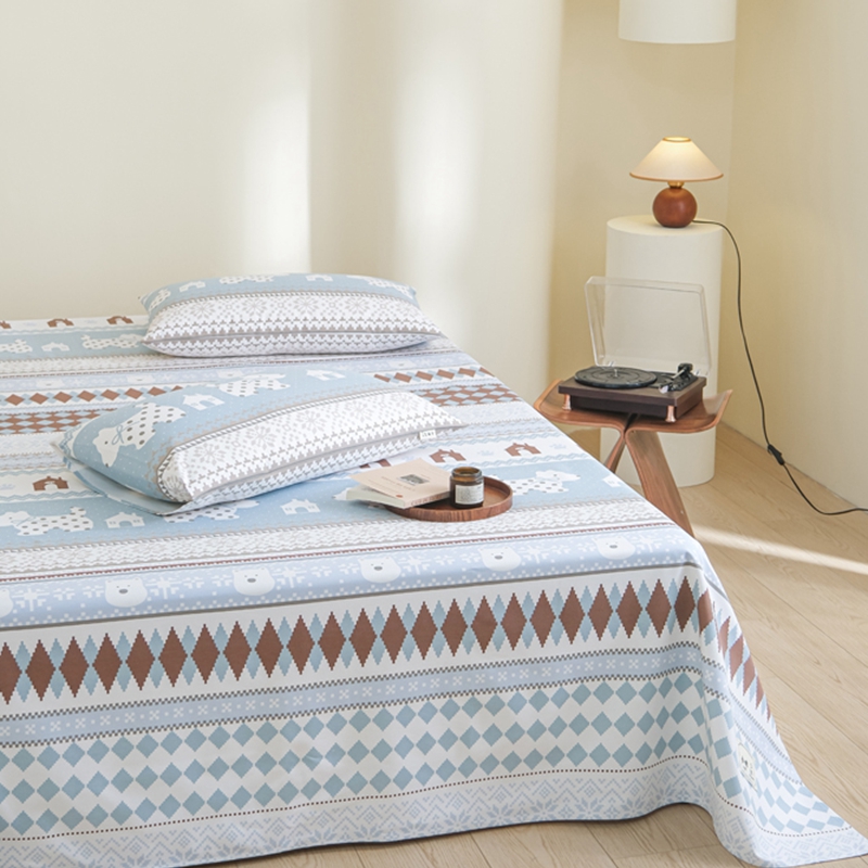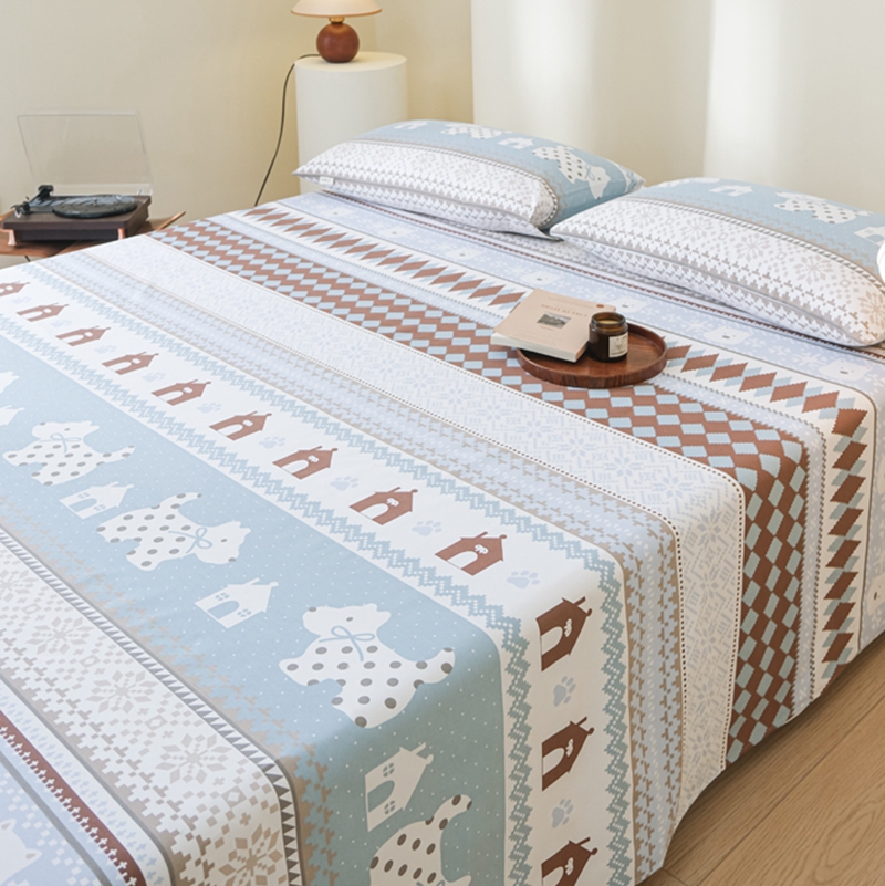 (总)萌宝老粗布2023纯棉印花老粗布床单凉席套件花边款三件套,摩登包包