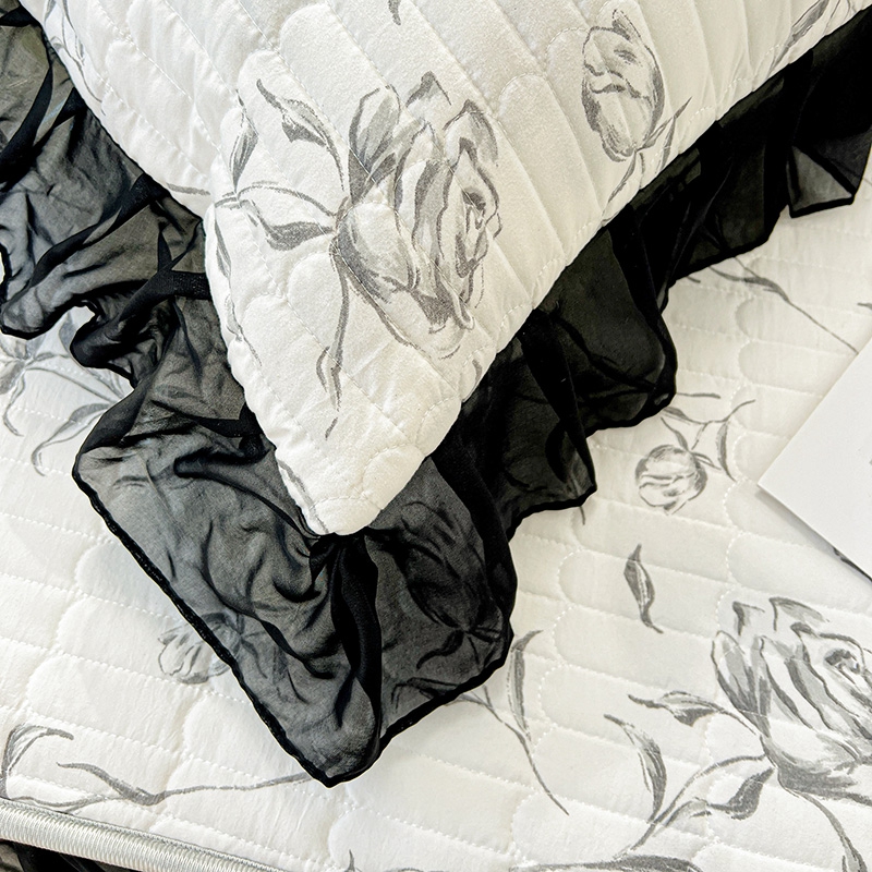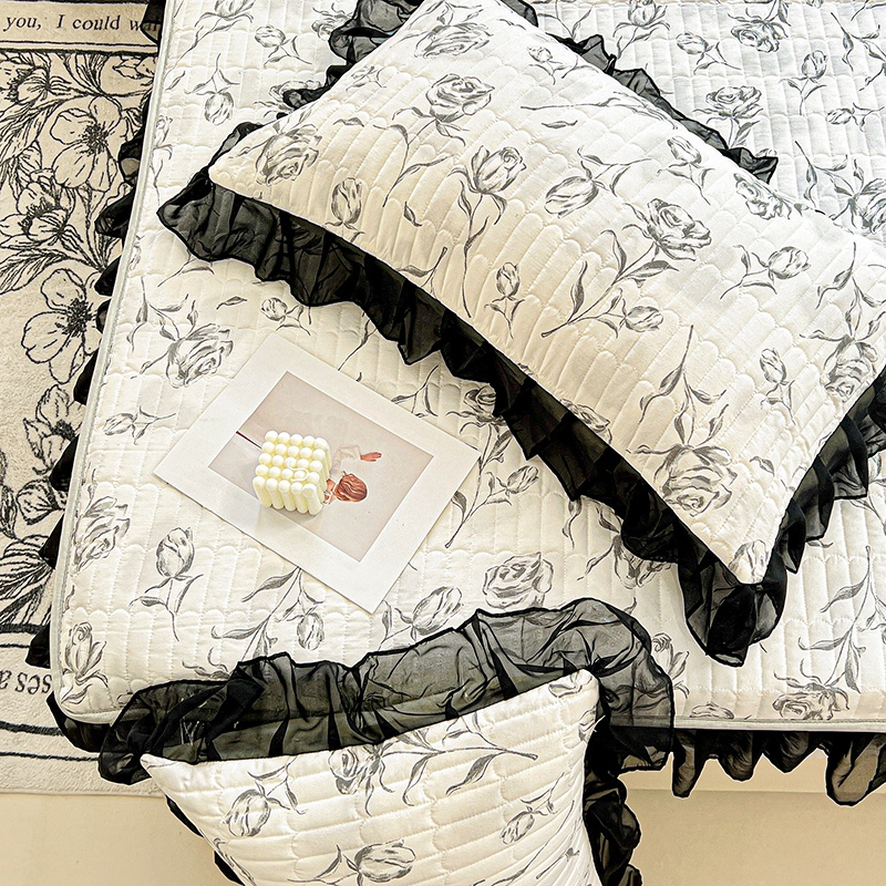 商品名称:艾橙家纺2025新款法式赫本风水洗棉印花雪纺花边单床笠 水墨玫瑰